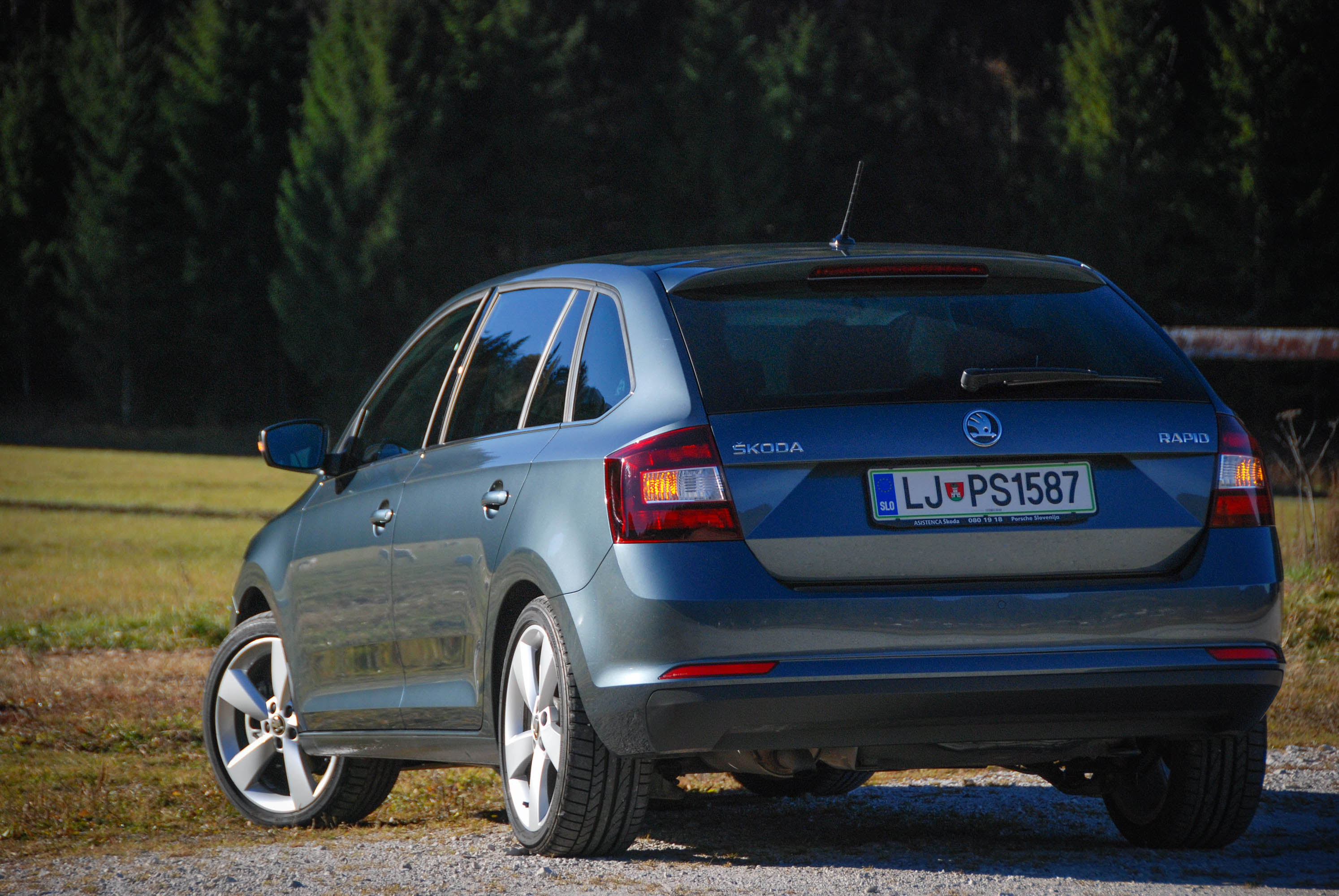 Spomnimo, da so Čehi hitro uvideli, da rapid poleg limuzinskega zadka rabi še eno klasično in v Evropi bolj uveljavljeno obliko. Prisekan kombilimuzinski zadek s še vedno velikim in uporabnim prtljažnikom.