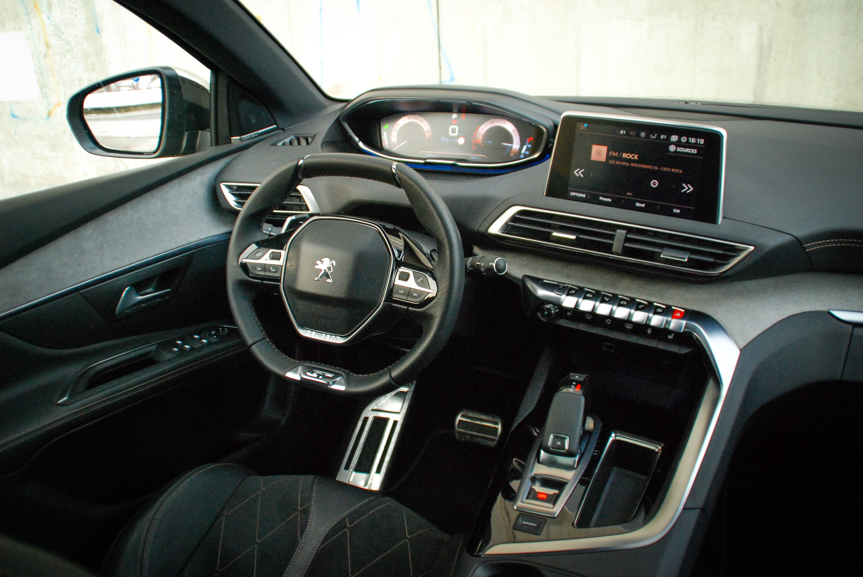Razvaja z razkošno opremljeno kabino. Je velik in praktičen družinski avto, ki z vsebino oziroma udobjem že sega proti visoki družbi. Kabina prepriča z zvočno zatesnjenostjo, materiali in stilom. Digitalno prilagodljiva armatura spominja na letalo. Voznikov položaj je zelo dober. Znotraj izstopajo prešiti, ogrevani sedeži iz brušenega usnja z masažno funkcijo, pa kakovostno ozvočenje Focal (dodatnih 880 evrov), prilagodljiva ambientalna osvetlitev in dvoobmočna klima z nadzorom kakovosti zraka ter odišavljanjem prostora. Oprema GT ustrezno dopolni še varnostne sisteme. Pohvalo si zaslužijo LED luči, le samodejni preklop dolžine snopa bi lahko bil hitrejši.