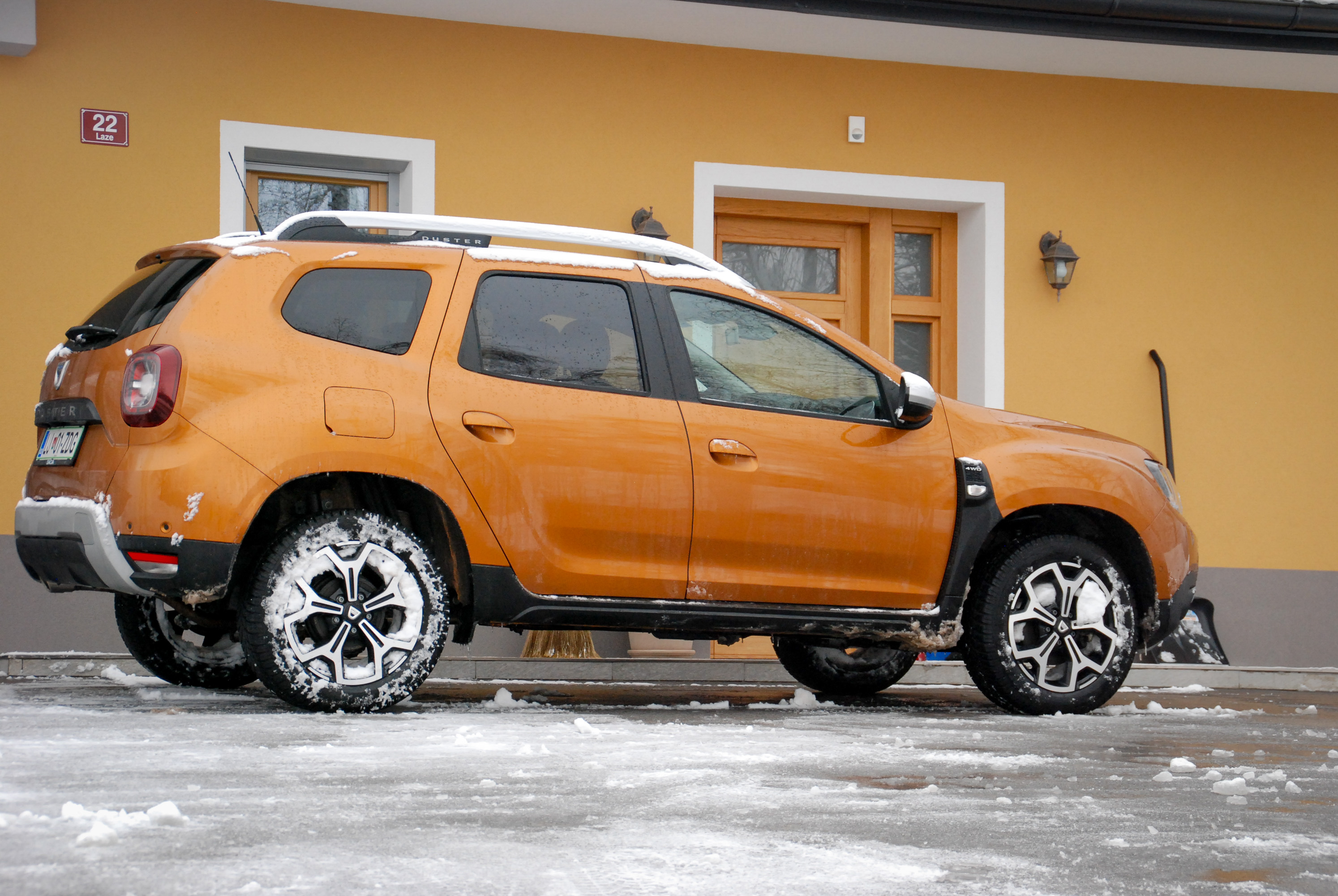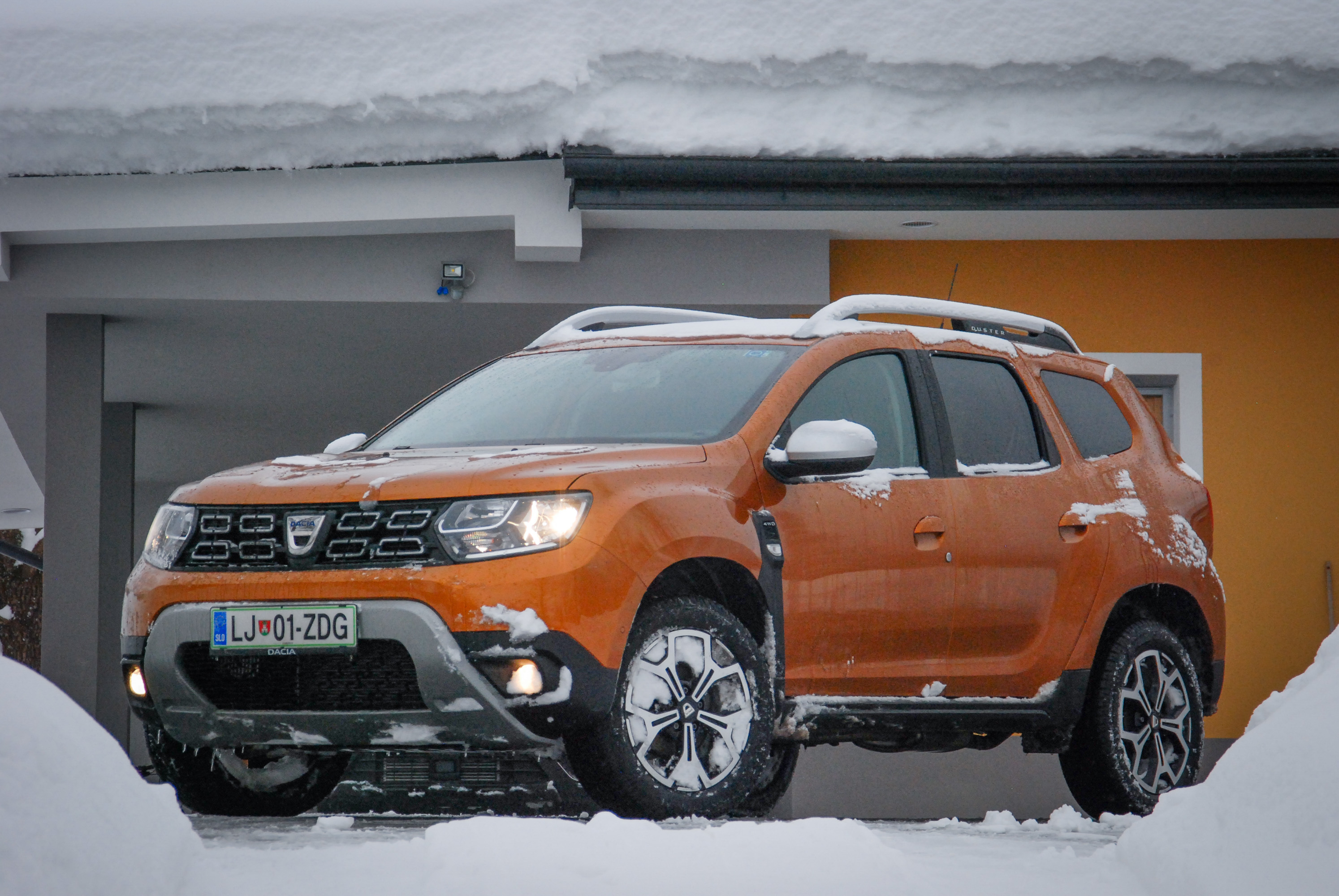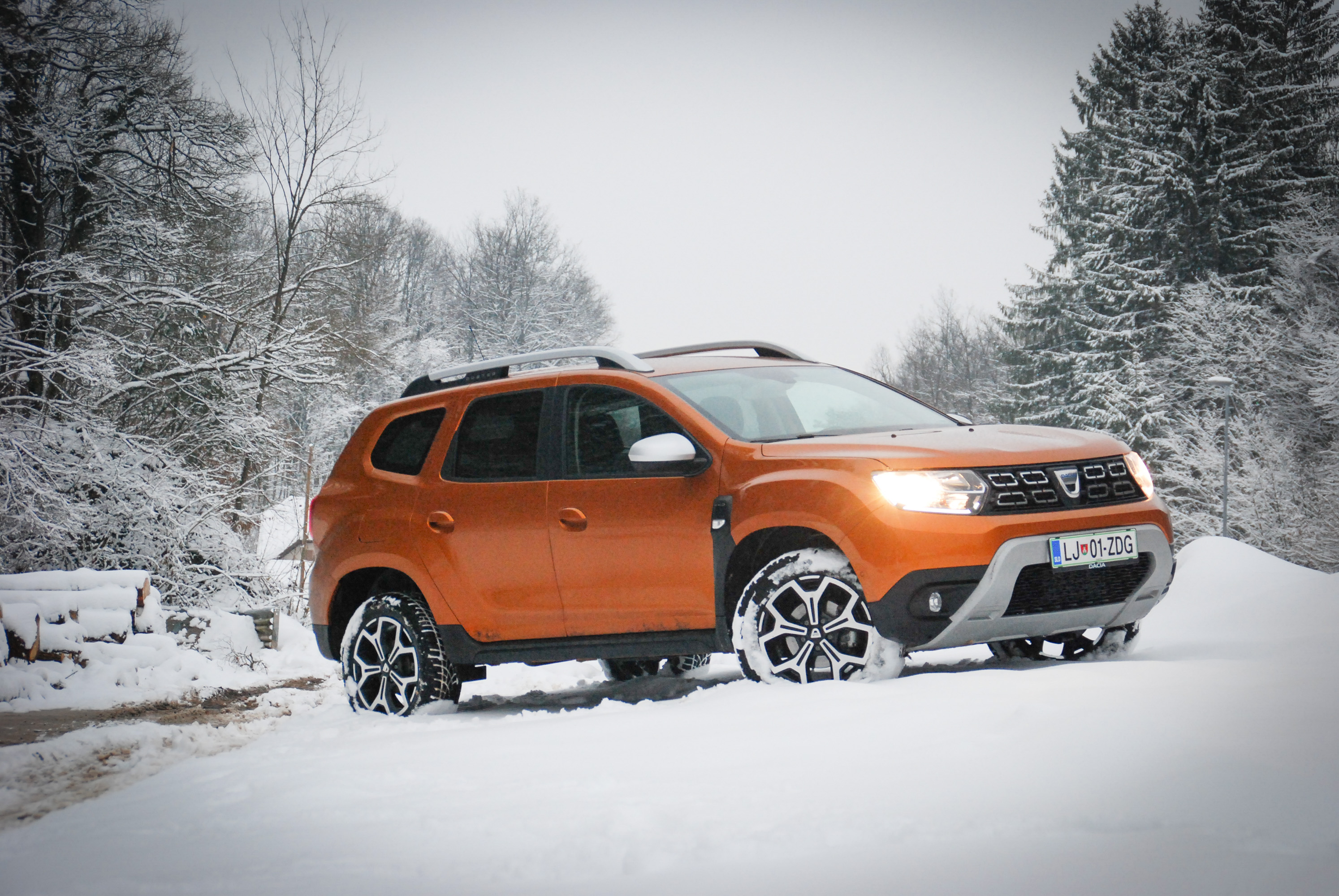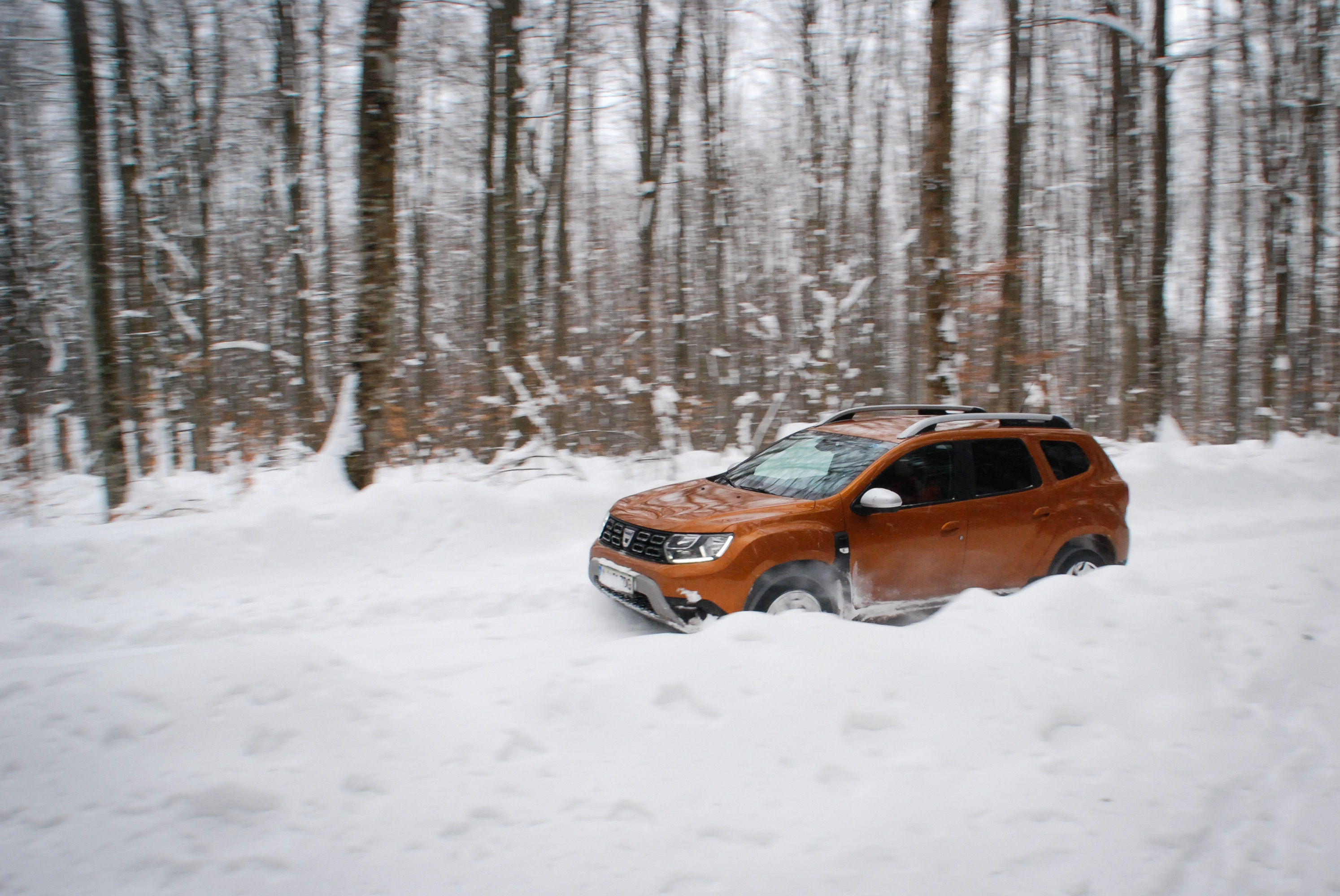 Z 21-centimetrsko oddaljenostjo od tal in zanesljivim štirikolesnim pogonom se zna duster zapeljati na vozno podlago z malo oprijema. Z njim smo brez težav rili po nespluženi gozdni cesti, na kateri je bilo 35 cm svežega snega. Za najtežje razmere kot so blato, sneg in pesek pa je mogoče vklopiti še sredinsko zaporo, ki navor med prednja in zadnja kolesa razdeli v razmerju 50:50. Ob vklopljeni funkcij lock in skrajšani 1. in 2. prestavi, ki malce nadomeščata reduktor, se duster še vedno zelo pogumno loti brezpotja. Pri tem je vozniku med koreninami in kamenjem precej v pomoč 400 evrov vreden sistem kamer, ki omogoča pogled na vse štiri strani vozila.