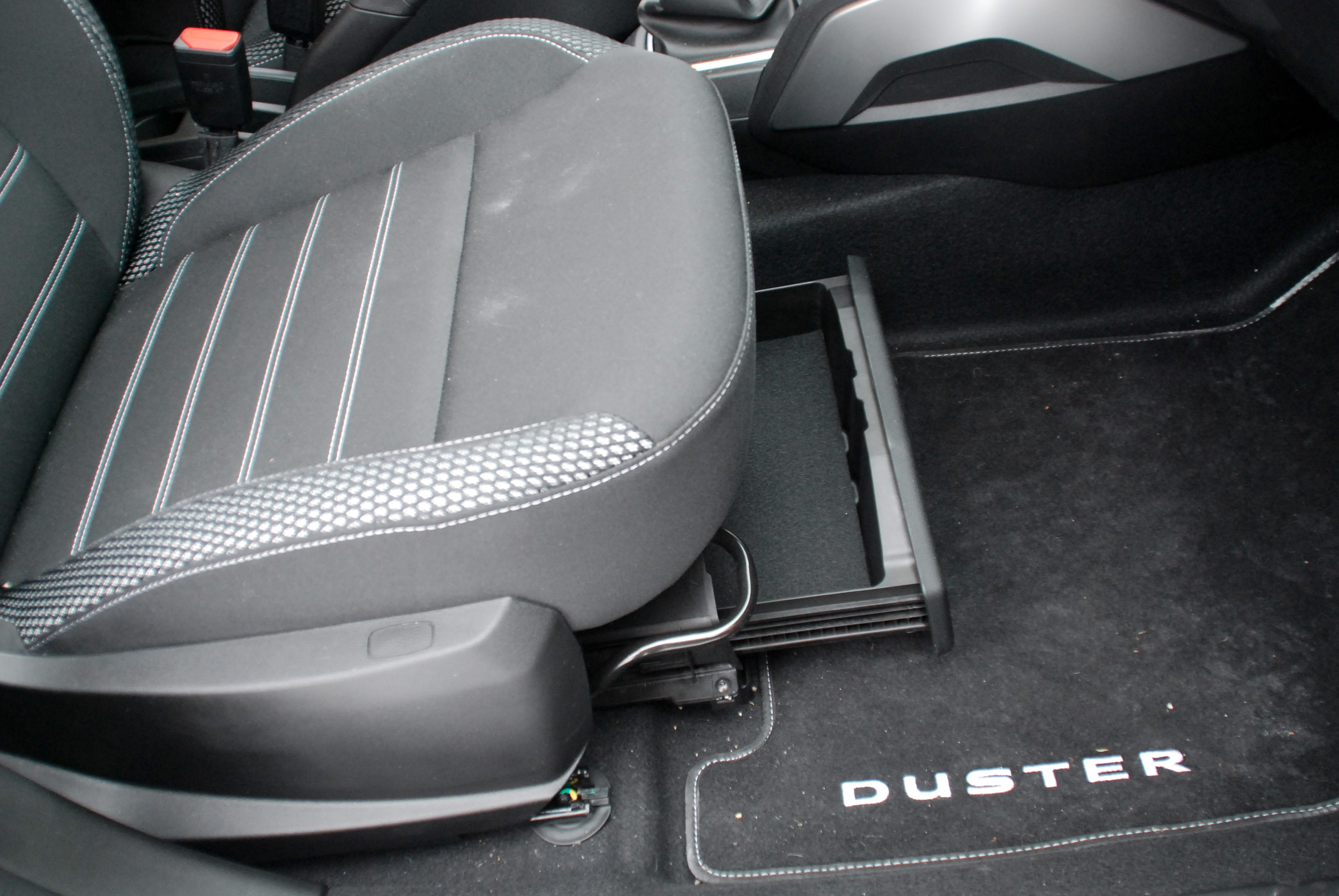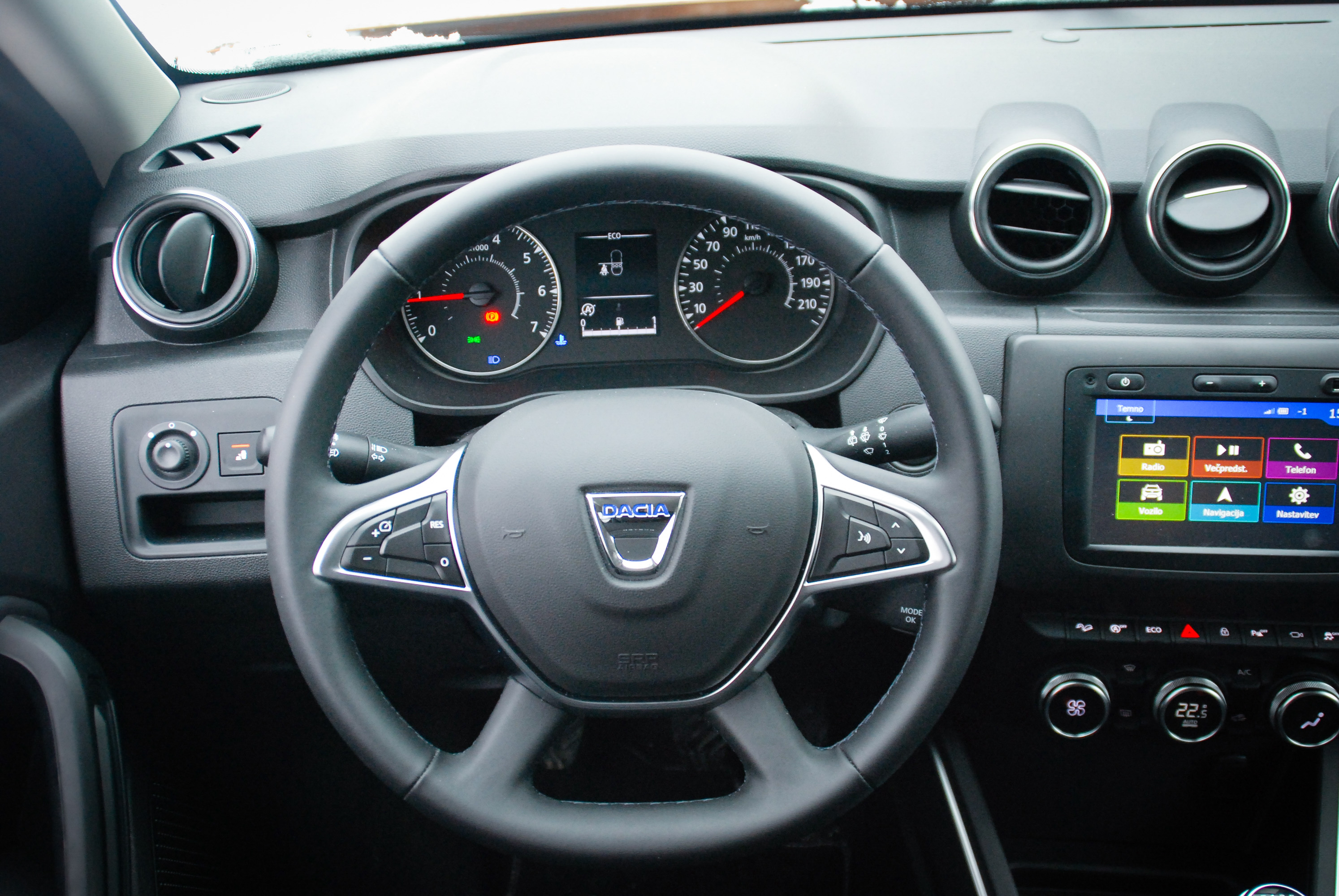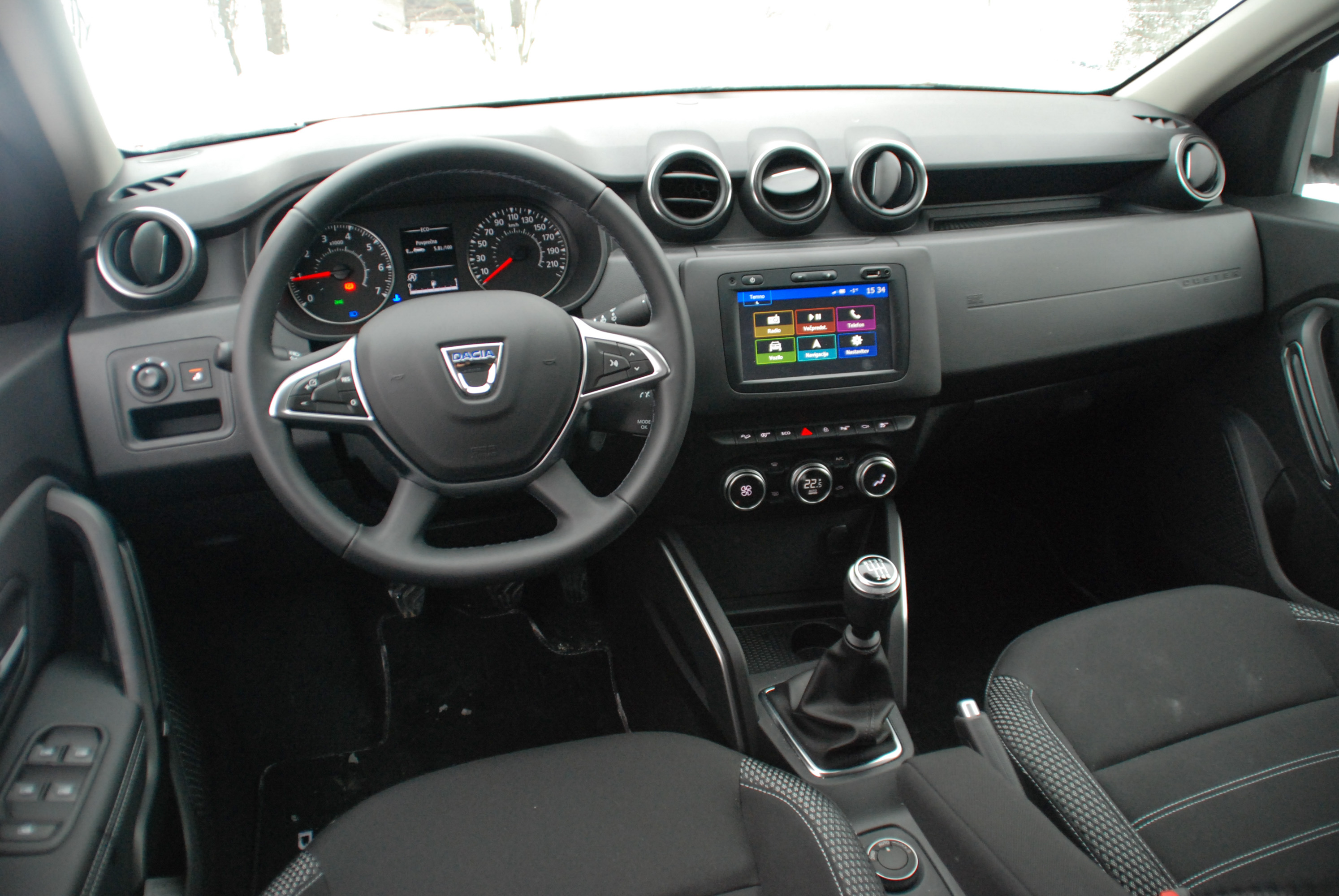 Precej boljši vtis kot predhodnik duster pušča tudi v kabini. Plastika je še vedno trda, a razmeroma odporna na zob časa in obrabo. Bolj razveseli ergonomski napredek, saj razgibana armaturna plošča s precej odlagalnimi površinami ne daje več vtisa Renaultove reciklaže. Napredek je očiten pri kakovosti izdelave. Merilniki so pregledni, grafika sodobnejša. Zaslon na dotik je hitro odziven, meniji pa uporabniško celo bolj prijazni kot pri Renaultovem R-linku. Vstopanje je enostavno, kabina je prostornejša, ker je širša. Spredaj in zadaj se sedi dobro.