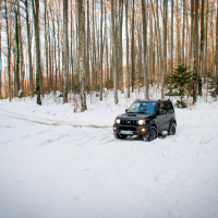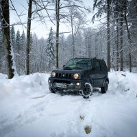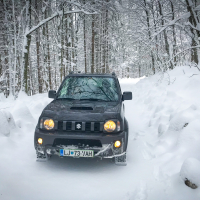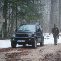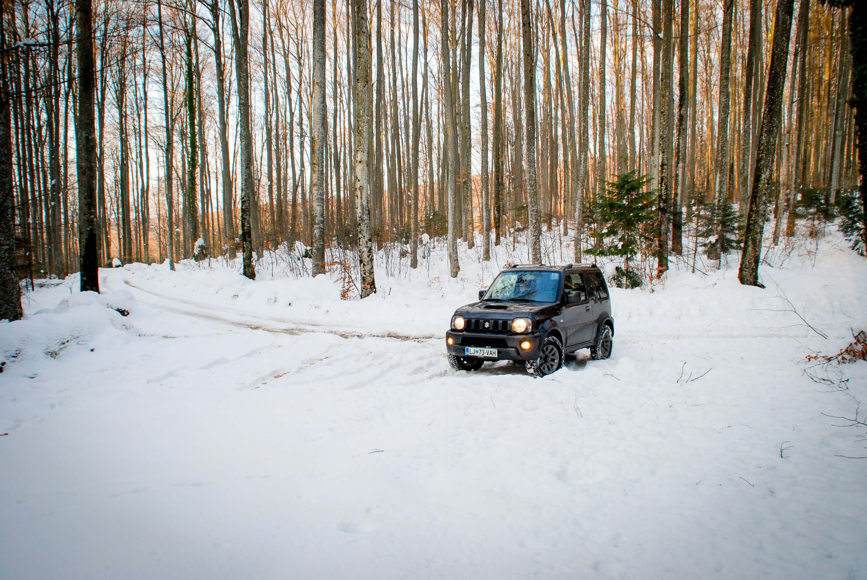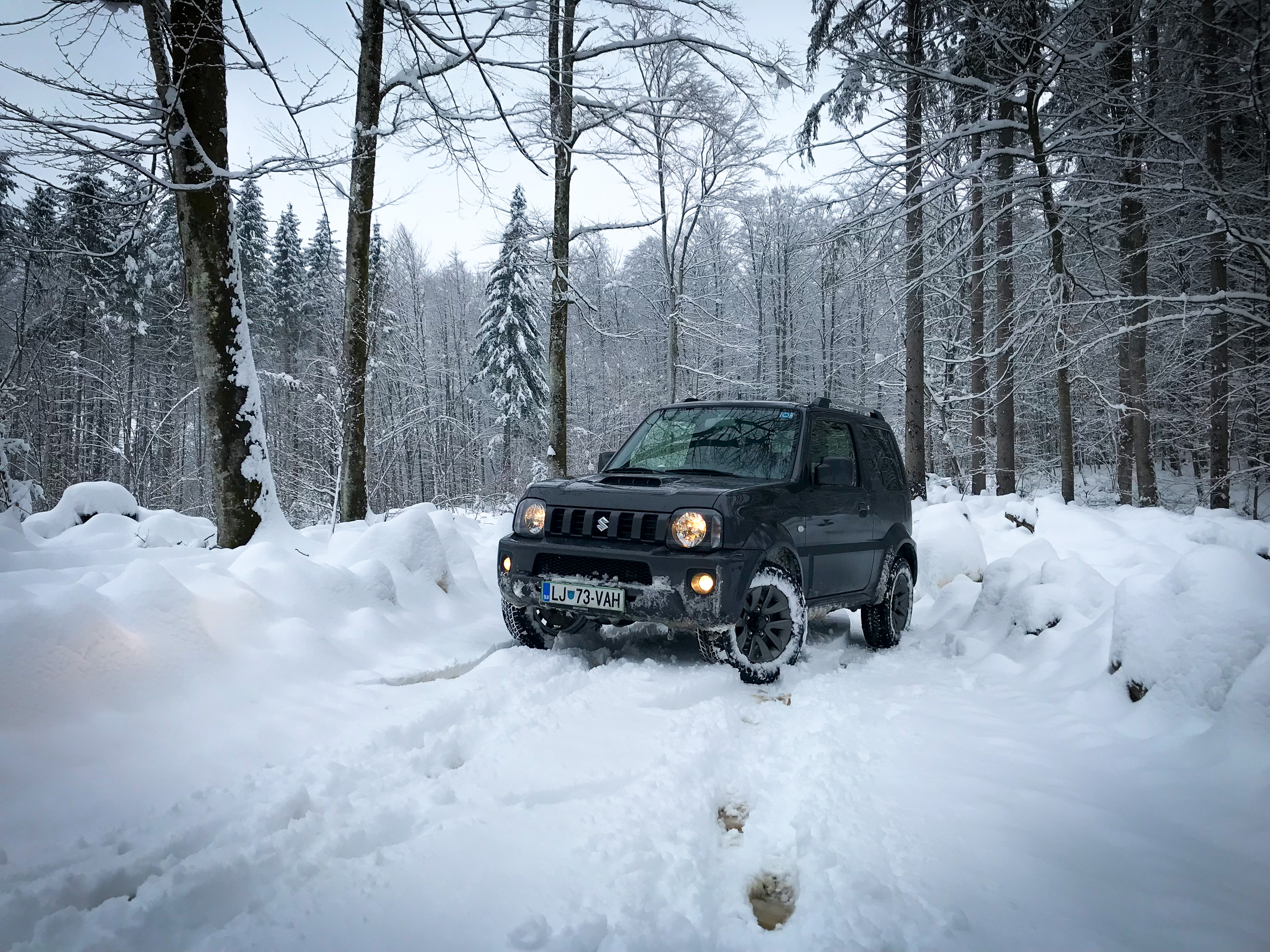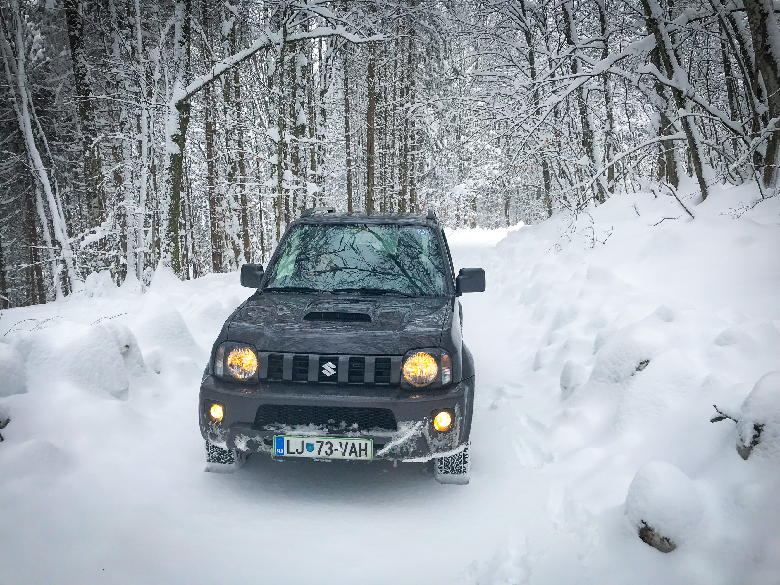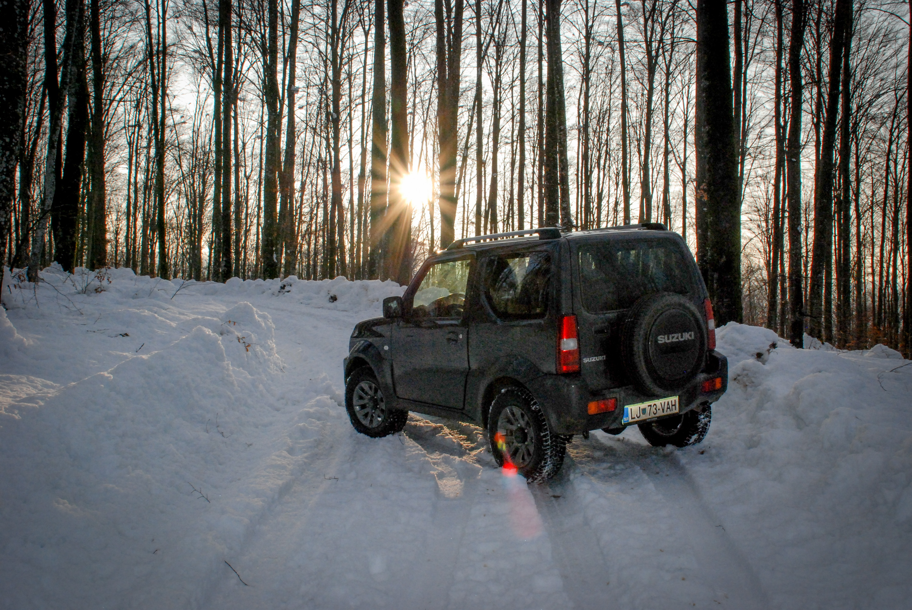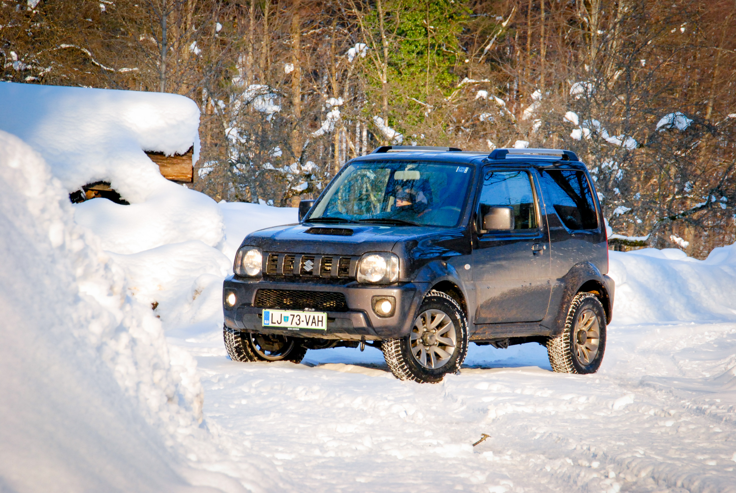 Suzukijev kompaktni terenec jimny je eden zadnjih povsem analognih avtomobilov, ki se na slabih cestah, blatnih kolovozih in na zasneženih gozdnih cestah počuti precej bolje kot na asfaltu. Od sodobnih vozniških pomagal ima le sistem nadzora stabilnosti ESC in ABS zavore. Vse ostalo je stvar prvinske mehanike. Avto je postal ikona lovcev in gozdarjev predvsem zaradi svoje zanesljivosti in kratke, ozke, prisekane karoserije ter zanesljivega štirikolesnega pogona z reduktorjem za najtežje plezalske naloge. 3,5 metra dolg in le 1,6 metra širok avto se prerine zelo daleč in obrne na vsaki gozdni cesti. Tehta le dobro tono in brez previsov zmore zavidljivih 34 stopinj vstopnega kota in 46 stopinj izstopnega kota. 1,3-litrski bencinski motor je dovolj poskočen, le navora ni v izobilju, a sape mu tudi v strmini ne zmanjka, sploh, ker je na voljo reduktorska prestava. Zna pa biti precej žejen: od 7,5 do 8,1 l na 100 km se je gibala poraba. V lovski druščini največkrat ostane brez zadnje klopi, saj 113 litrov za zadnjimi sedeži prtljažnika ni dovolj za vso opremo. Od tal je oddaljen 19 centimetrov, kar velja upoštevati pri globokih kolesnicah ali velikih količinah snega, ki je letos izdatno zasul gozdne ceste.
