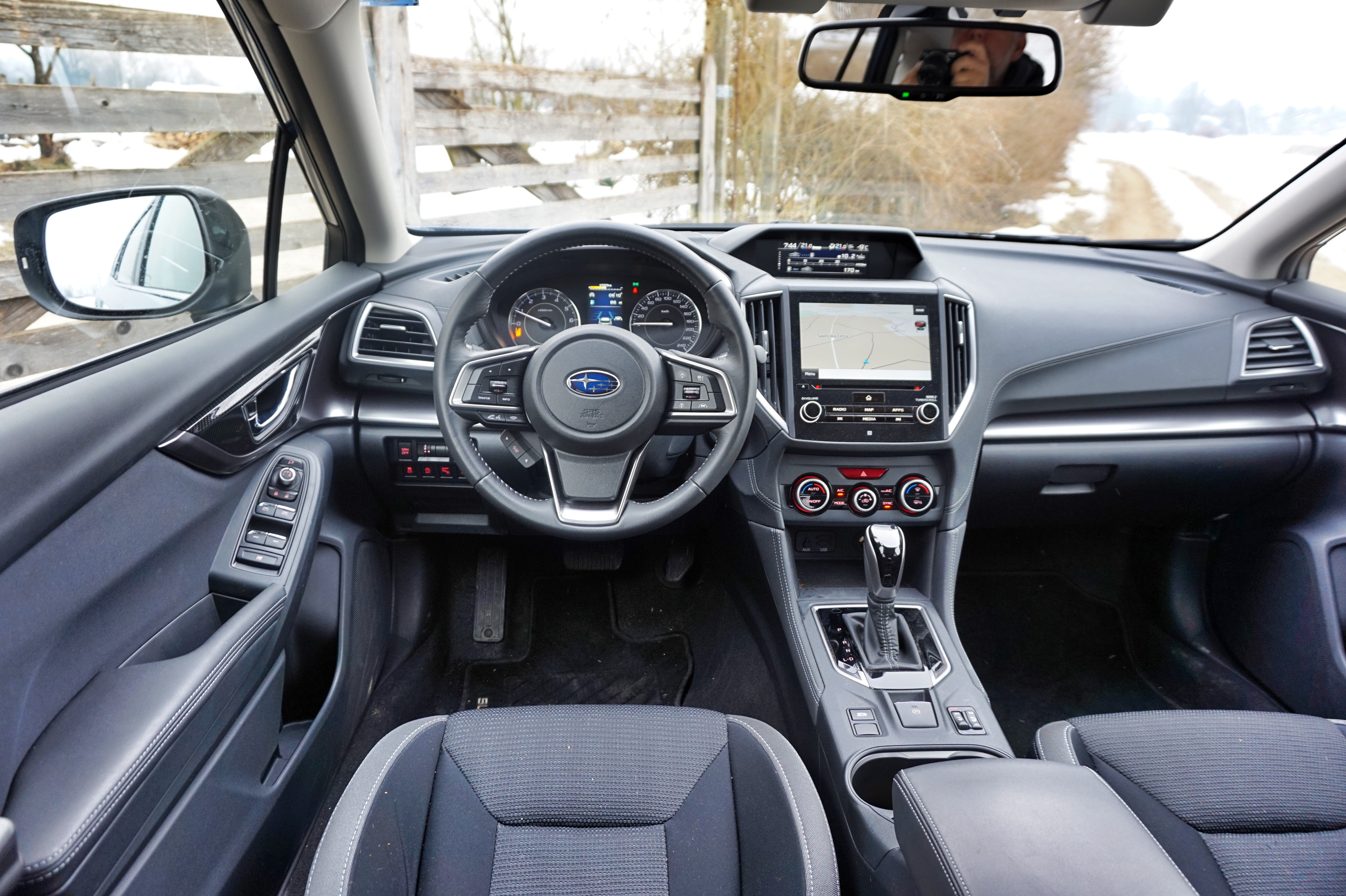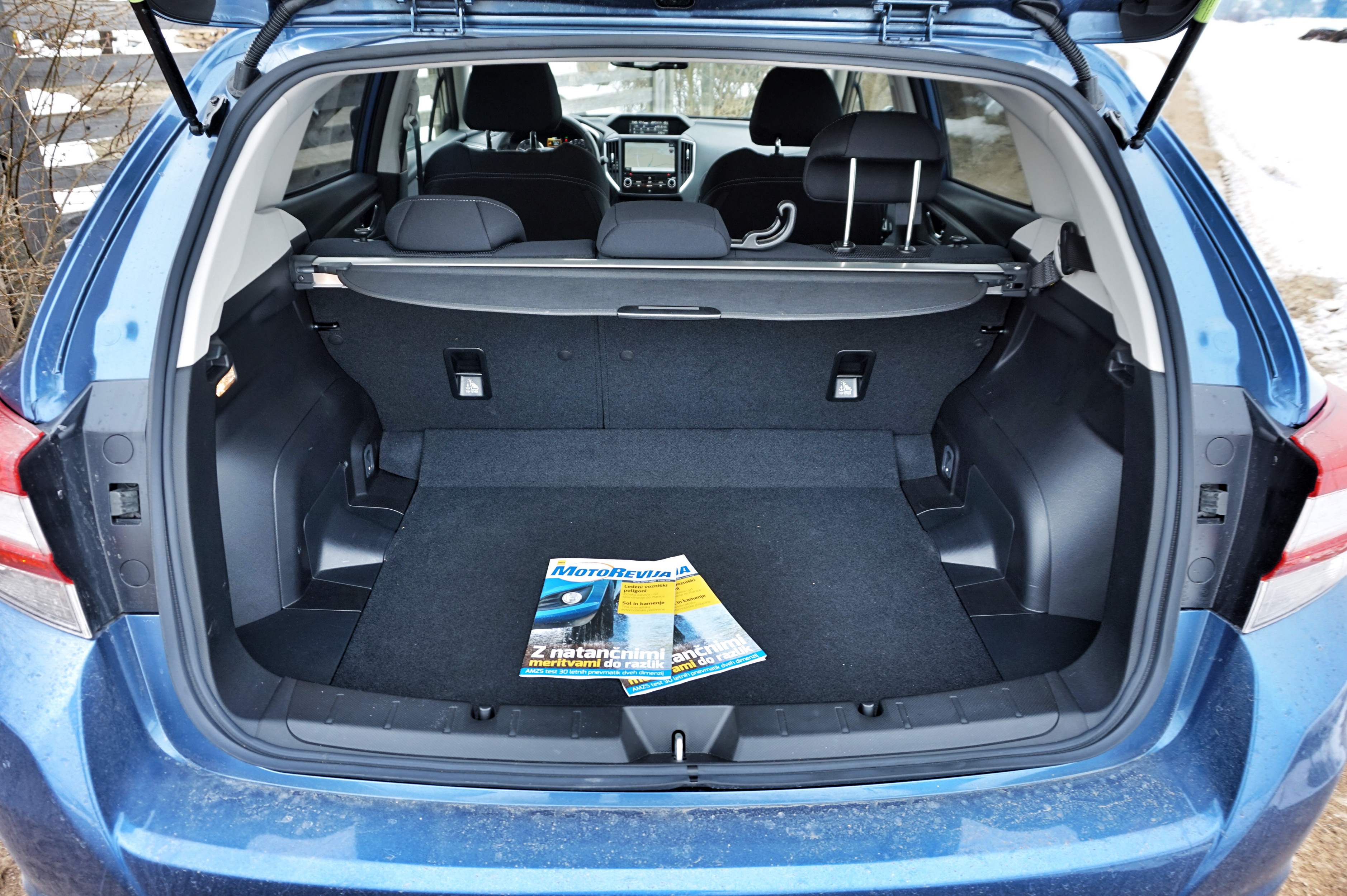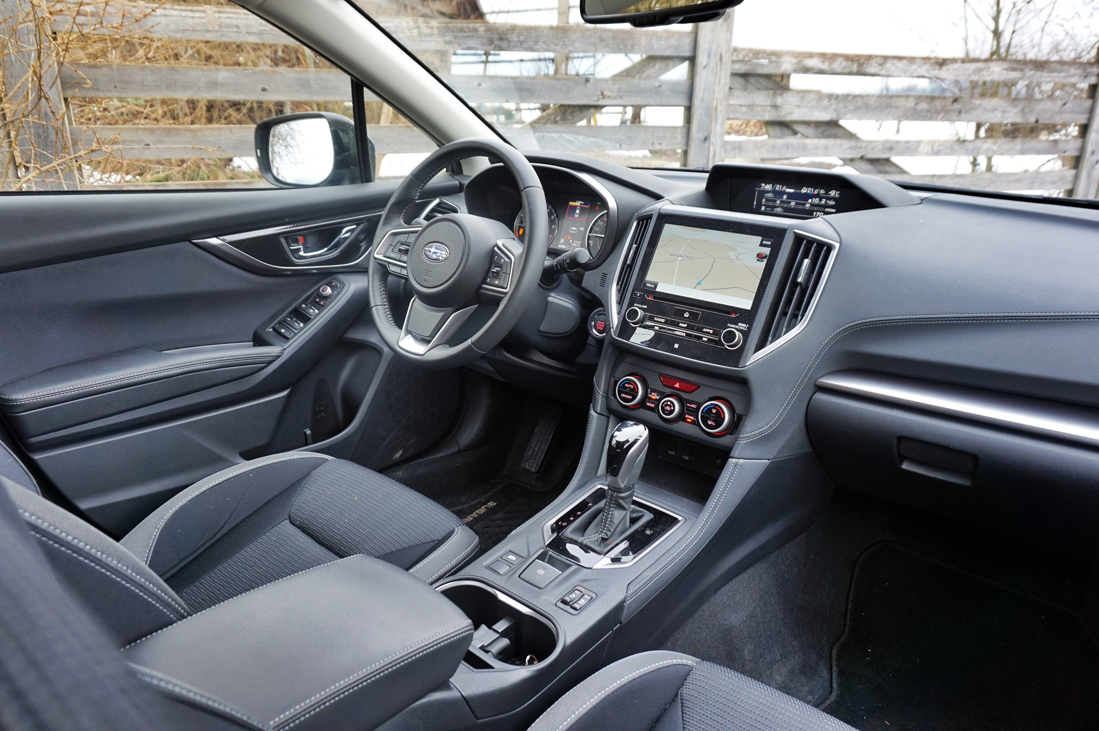 Impreza izstopa že s svojo obliko. Ta se v novi generaciji impreze ni prav veliko spremenila, je pa avto dobil nekaj poudarjenih karoserijskih linij. S 4,46 metra dolžine je impreza daljša kot večina tekmecev, a potniška kabina ni prostornejša, prav tako pa ne 385-litrski prtljažni prostor, ki je povečljiv s prevračanjem naslona zadnje klopi. Voznik brez težav najde dober položaj za volanom, njegovo delovno okolje pa je nekoliko nenavadno, saj je ob osrednjem zaslonu na sredini armaturne plošče nad njim še en zaslon za prikaz podatkov o vožnji, a je kar nekaj teh podatkov na voljo tudi na instrumentni plošči za volanom. Voznik se mora privaditi na razporeditev stikal in gumbov na volanu.