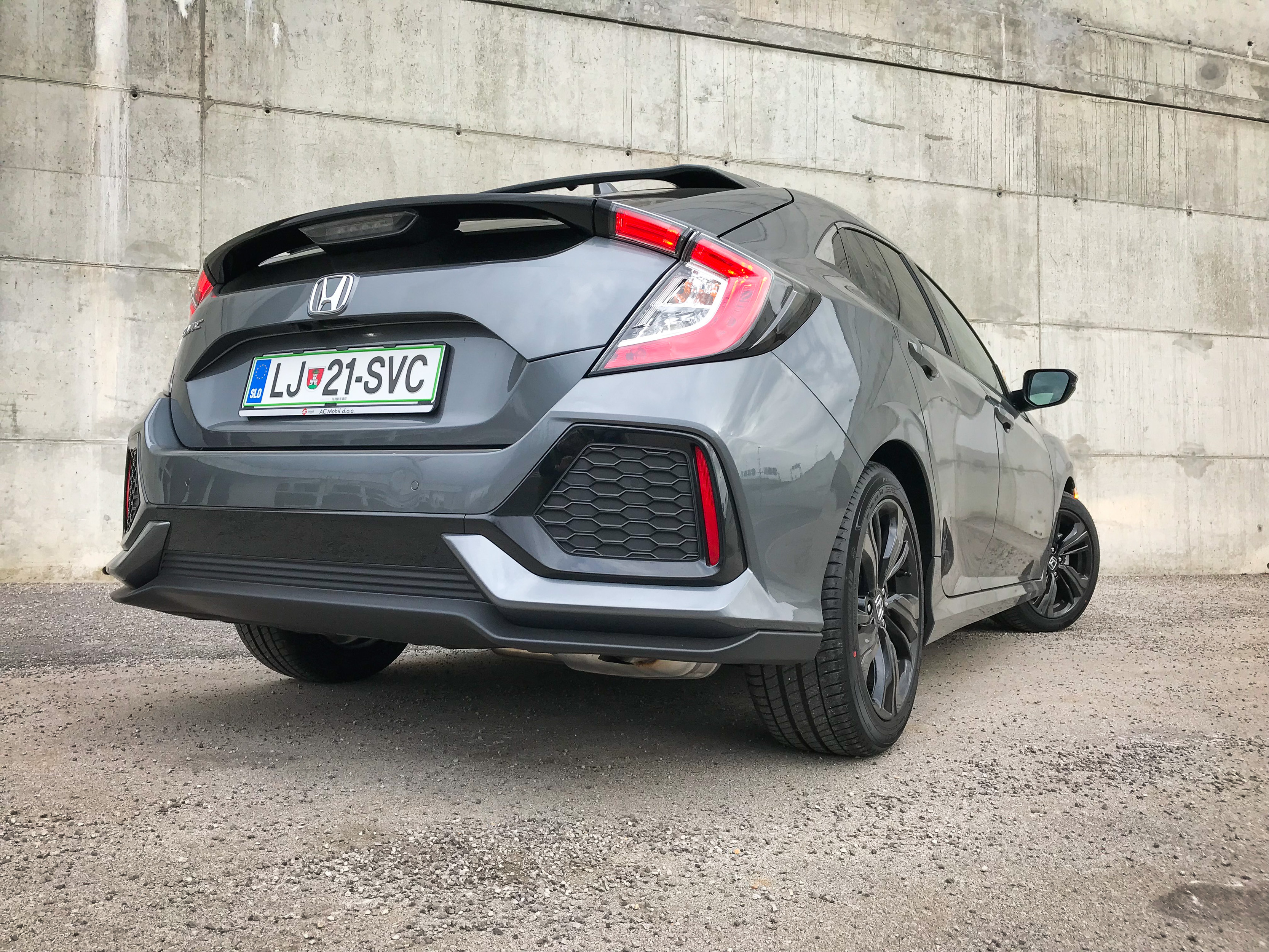 Rek “manj je več”, pa v celoti ne drži za manjšega od obeh bencinskih motorjev s prisilnim polnjenjem in tehnologijo prilagodljivega krmiljeni ventilov VTEC. Litrski trivaljnik je z majhno, a učinkovito turbino sicer zelo iskriv in odziven. Brez oklevanja se v manirah nekdanjih Hondinih visokovrtečih atmosferskih motorjev zavrti do rdečega polja vrtljajev. S 95 kW in 200 Nm navora brez težav 1348 kg težkega civica požene celo do dvestotice. Kljub vsemu pa ni tako učinkovit kot njegov večji bencinski brat - 1,5-litrski štirivaljnik. To se najbolj izrazito pokaže predvsem pri porabi. Zgolj ob umirjeni vožnji v eko programu se povprečje da obdržati pod sedmimi litri. Vsak dinamično odpeljan kilometer pa porabo hitro poveča. Ob uživanju med ovinki morate računati z vsaj 8 litri na 100 km. Ob odličnem podvozju, kirurško natančnima volanom in 6-stopenjskim ročnim menjalnikom pa se je težko odpovedati užitkom. Test smo končali s povprečno porabo 7,1 l na 100 km - samo 3 decilitre manj kot večji 1,5-litrski štirivaljnik s 182 “konji” na prvem testu civica. 1.5 turbo je lažje voziti varčno in razpon porabe je manj dramatičen.