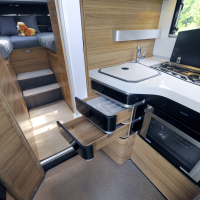 Sredi aprila je v Söldnu lahko še vedno precej hladno – aprilske nočne temperature pod lediščem so povsem običajne za turistično središče na 1300 metrih nadmorske višine. Komur ni do apartmajev ali hotelov, v Söldnu lahko prespi tudi v avtokampu – avanturistični popotniki v spalnih vrečah za tankim blagom šotorov, bolj razvajeni pa na mehkem ležišču počitniške prikolice ali avtodoma. Mi smo za to doživetje izbrali slednjo možnost in bili veseli priložnosti, da lahko preskusimo najboljše, kar nastaja v tovarni Adrie Mobil v Novem mestu. Adriin luksuzni dom na štirih kolesih sonic supreme 710 SL je zastavonoša dolenjskega izdelovalca avtodomov; integrirana zasnova s prepoznavno in všečno podobo na 7,5 metra dolžine ponuja veliko prostora in še več udobja, če v njem le ni preveč ljudi. Dva odrasla in dva otroka imajo dovolj prostora tudi za jutranja in večerna preoblačenja iz pižame v smučarsko perilo ter obratno; z odlično delujočim Aldejevim talnim gretjem in dodatno bivalno klimatsko napravo se sonic odlično znajde v ponoči ledenih, čez dan pa razgretih alpskih dolinah. V ogrevanem (in zelo prostornem) prtljažniku v zadnjem delu sonica nas tudi smučarski čevlji zjutraj pričakajo topli.