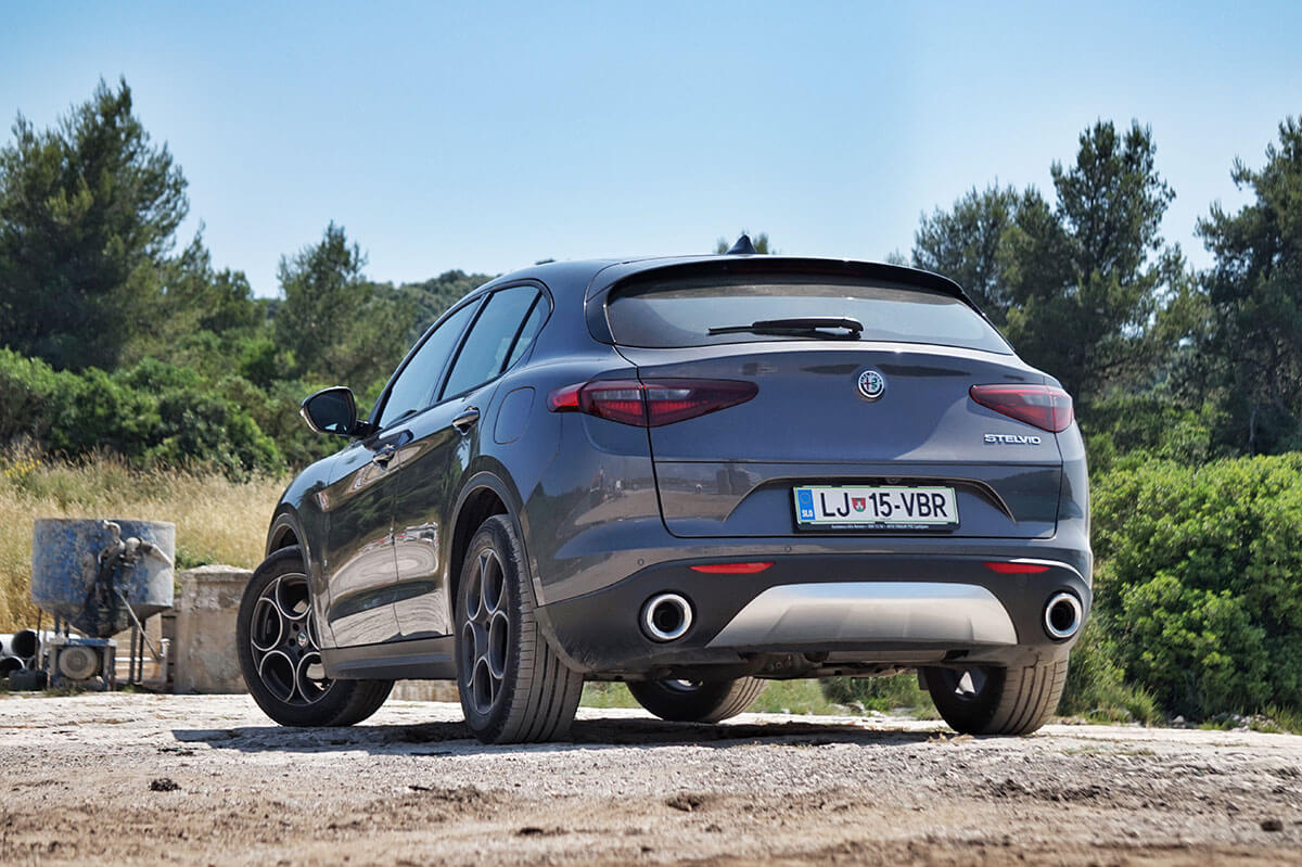 A če ne nameravate z avtom kopati po blatu ali se vzpenjati po kozjih stezah, vas bo stelvio navdušil; s tankočutno uravnoteženostjo podvozja, izjemno neposrednim volanskim mehanizmom in odličnim 8-stopenjskim samodejnim menjalnikom je na asfaltni cesti uživaška vozniška igrača. Stelvio zavira in zavija kot športna limuzina, ob zmerni masi pa bodo le najbolj občutljivi vozniki v vožnji znali začutiti malce višje težišče. Pogonska zasnova s pogonom na zadnji kolesi izostri odzive in nariše nasmeh na voznikova usta – ki bi bil še večji, če bi lahko sistem proti zdrsavanju koles in ESC izključili. Dizelski štirivaljnik s 132 kW je prožen in živahen, odlično pa se ujame z menjalnikom tako v samodejnem kot ročnem načinu.