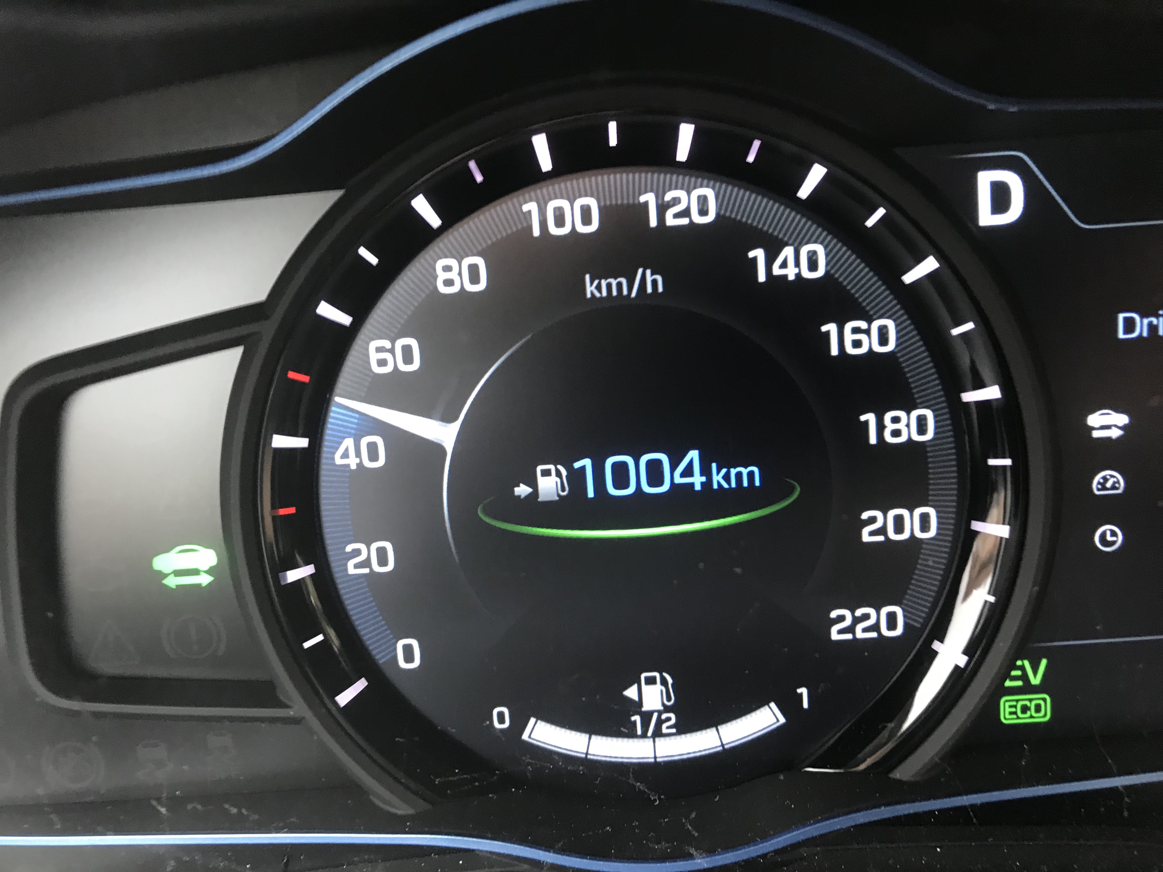 Pri hitrostih več kot 60 km/h zna ioniq z aktivnimi popravki volana nadzirati smer vožnje. Kamera spremlja talne oznake in vozniku z dvema zelenima črtama ob bokih izrisanega avtomobila na zaslonu instrumentne plošče sporoči, da je pomočnik aktiven. Na avtocesti, ob spuščenem volanu, zanesljivo drži smer in se ne “odbija” od črte do črte. Sposoben je samodejno speljati tudi ovinek, če hitrost ni prevelika oziroma radij preoster. Vozi zanesljivo, dokler so oznake jasno vidne. V tem primeru avto ne bo “ušel” preko voznega pasut. Bo pa v 10 sekundah voznika opozoril, da je treba prijeti za volanski obroč. Na regionalnih in lokalnih cestah ter v ostrejših zavojih ioniq ne zna popravljati smeri tako dobro, da bi mu popolnoma zaupali volan. A voznika vselej zanesljivo opozori, da je meja voznega pasu blizu in s popravkom na volanu pomaga pri reakciji v pravo smer.