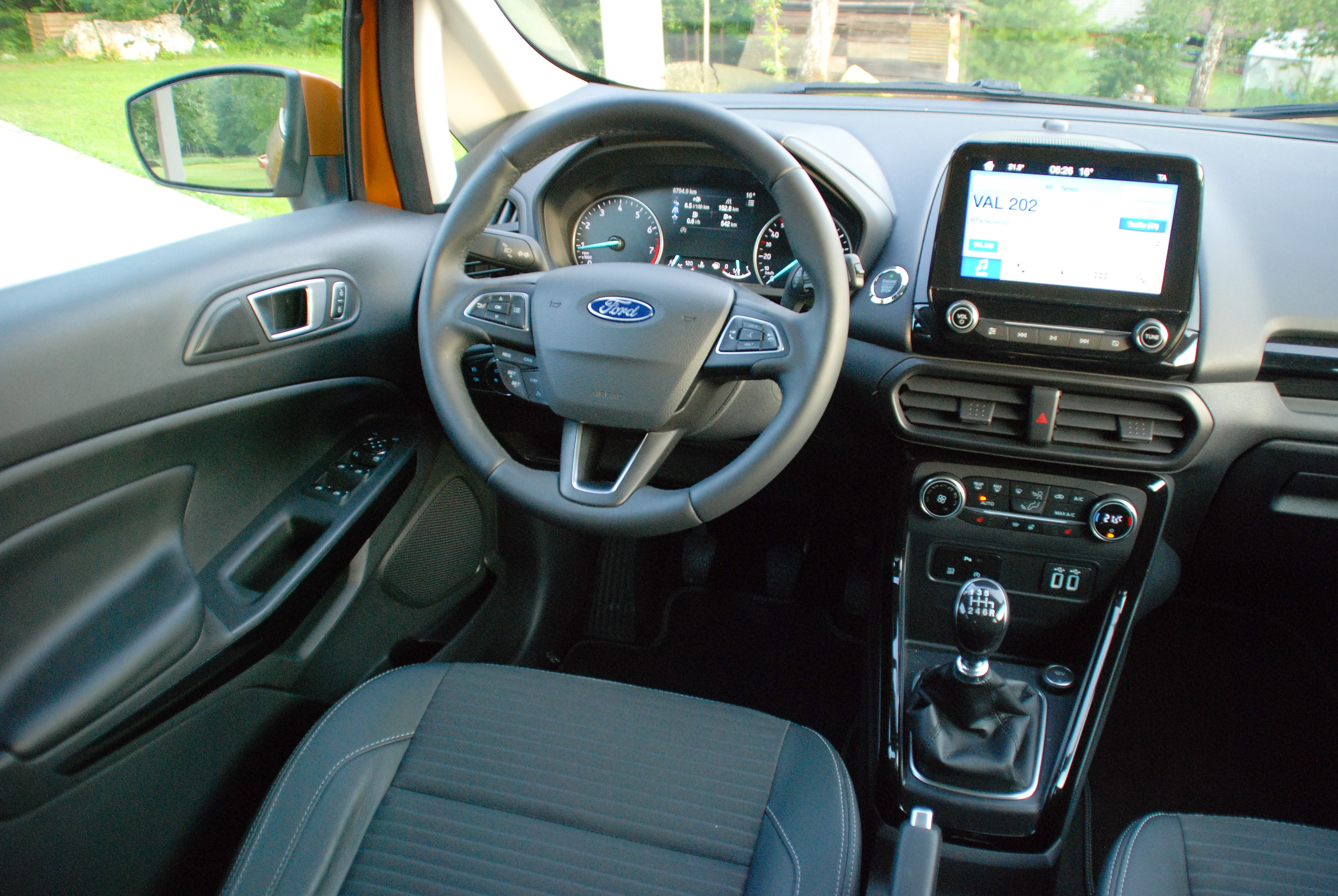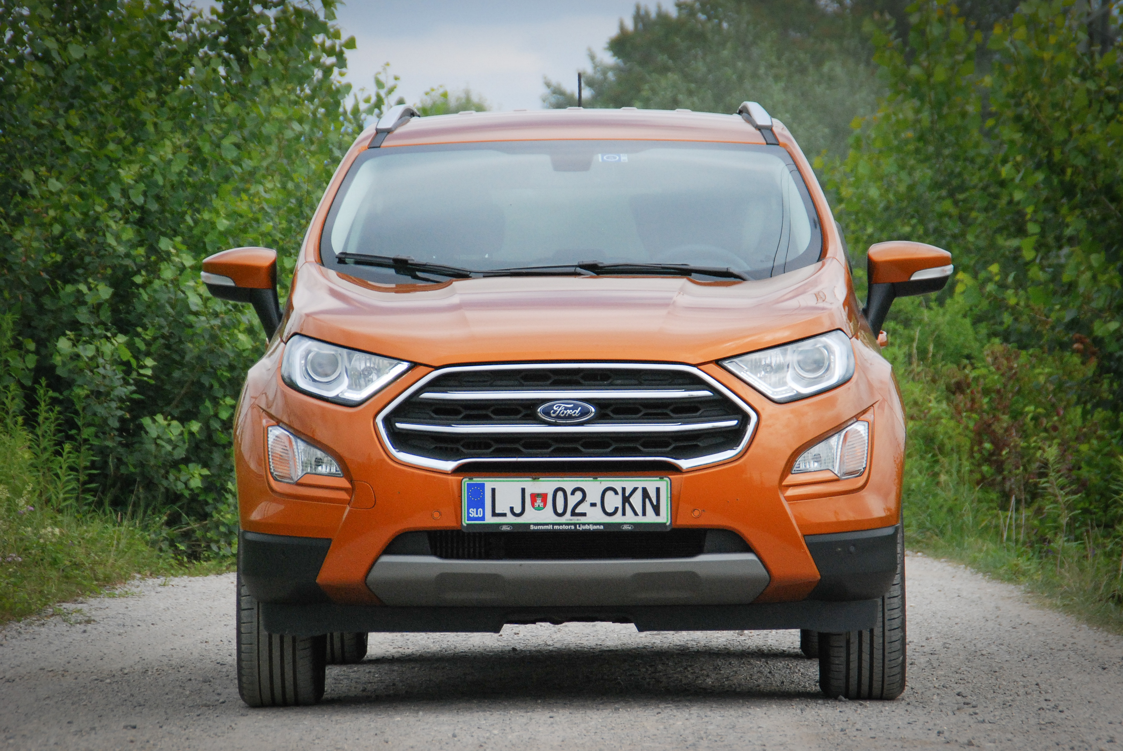 Fordovi evropski geni - fiesta, b-max in kuge - v ecosportu niso postali dominantni. Avto je v primerjavi s prejšnjo generacijo naredil velik korak naprej, a še se občuti, da je v osnovi bil namenjen drugačnim kupcem in cestam. Oblika še vedno deluje nekoliko neskladno. Z voznimi lastnostmi, predvsem pri dinamični vožnji, pušča mešane občutke. Ne pelje se tako suvereno, kot smo v Evropi od fordov navajeni. V hitreje odpeljanih ovinkih ne more skriti visokega težišča, na avtocesti mu do živega pride učinek bočnega vetra, podvozje pa na trenutke deluje malce zmedeno. Lega je sicer dobra, a vozniku preprosto ne daje takega občutka. Zlasti pri zaviranju postane nekoliko nemiren. Podobno je z blaženjem: na trenutke deluje zelo udobno, malce (pre)mehko, a pri večjih neravninah zna kolo na trdo udariti cesto. Nezahtevnim in umirjenim voznikom bo ponudil dovolj, a dinamično vožnjo in udobje pa tekmeci obvladajo bolje.