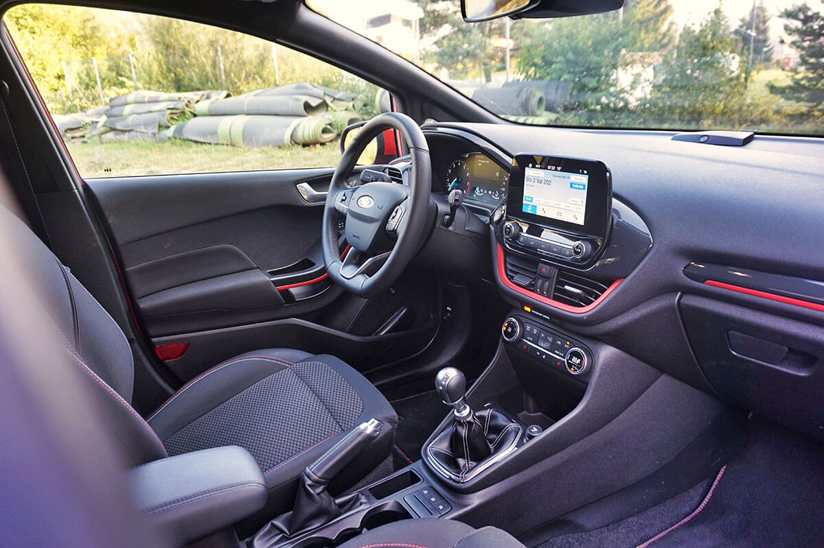 Pri Fordovih avtomobilih imata športni zven dve kratici – ST in RS. A kam potem spada oznaka “ST line”? V predal z navidezno športnostjo, kakršnega premore vse več avtomobilskih znamk; tovrstne športne “linije” so praviloma omejene na športne dodatke, videz in športno opremo, pod motorni pokrov pa sežejo le redko. Tudi fiesta ST spada v to kategorijo; krasijo jo na primer zadnje krilce, športna maska hladilnika, športna prednja sedeža, aluminijasti pedali in še nekaj športnih podrobnosti, ki – vsaj na pogled – opozarjajo na bolj športen značaj avta.