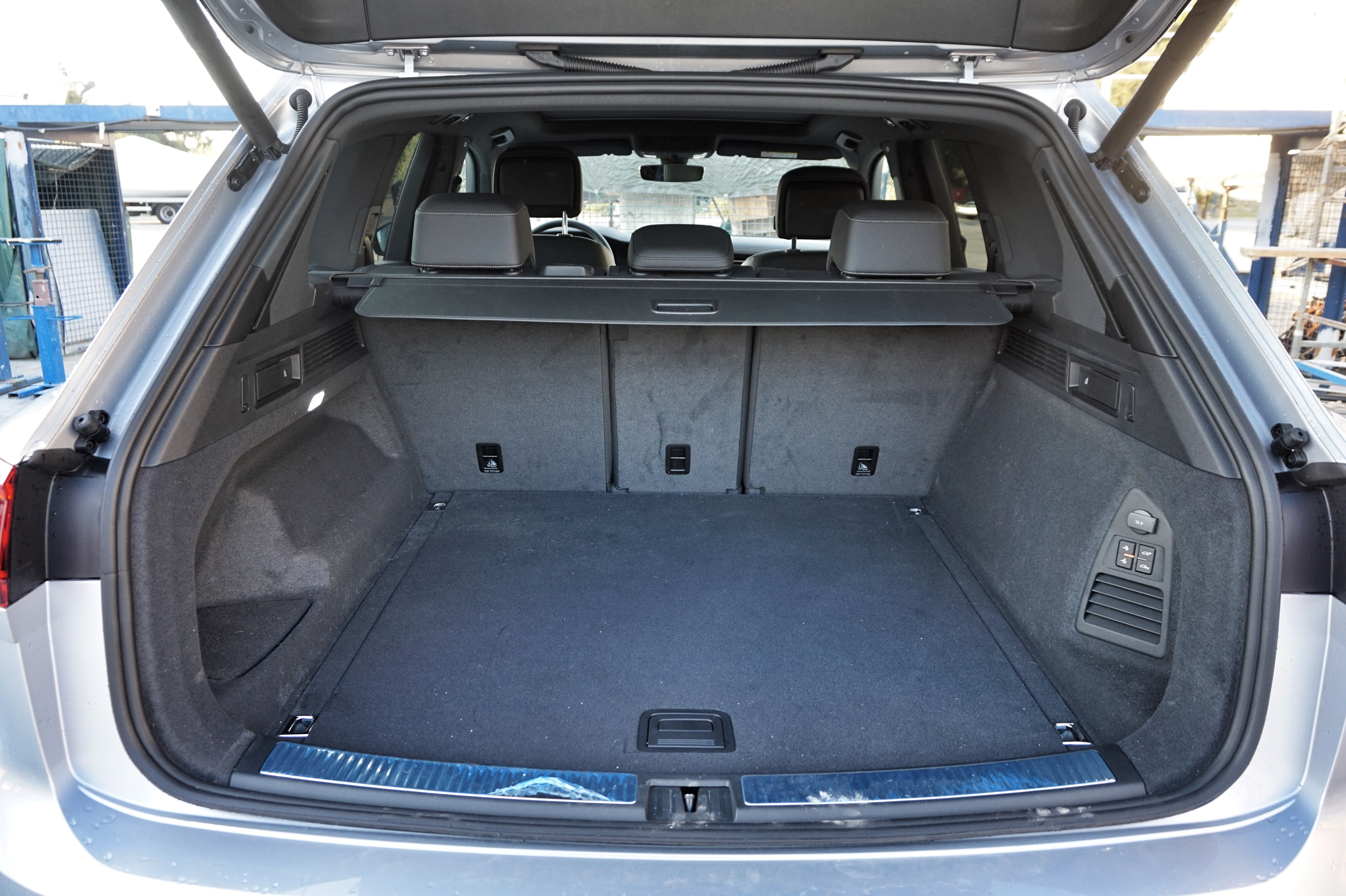 Novi touareg je terensko visok avto, a z obilico kroma in izraznostjo tudi dovolj imeniten in prestižen. Morda ima zaradi globalnih (tudi kitajskih) ambicij nekaj težav z identiteto – od zadaj ga boste hitro zamenjali za kakšen drug avto iz koncerna VW –, a na cesti ga je vendarle težko spregledati. Z dolžino 4,9 metra ni največji med tekmeci, je pa zato zelo širok, kar zahteva nekaj previdnosti pri tesnih parkiranjih. Skoraj 2 metra karoserijske širine se pozna v notranjosti; s komolci se voznik in sovoznik težko srečata, na zadnjo klop pa udobno sedejo trije krepki možaki. Prtljažnik za njimi je velik, uporabno pravilnih oblik in lahko dostopen.