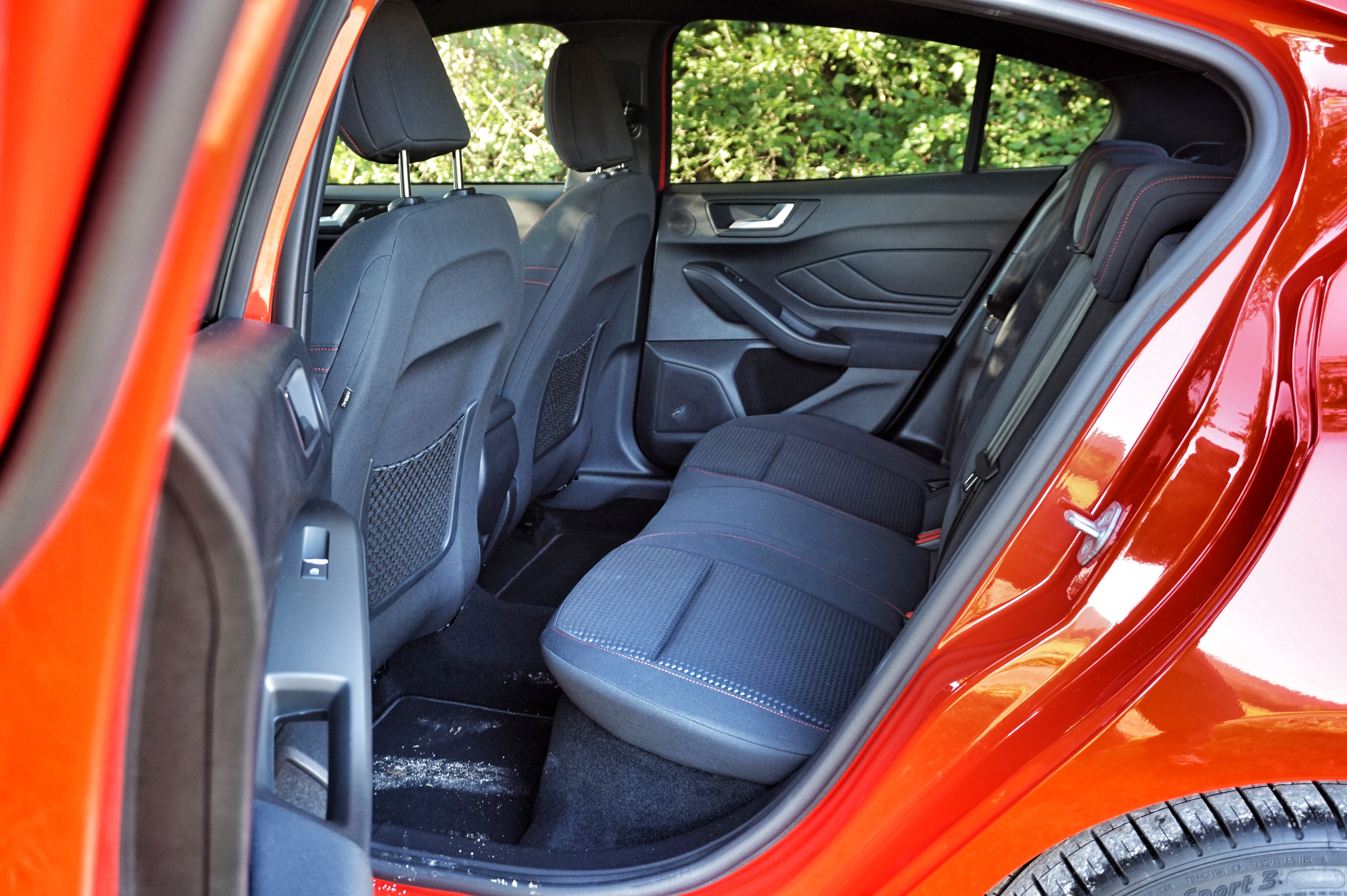 Z novo obliko je focus dobil tudi drugačno razporeditev notranje prostornosti. Več je prostora za potnike na zadnji klopi, kamor zdaj brez težav lahko sedeta dva odrasla – tudi zaradi širokih kotov odpiranja zadnjih bočnih vrat. A prostorski centimetri so omejeni, zato se spreminjanje notranje arhitekture pozna v prtljažniku: ta je sicer lahko dostopen, a s 375 litri prostornine med najmanjšimi v razredu.