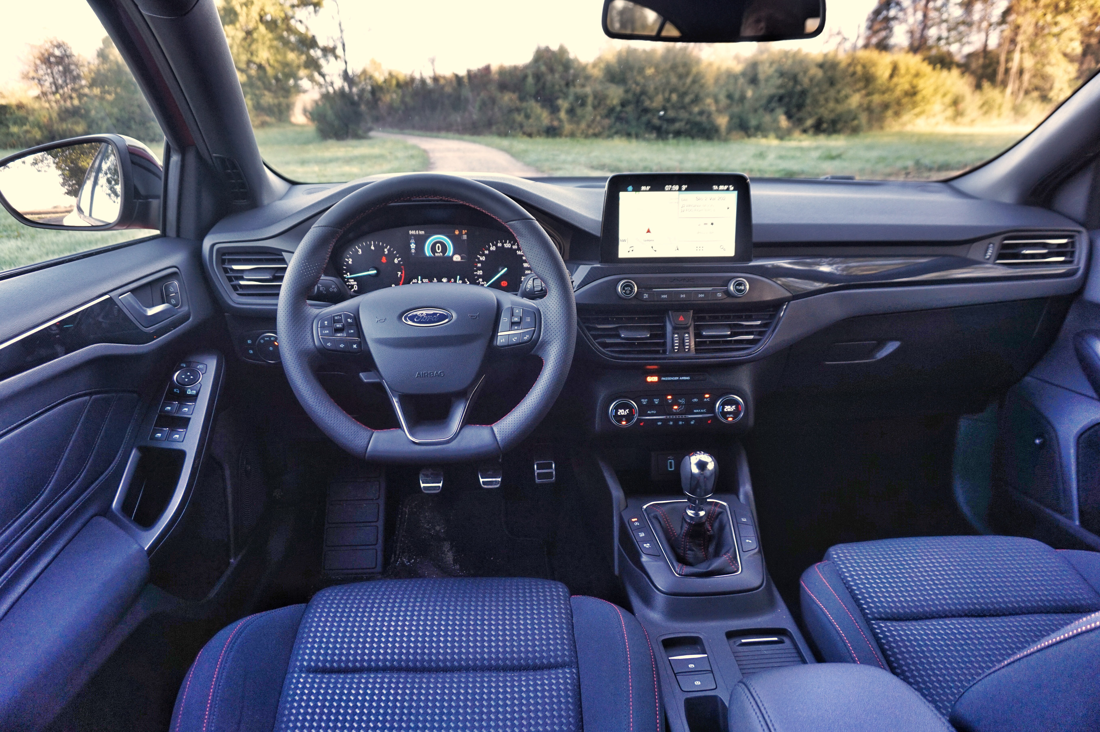 Focus je dobil precej bolj digitalno notranjost, z manj gumbi kot v predhodniku in bolj ergonomsko zasnovo. Opazko pa si zasluži bivalni občutek v potniški kabini; športnega počutja ne zagotavljata le dobra prednja sedeža, pač pa tudi precej nizek položaj sedenja in dokaj ozka bočna okna – namesto zračne in svetle notranjosti focus voznika in sopotnike objame s športno intimnostjo. Tudi pri focusu so – tako kot pri večini drugih fordov – v ospredju natančna vodljivost, lahkotnost pri upravljanju in odzivnost mehanike; z novim focusom se je veselje zapoditi v ovinke, a enako učinkovito pod kolesi lahko nabira tudi potovalne avtocestne kilometre, čeprav je imel v tej različici avto športno podvozje.