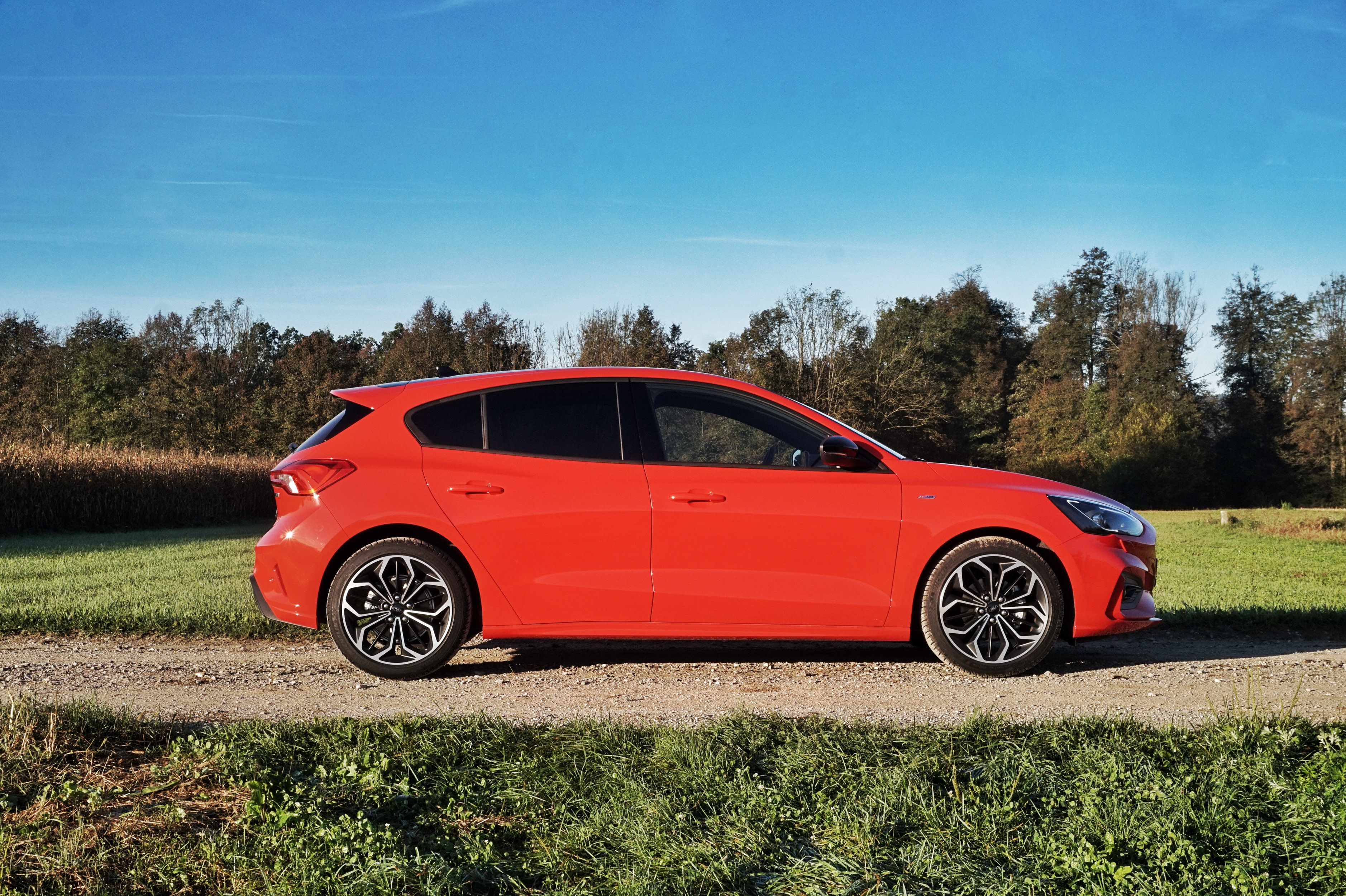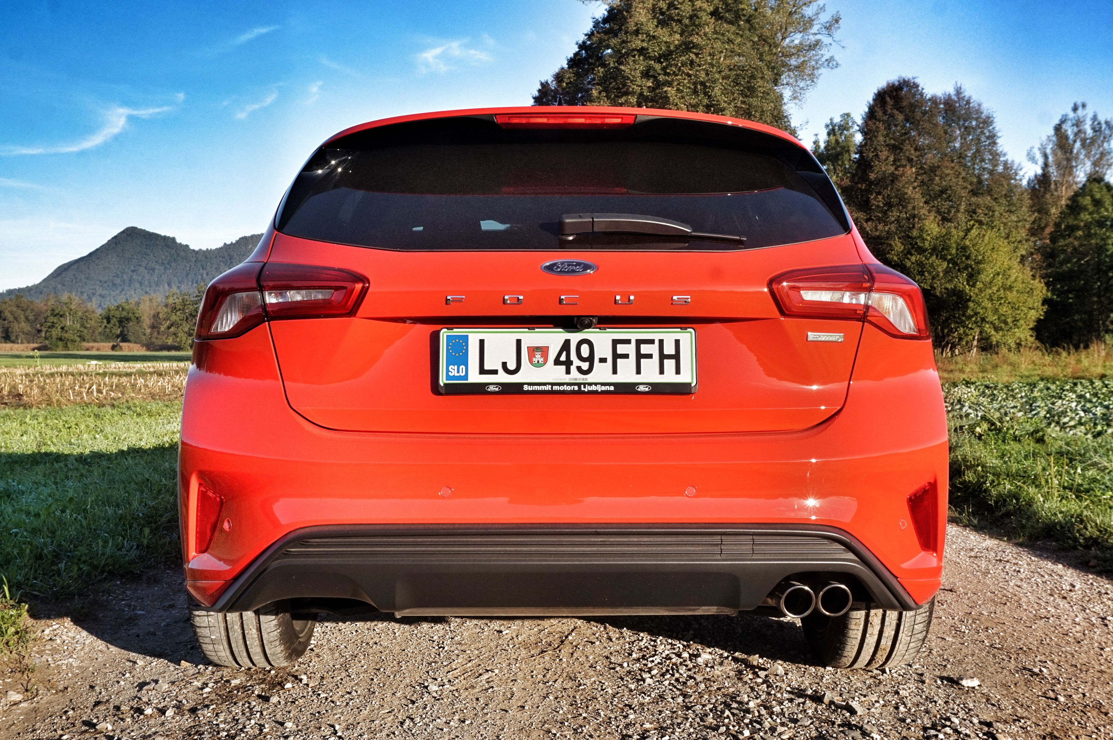 Preden se zakopljemo pod focusovo pločevino, velja – različnosti okusov navkljub – zapisati, da so Fordovi oblikovalci zrisali najlepšega focusa doslej; nižja karoserija, daljša medosna razdalja in nazaj pomaknjeno vetrobransko steklo mu dajejo nezgrešljiv športni značaj, športni paket opreme ST line pa še bolj poudari dinamično podobo.