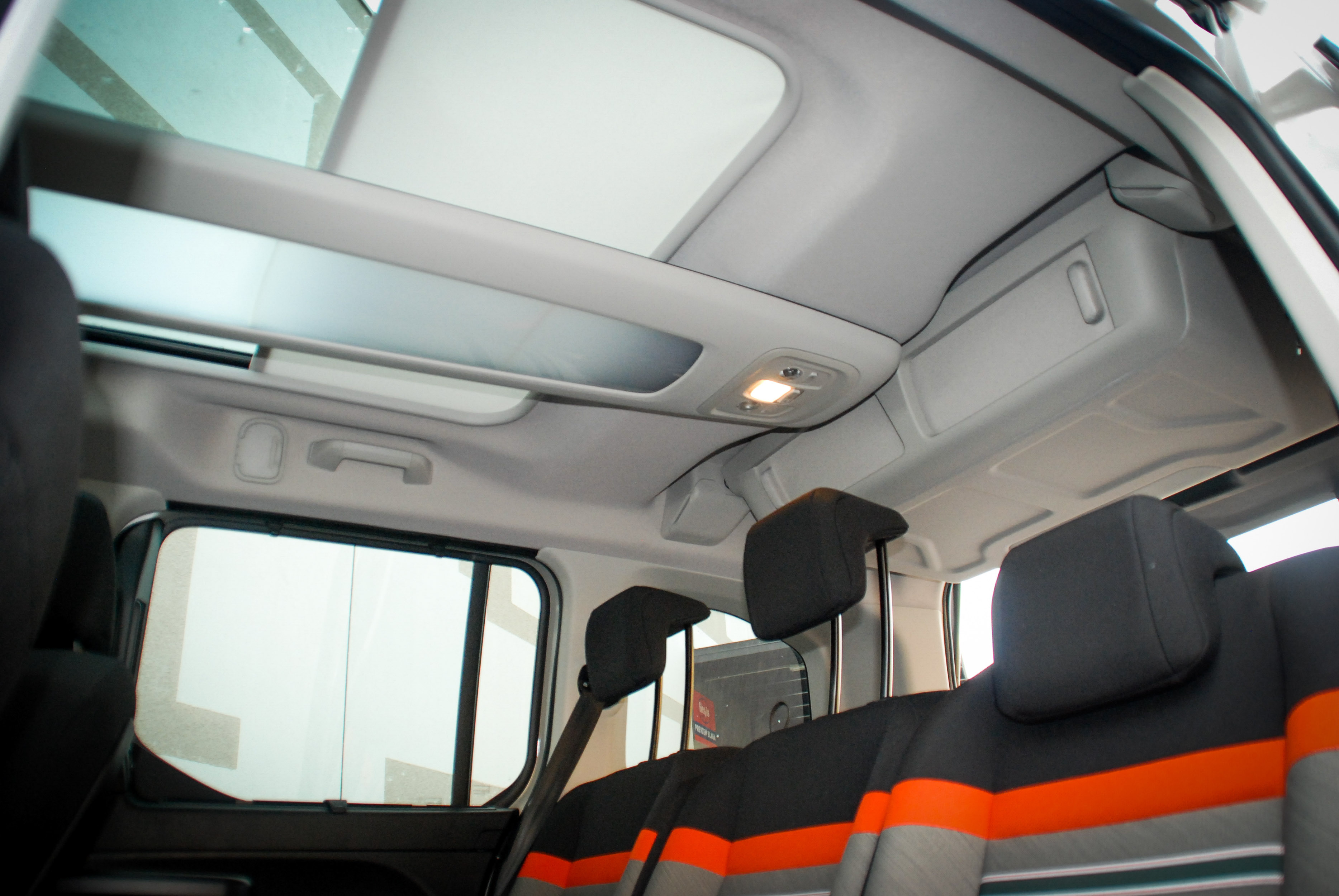 K odličnemu počutju v kabini svoje doda višji sedežni položaj in veliko svetlobe ter letalska zasnova mansarde, ki jo skupaj z električnim zastorom in dodatnimi strešnimi predali prinese steklena panoramska streha. Ta je pri opremi z oznako shine del serijske opreme. V berlingu M se povsem brez težav udobno sedi 5 potnikov. Zadaj so trije ločeni sedeži in vsi opremljeni z lahko dostopnimi isofix sidrišči. Škoda le, ker jih tako kot prej ni mogoče enostavno vzeti iz avtomobila.