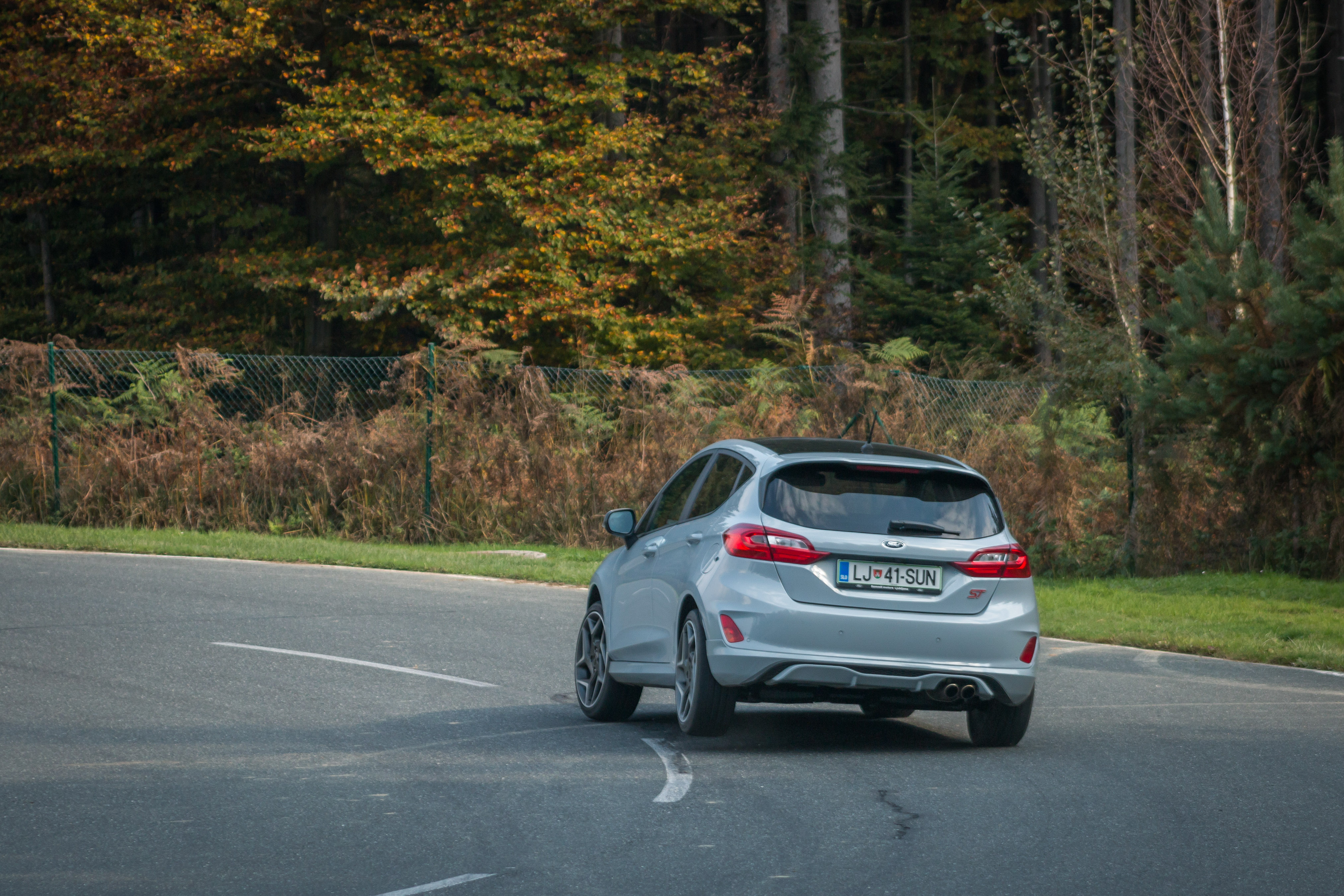 Pozna se, da so inženirji v fiesti ST temeljito posegli v podvozje, predvsem v nastavitve zadnjega kolesnega para, kjer so namestili nove, čvrstejše vzmeti oblikovane kot banane ter vse skupaj ojačili z izjemno togim prečnim stabilizatorjem. Fiesta ST se brez težav pelje po treh kolesih. Podvozje je izjemno uravnoteženo, avto je res zelo natančno vodljiv, a na trenutke je vožnja oziroma blaženje tudi neusmiljeno trdo. Res moraš biti pravi zanesenjak, da se odločiš imeti fiesto ST za prvi avto osebne mobilnosti. Kot drugi avto za zabavo pa trenutno ni bolj osredotočenega športnika za ta denar. Je pa fiesta ST poleg občutnega napredka športnega napredka napredovala tudi po ceni. Žal. Pri dodatni opremi bi vsekakor odkljukali 830 evrov vreden paket performance. Z njim fiesta postane resen športnik, upornica tiranskim silam fizike, ki si jih v ovinku podreja z mehansko zaporo diferenciala z omejenim zdrsom (LSD). Oprijema na prednji osi je res veliko, težnja po podkrmarjenju, zdrsu preko prednjih koles pa povsem zadušena. V paketu je še program nadzorovanega speljevanja (launch control) za odličen štart na track dnevu. Dodatna oprema je testno fiesto ST podražila na skoraj pet tisočakov. Nesprejemljivo visoko doplačilo, sploh glede na varnostno vsebino v polu, pa je doplačilo 740 evrov za nadzor mrtvih kotov.