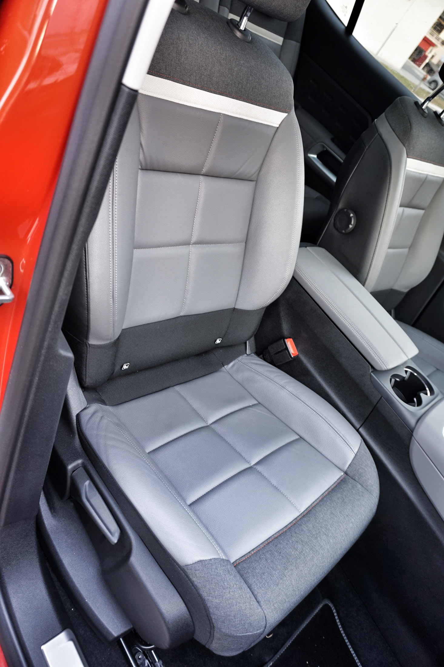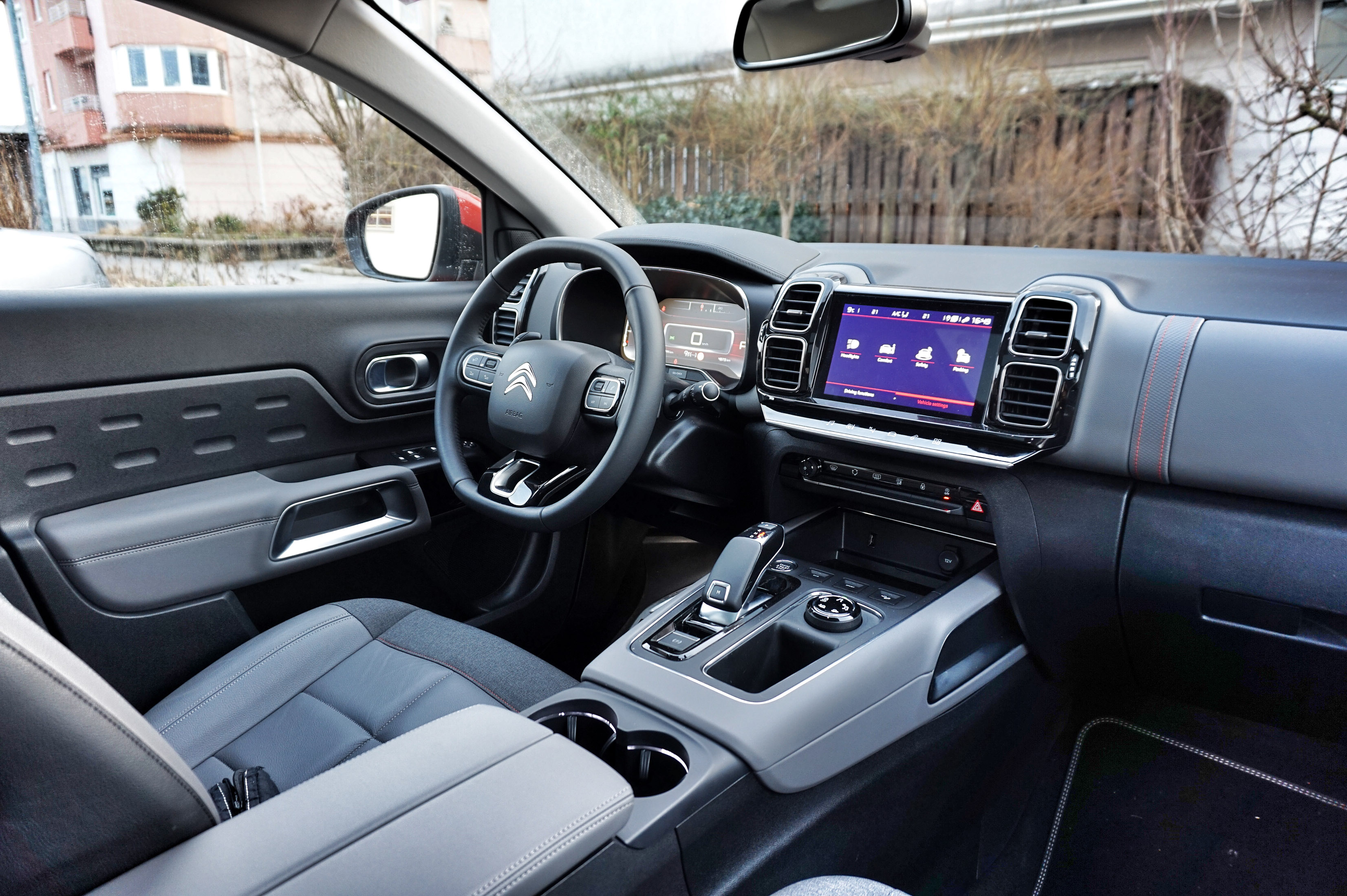 V kabini v oči najprej padejo nenavadno široki sedeži: pod foteljasto podobo, ki na prvi dotik deluje premehko, se skriva premišljena anatomija oblazinjenja, ki tudi na dolgih poteh ponuja veliko opore in sedalnega udobja. Digitalna armaturna plošča in premalo odziven sredinski zaslon multimedijske naprave zahtevata več pozornosti, kot je potrebno in varno, razočara tudi na nekaterih mestih cenena izbira plastike (na primer na oblogah vrat).