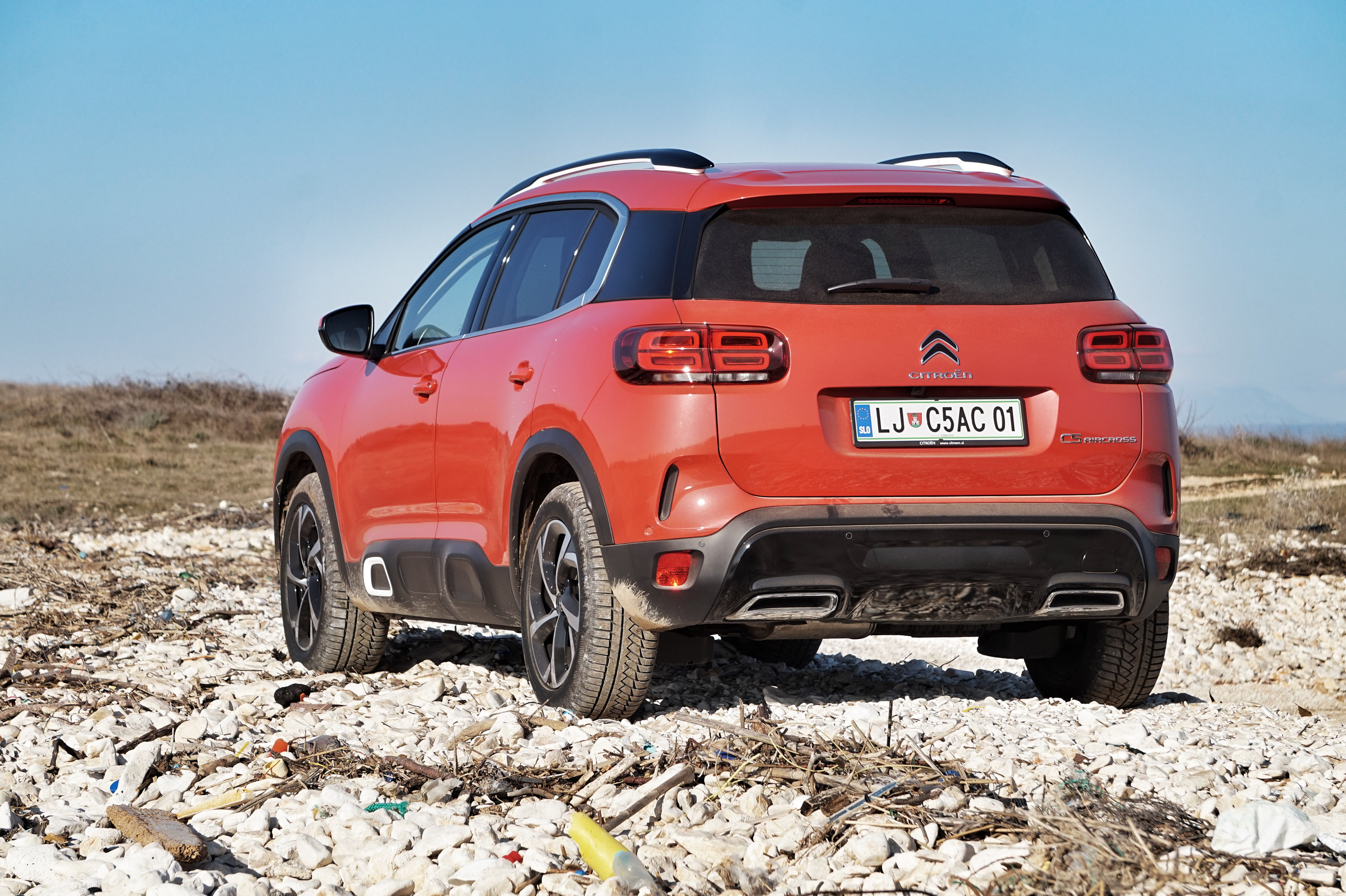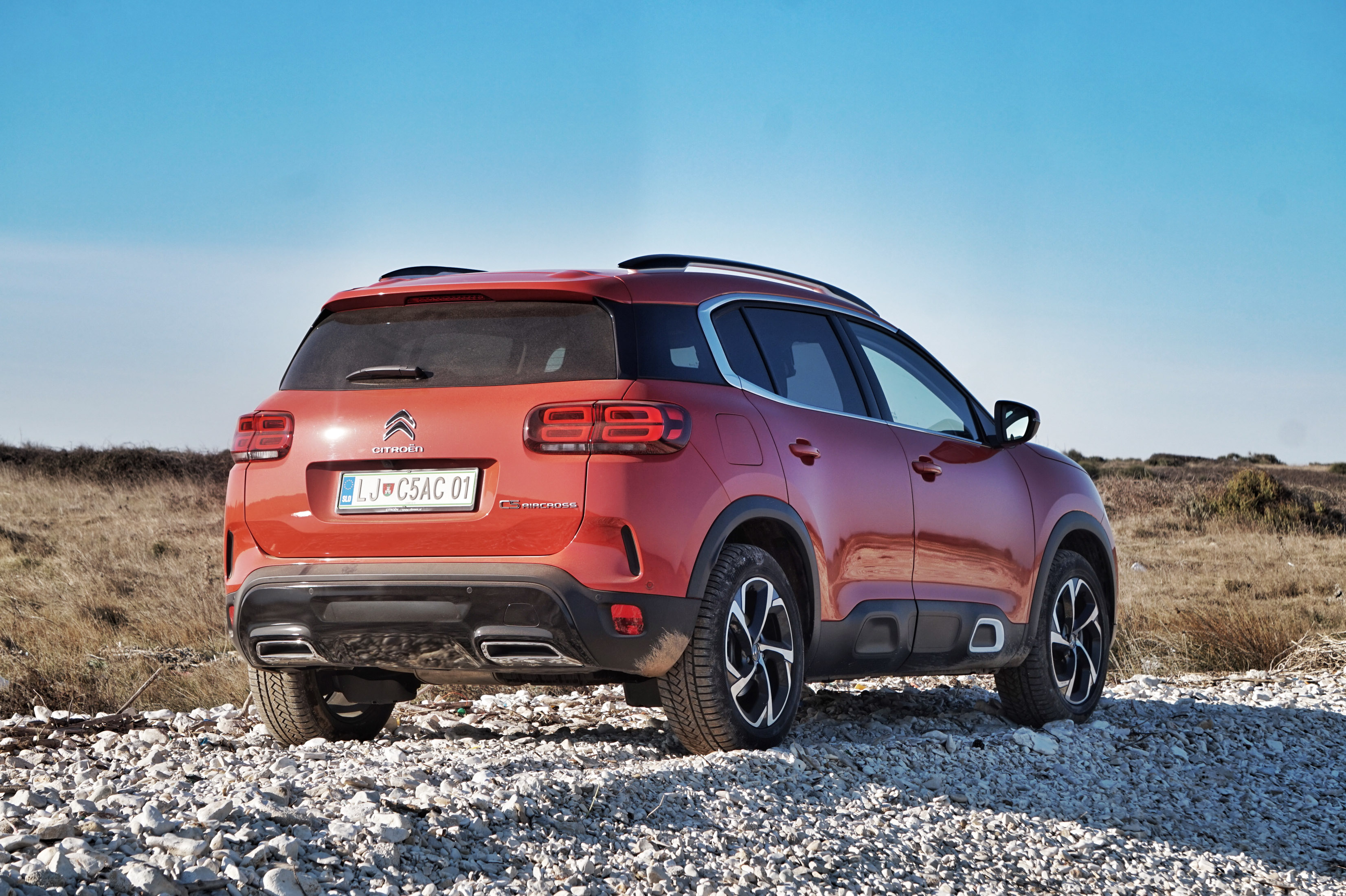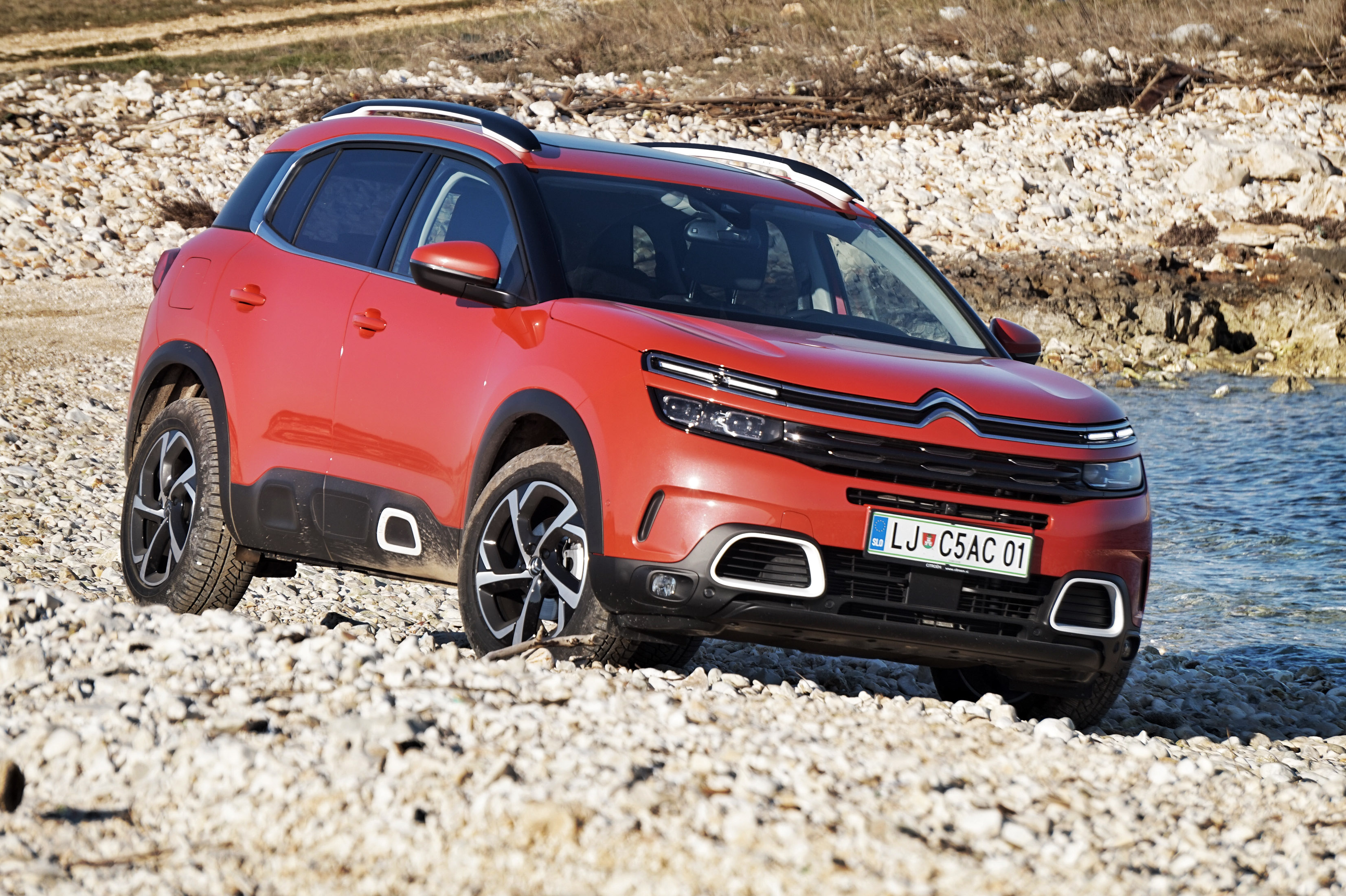 Tehnični sorodnosti navkljub C5 aircross ubira svojo pot - predvsem s prepoznavno podobo, ki zelo dosledno sledi Citroenovi najnovejši oblikovalski filozofiji; je očem prijazen in prikupen avto, ki noče biti športnik ali prestižni nastopač.