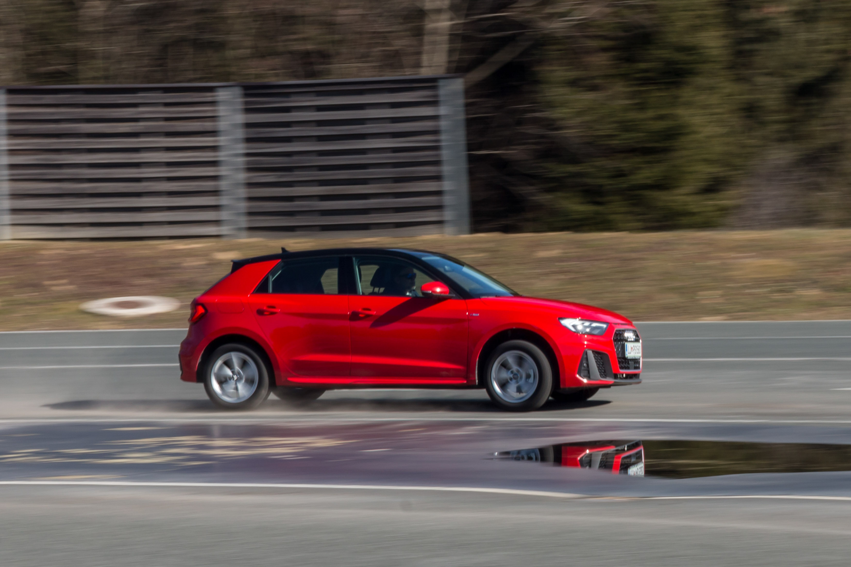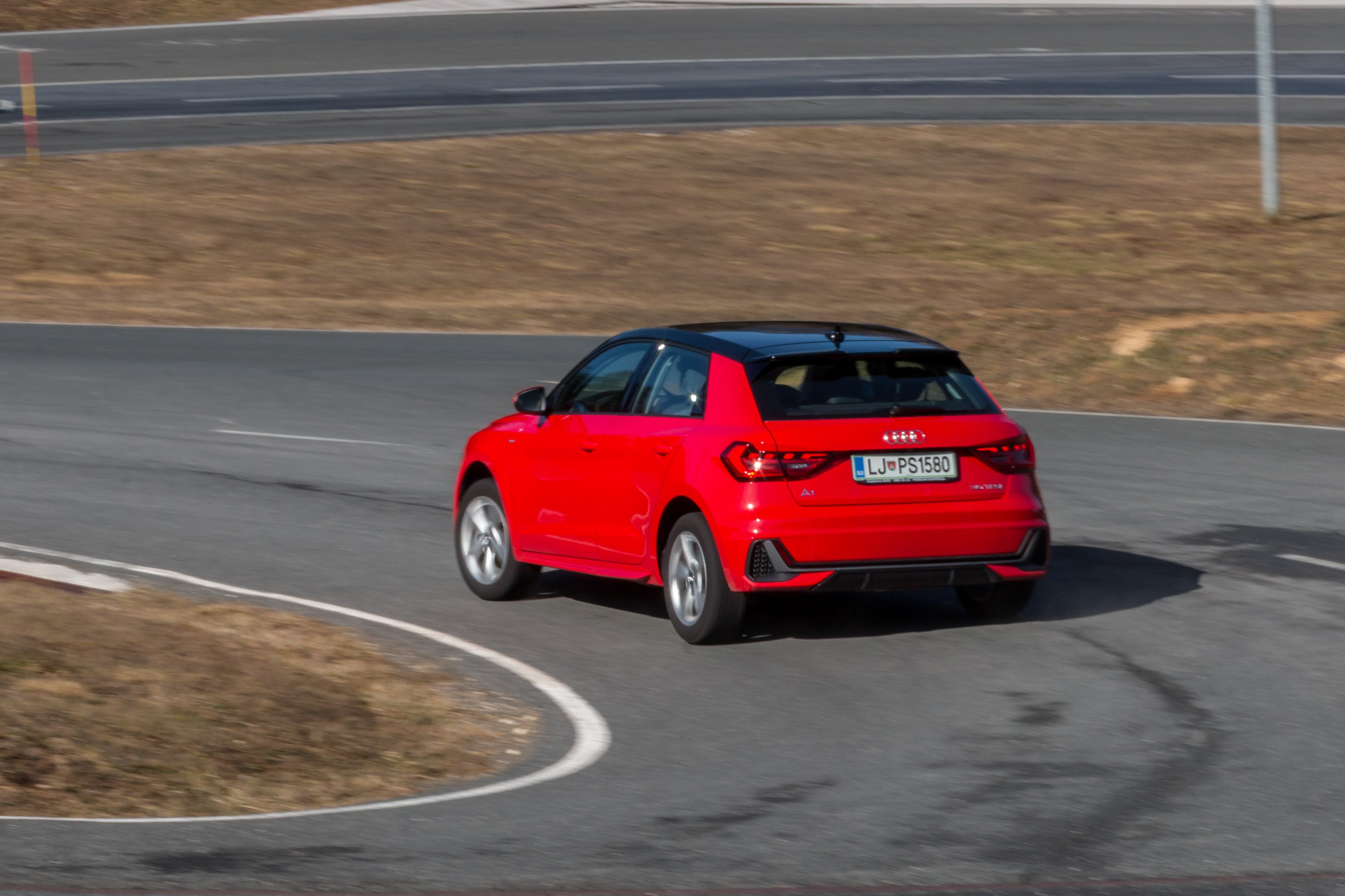 Novi audi A1 sportback se je v svoji drugi generaciji poslovil od 3-vratne karoserijske različice in dizelskega motorja, z novo obliko pa postal še športnejši. A tako ostro, kot je s paketom opreme s-line videti na oko, se zna tudi peljati: v mestu izjemno okretno in igrivo, na odprti cesti pa športno suvereno - kot gokart. Voznik sedi zelo nizko, nizko pa je postavljeno tudi težišče, saj streha avta ne seže višje od 1,4 metra. Lega a cesti je odlična, volan zelo natančen, športno podvozje (del serijske opreme paketa s-line) pa zelo čvrsto in uravnoteženo. Kdor išče odzivnost in športnost, bo nad avtom navdušen, saj prav nič ne zaostaja za namenskimi žepnimi športniki. Senčna plat poudarjene vozniške dinamike pa je trdo in na slabih cestah neudobno vzmetenje - za udobnejše vsakdanje poti velja razmisliti o nakupu prilagodljivih blažilnikov (190 evrov).