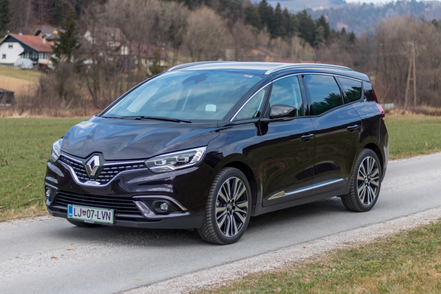 Daljši grand scenic je od zadaj na primer zelo podoben večjemu espacu, sledi pa mu tudi s prostornostjo: na posamično nastavljivih sedežih v drugi vrsti je dovolj prostora tako za kolena kot za glave, sedeža v tretji vrsti pa sta le zasilna. Če ju zložimo v prtljažno dno, grand scenic ponudi kar 718 litrov prtljažnega prostora. Grand scenic svoje družinsko poslanstvo potrjuje s prilagodljivostjo in tudi z veliko priročnimi odlagalnimi površinami in predali.