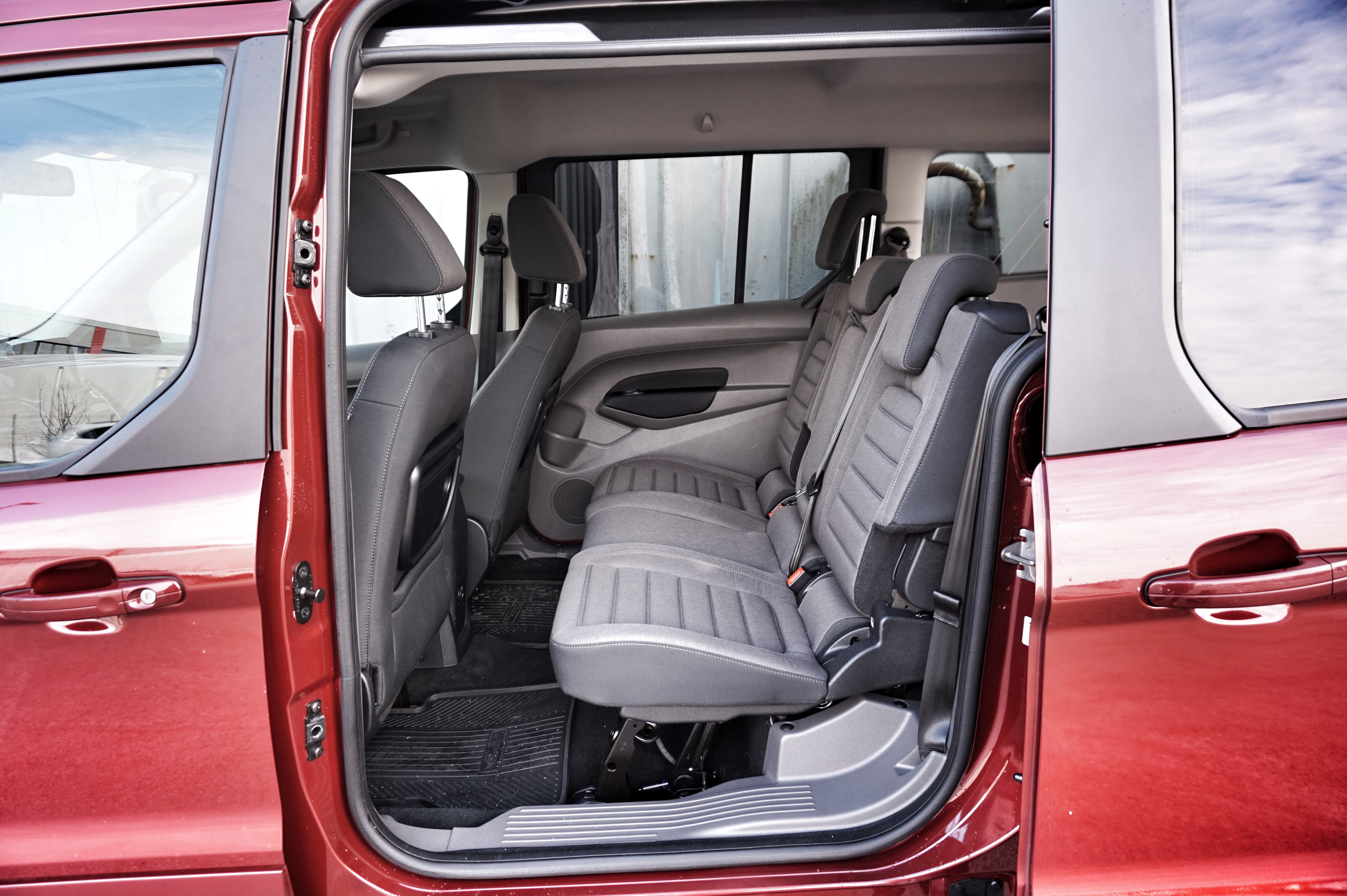 Se pa Fordova zajetna medosna razdalja - ta je 27,7 centimetra daljša kot pri combu in preseže tri metre - občuti v srednji vrsti, kjer je prostora za kolena ogromno. Ob visokem stropu bodo zadaj brez težav sedeli več kot 180 centimetrov visoki potniki. Bonus podaljšane različice so zelo široka bočna drsna vrata, ki še povečajo udobje pri vstopu. Pripenjanje otroka v otroški sedež je v tem avtomobilu povsem nestresno opravilo, tudi na ozkem parkirnem mestu. Neprepričljiv vtis pa navkljub izdatni dolžini ford pusti z uporabno vrednostjo 6. in 7. sedeža. Dostop do sedežev še vedno zahteva precej telovadbe, pa tudi postavljanje in pospravljanje sedežev v prtljažniku ni najbolj enostavno. Ključna dodana vrednost podaljšane različice je torej velikost prtljažnika, če sta 6. in 7. sedež pospravljena, oziroma kar 2,6 kubičnega metra prostornine, če je zložena tudi srednja vrsta (sedež in klop). Takrat tourneo connect lahko ponudi celo precej udobno spalnico za dva, saj se sredinska vrsta lahko “povsem potopi” v dno in nastane ravna ploščad.