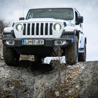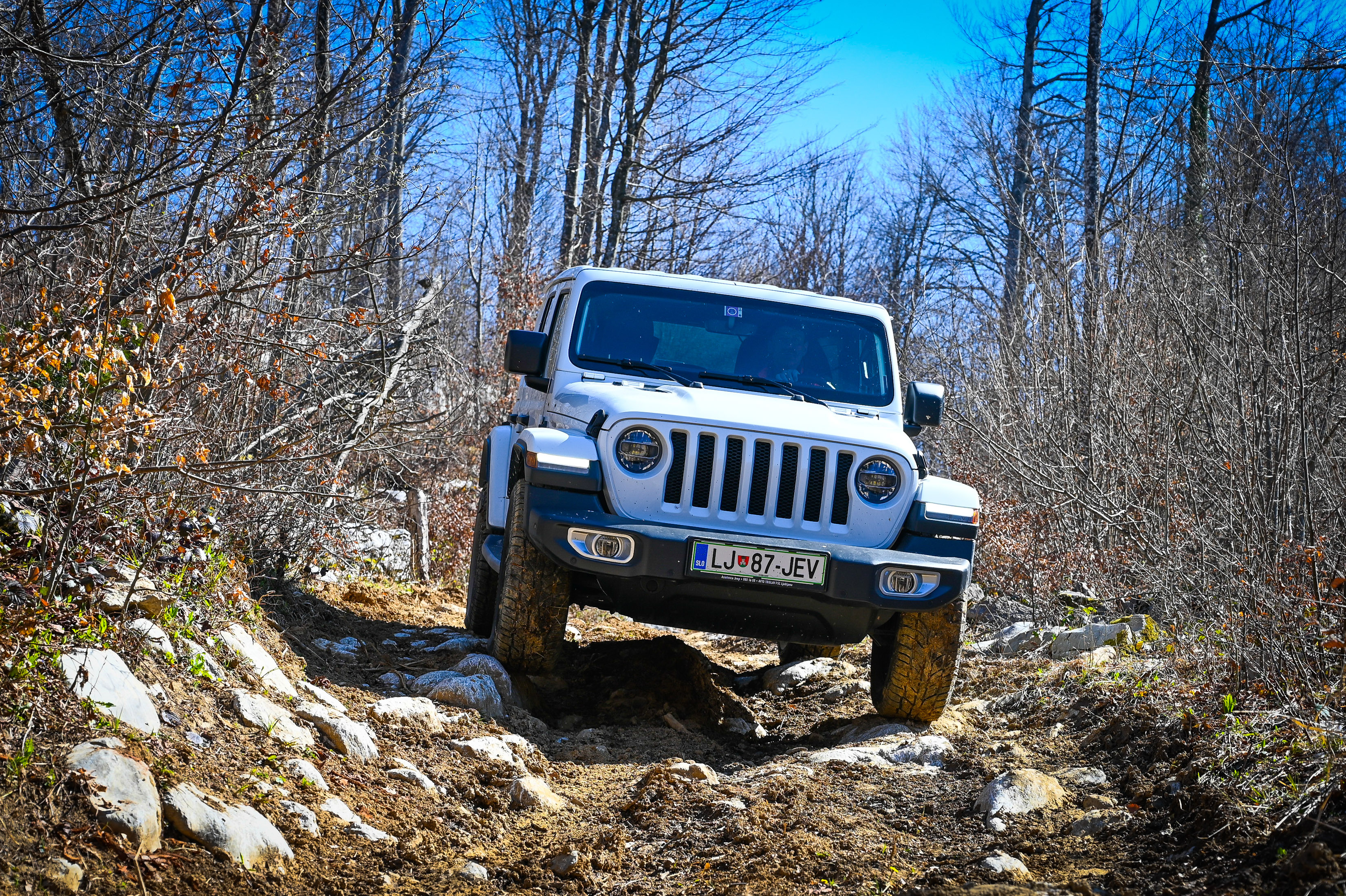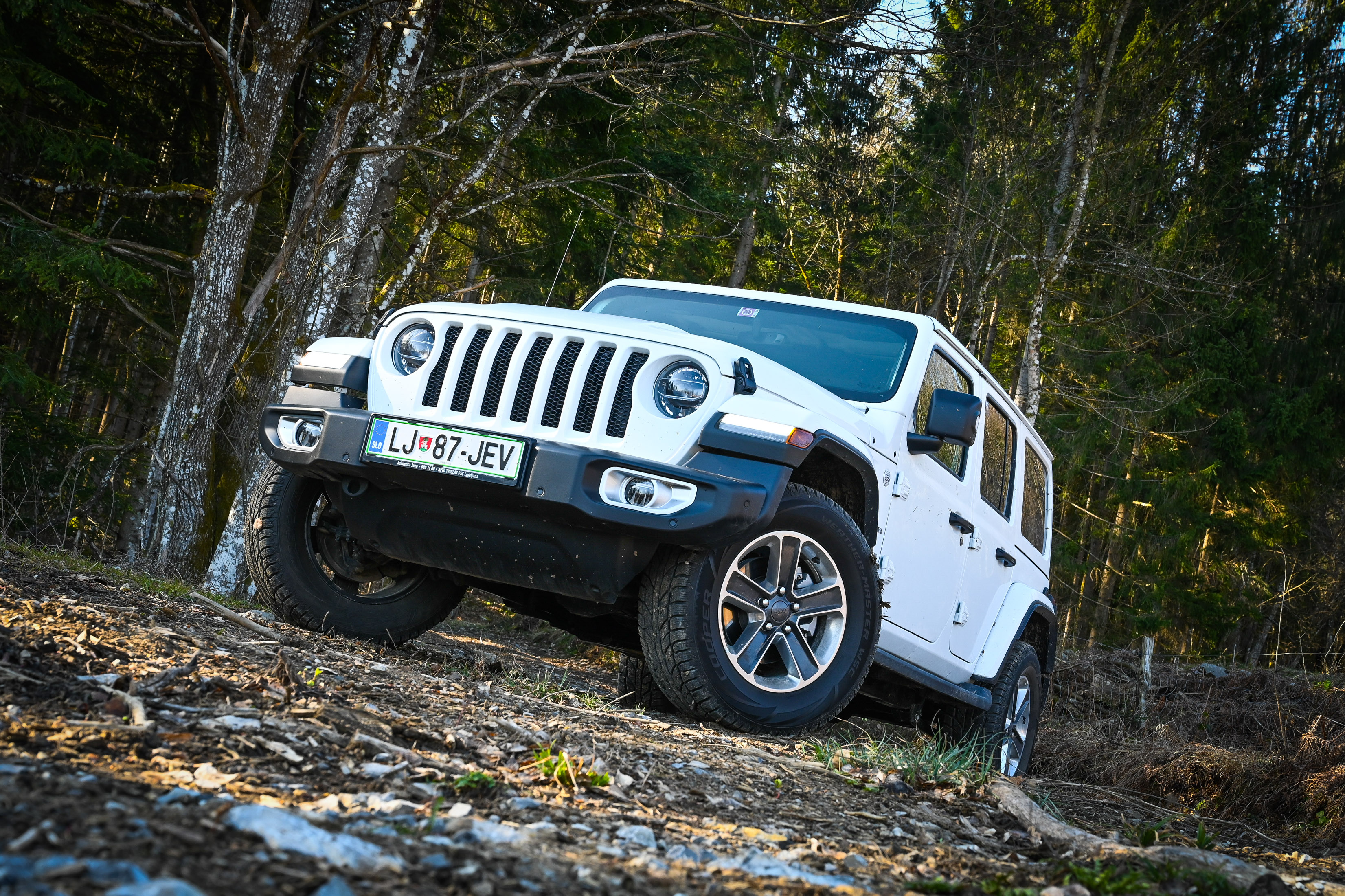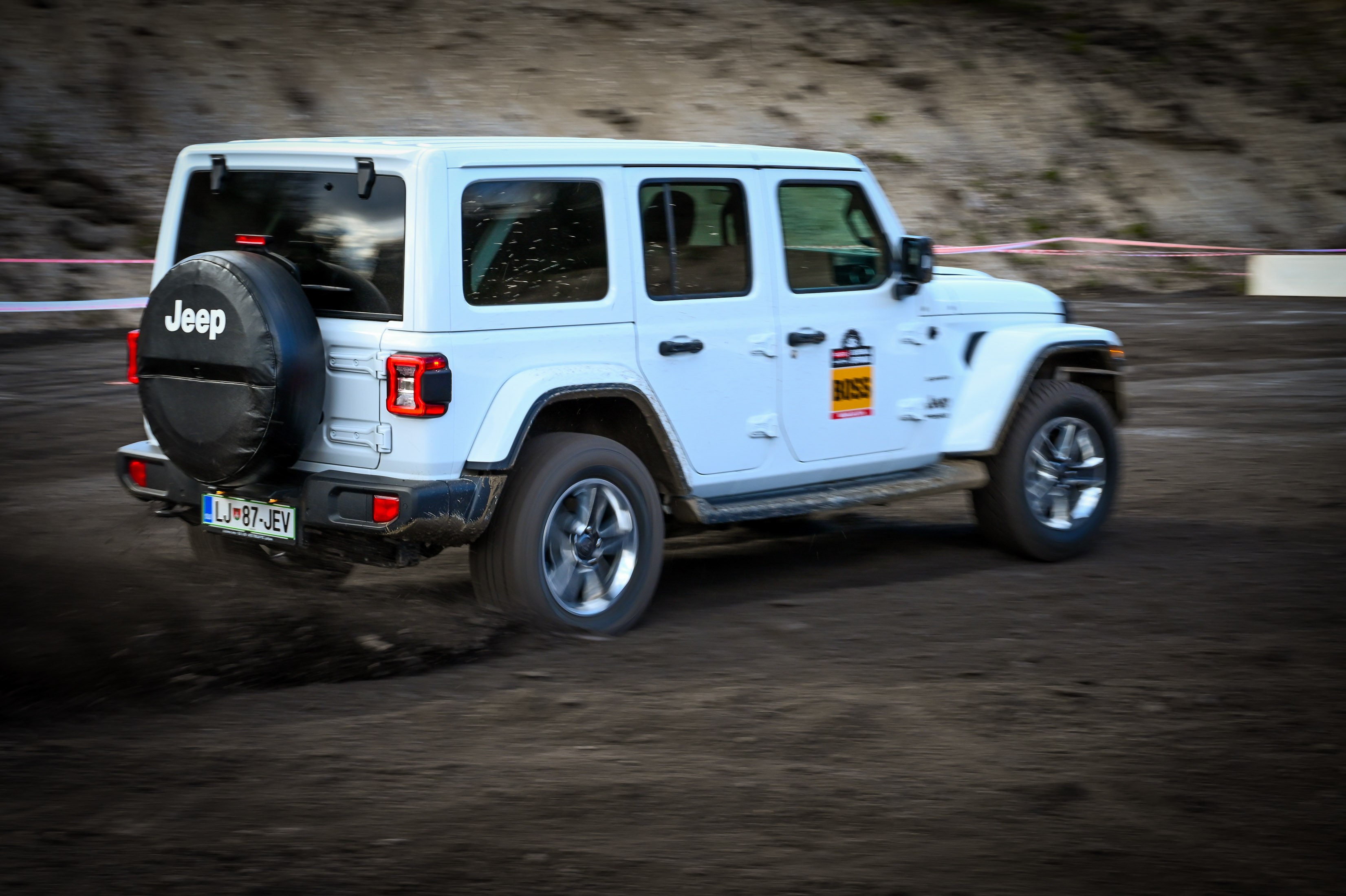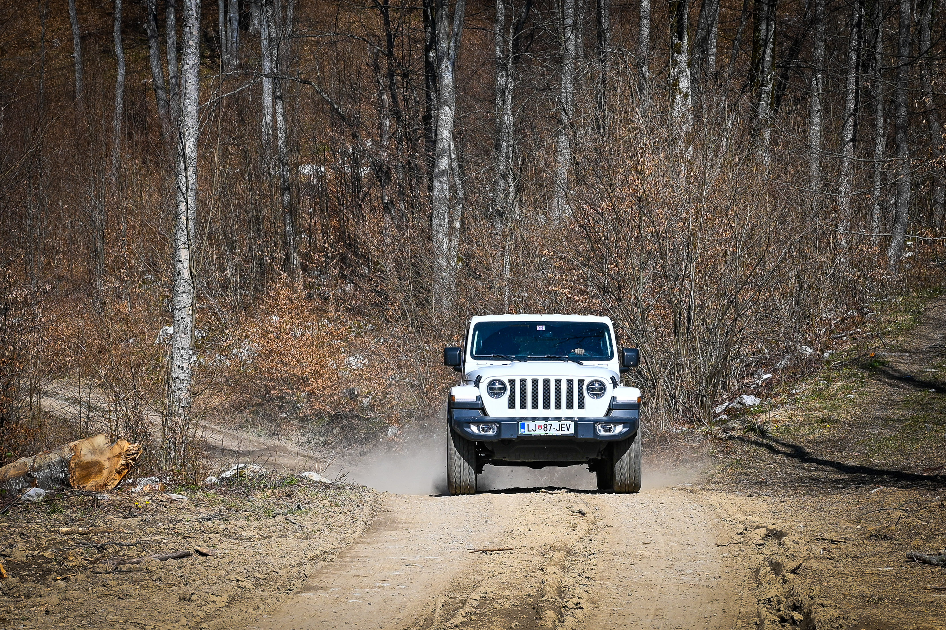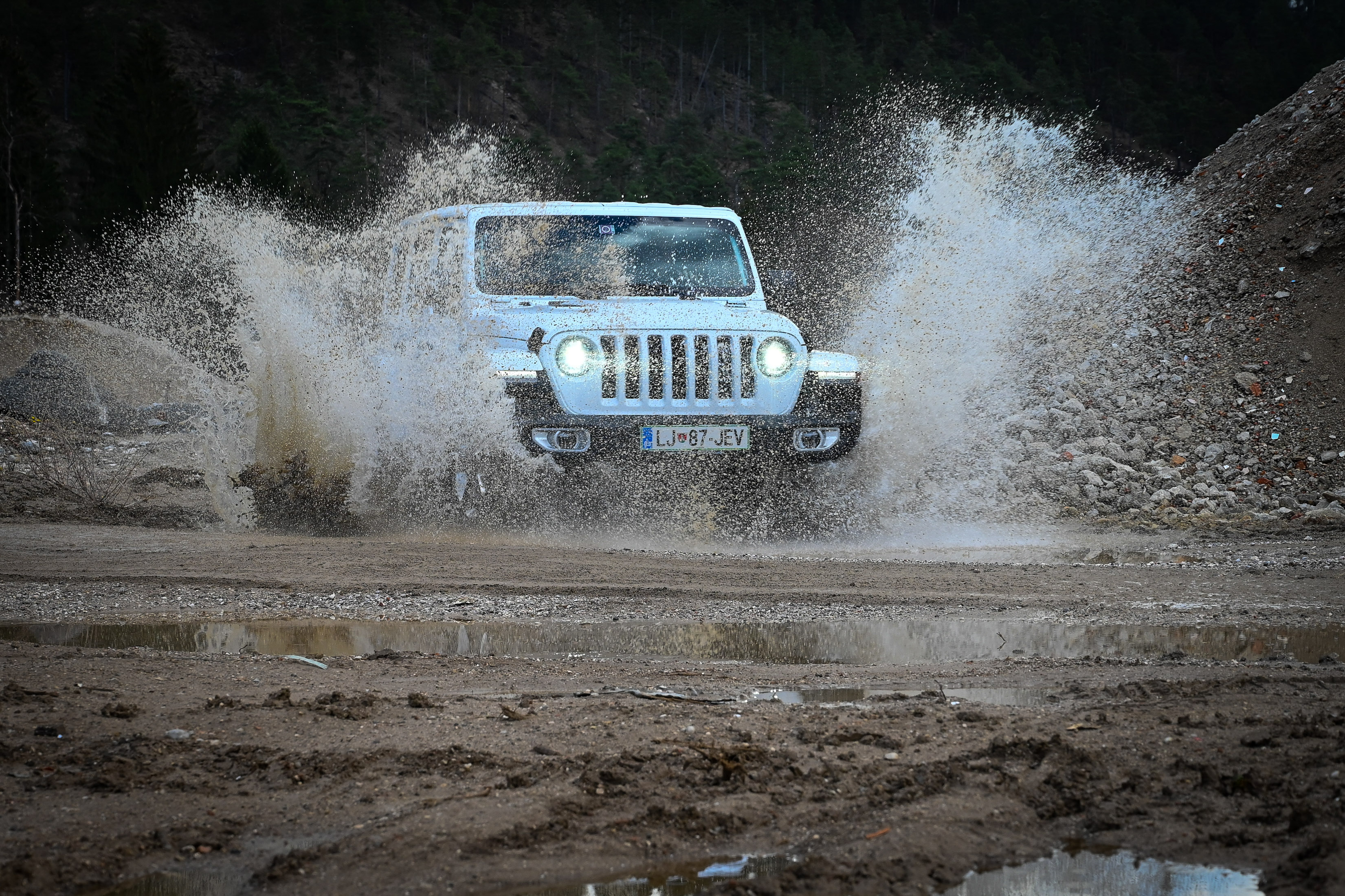 V gramoznici v Lescah smo z novo generacijo Jeepove ikone wranglerjem tudi mi preizkusili čare njegovega pravega življenjskega okolja in dobili odgovore, zakaj je ostal edini terenec, ki še vztraja s togo premo na prednjih kolesih. Kljub dejstvu, da je wrangler na asfaltu veliko bolj uglajen, kot je bil, to še vedno ostaja avto za prave terenske podvige. Dve ročici med prednjima sedežema dajeta vedeti, da lahko računaš na vselej pravi prenos navora na kolesa. Wrangler še vedno najbolj blesti, ko hitrost pade pod 40 km/h, ko se svet postavi pokonci in karoserija dobil okrasje zemeljskih barvnih tonov. Ko ročico njegovega priklopljivega in še vedno povsem mehanskega štirikolesnega pogona prestaviš v območje reduktorskega prenosa 4L, se začne prava avtomobilska svoboda. To je avto, za katerega je dovolj, da je pot le nakazana. Onstran asfalta zmore veliko in ob pravem vozniškem znanju z njim zlepa ne boste obtičali. Brede lahko po več kot 70 centimetrov globoki vodi, z veliko oddaljenostjo od tal (serijsko 27,7 cm) je zmožen prestopati korenine in se s hitrostjo od 3 do 5 km/h plaziti preko kamenja. Z inštruktorjem Janezom Maroltom sva v gramoznici z wranglerjem premagala nekaj zares strmih terenov, kjer je do izraza prišla tudi njegova karoserija s kolesi, postavljenimi na skrajne robove.