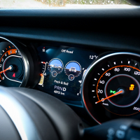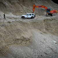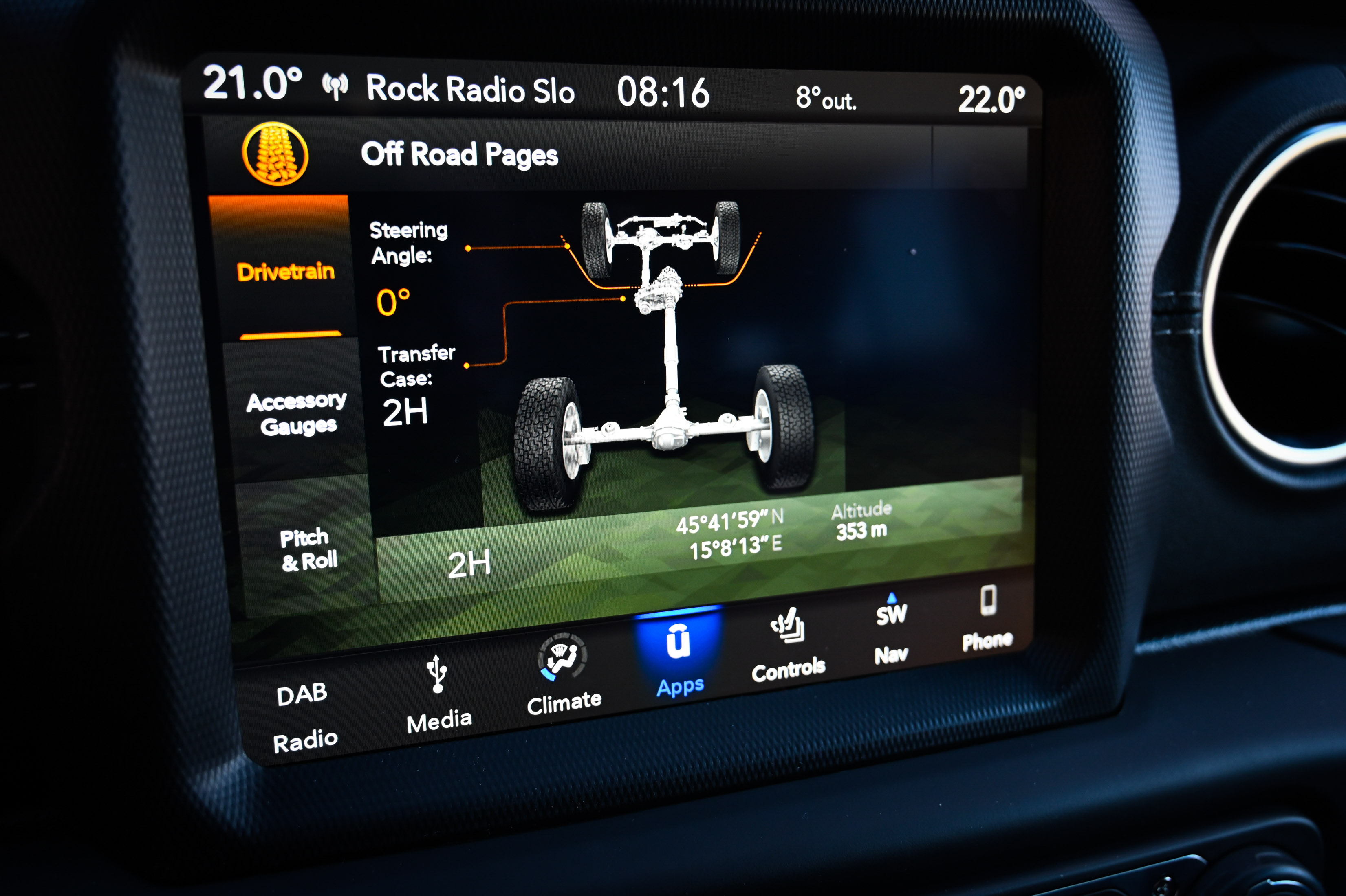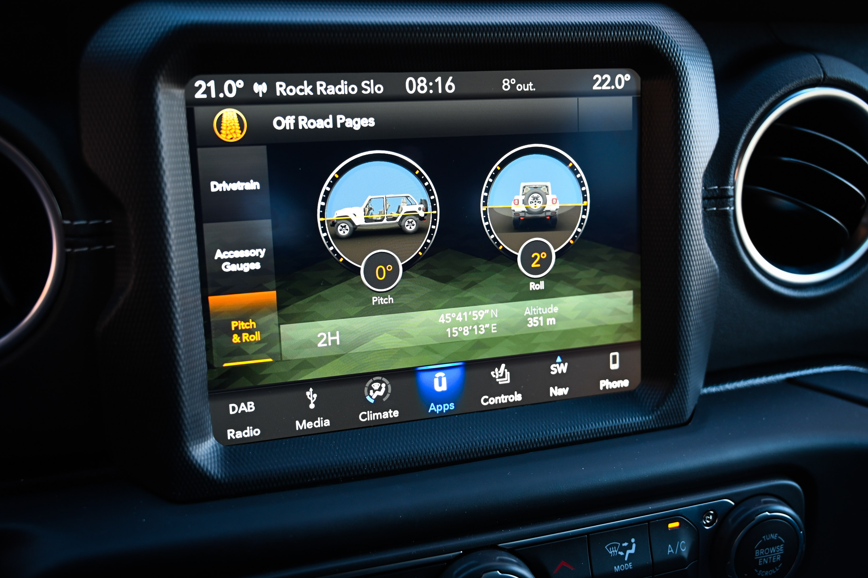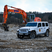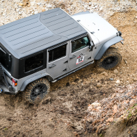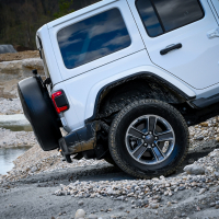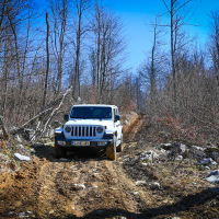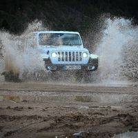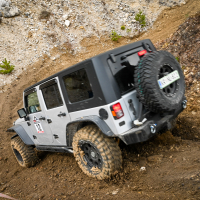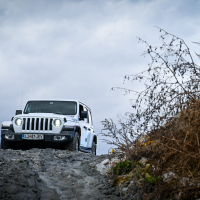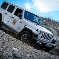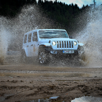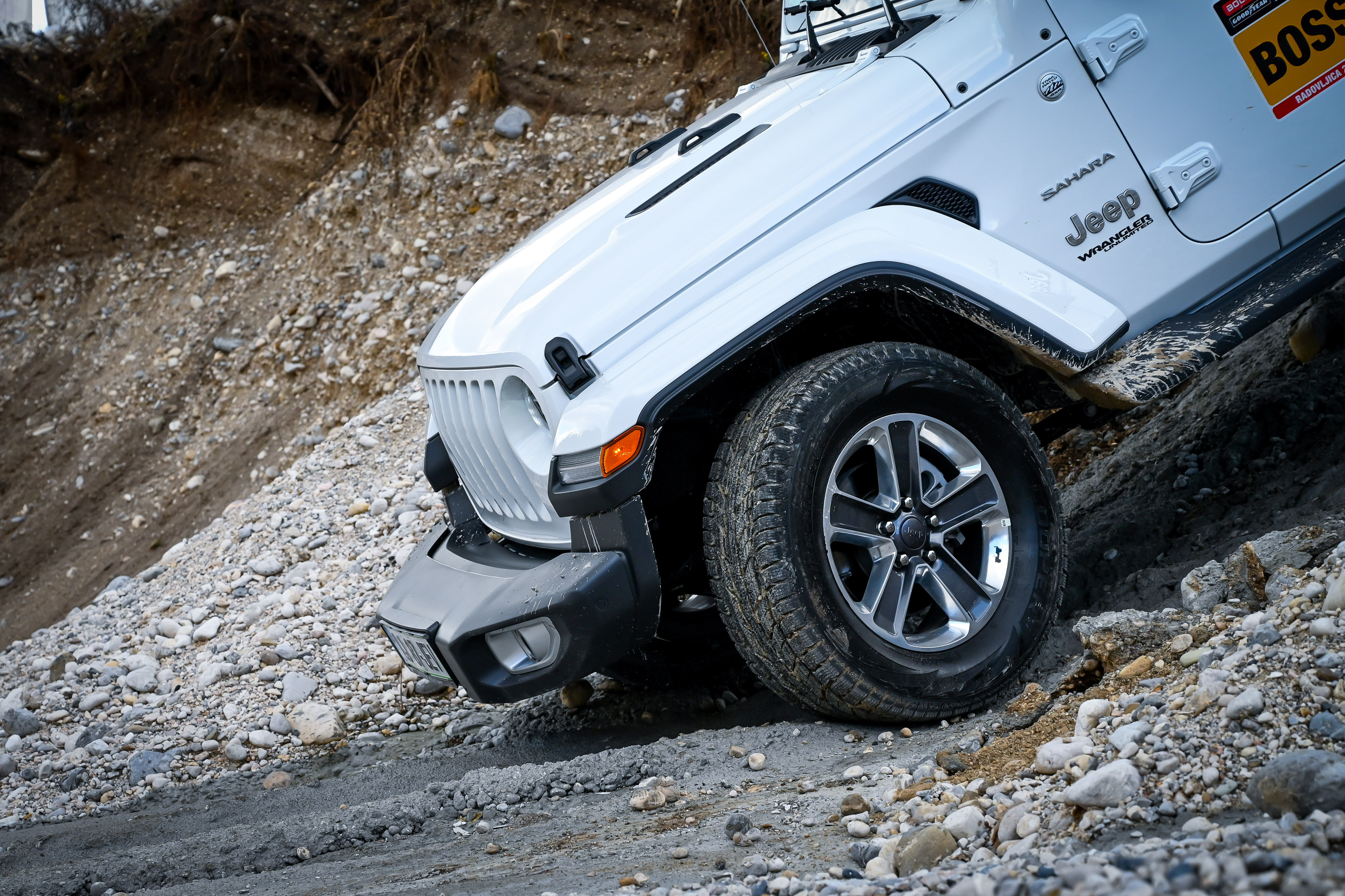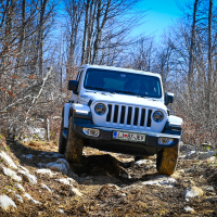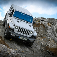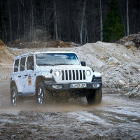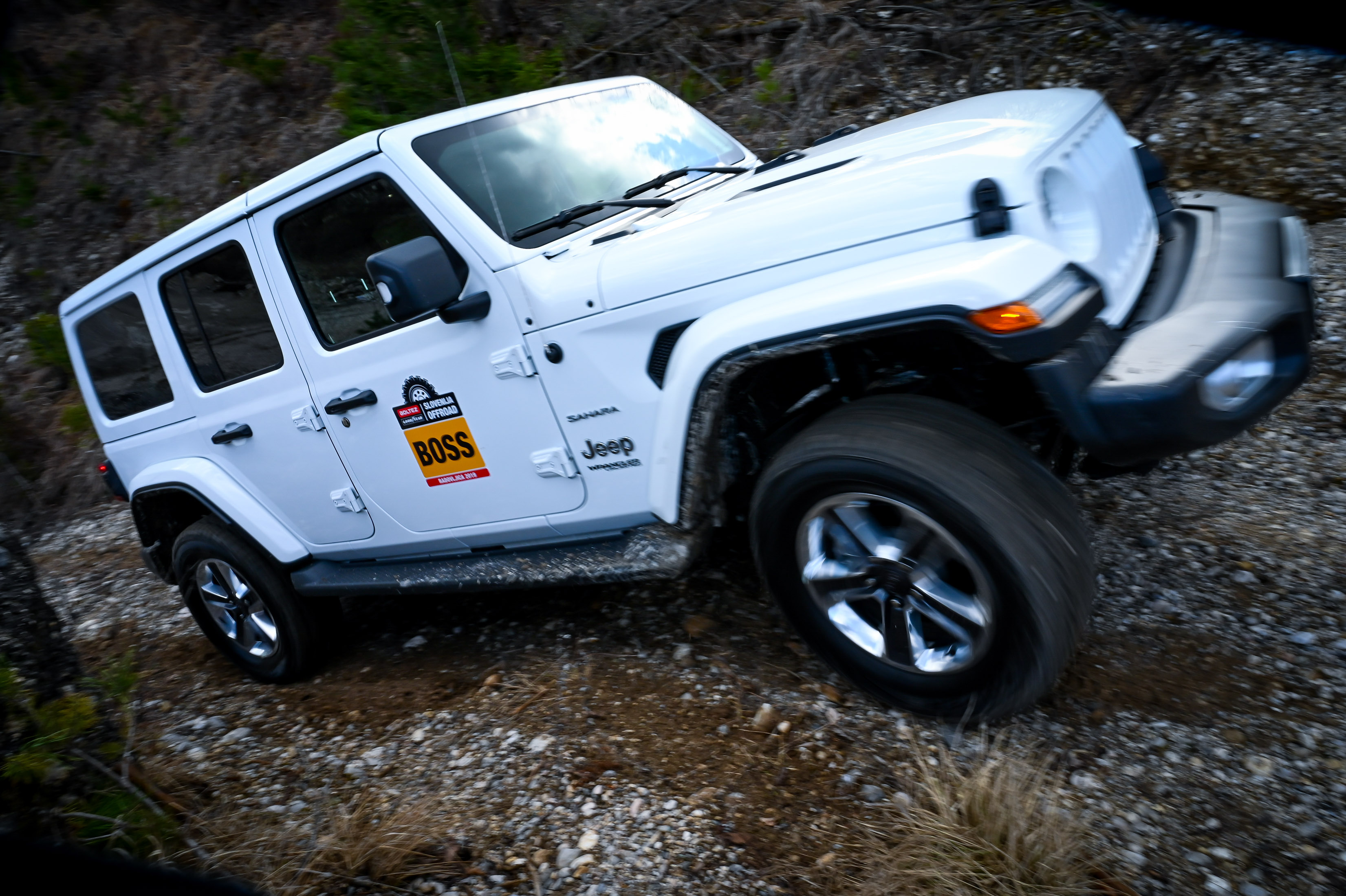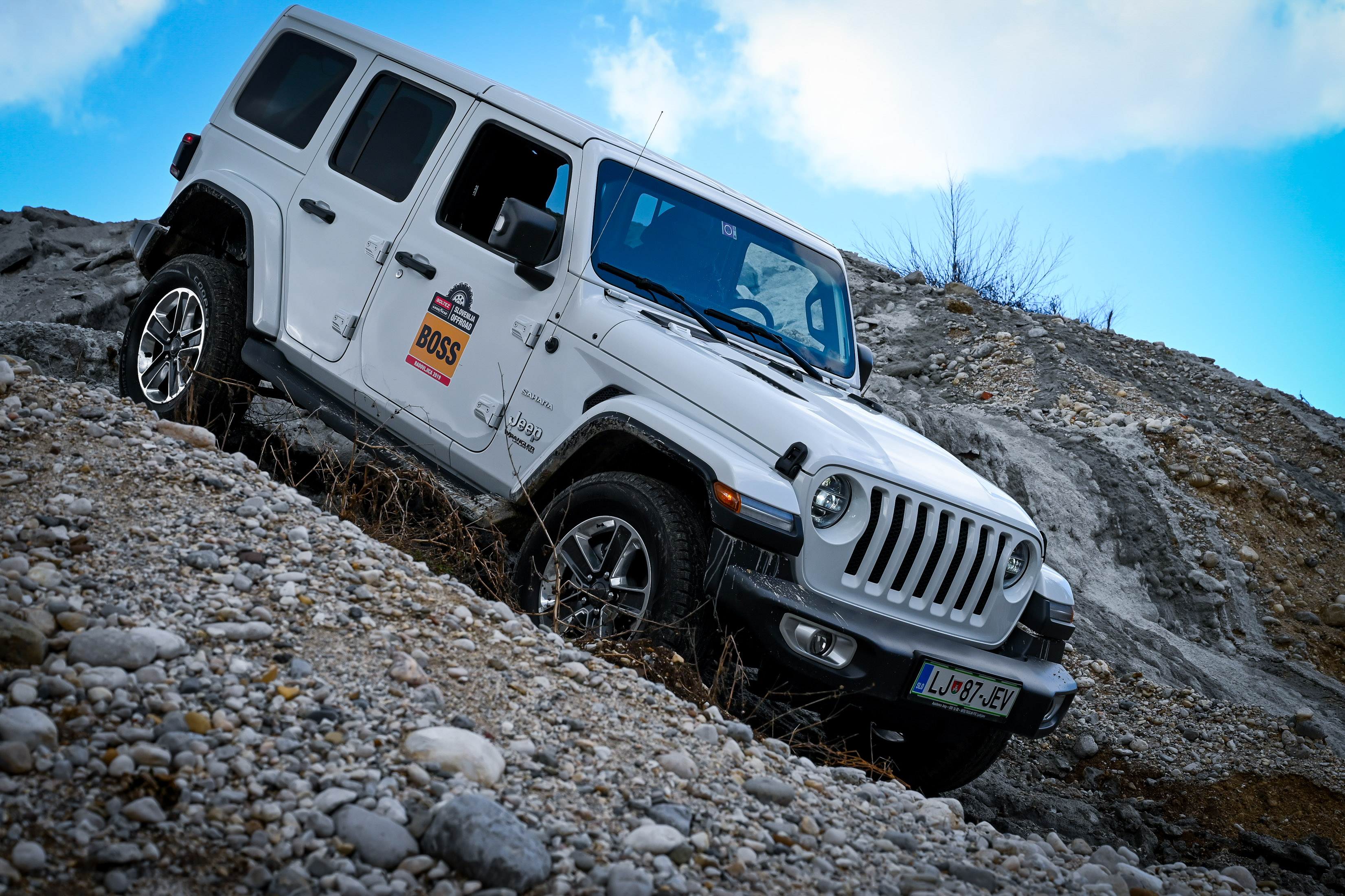V gramoznici v Lescah smo z novo generacijo Jeepove ikone wranglerjem tudi mi preizkusili čare njegovega pravega življenjskega okolja in dobili odgovore, zakaj je ostal edini terenec, ki še vztraja s togo premo na prednjih kolesih. Kljub dejstvu, da je wrangler na asfaltu veliko bolj uglajen, kot je bil, to še vedno ostaja avto za prave terenske podvige. Dve ročici med prednjima sedežema dajeta vedeti, da lahko računaš na vselej pravi prenos navora na kolesa. Wrangler še vedno najbolj blesti, ko hitrost pade pod 40 km/h, ko se svet postavi pokonci in karoserija dobil okrasje zemeljskih barvnih tonov. Ko ročico njegovega priklopljivega in še vedno povsem mehanskega štirikolesnega pogona prestaviš v območje reduktorskega prenosa 4L, se začne prava avtomobilska svoboda. To je avto, za katerega je dovolj, da je pot le nakazana. Onstran asfalta zmore veliko in ob pravem vozniškem znanju z njim zlepa ne boste obtičali. Brede lahko po več kot 70 centimetrov globoki vodi, z veliko oddaljenostjo od tal (serijsko 27,7 cm) je zmožen prestopati korenine in se s hitrostjo od 3 do 5 km/h plaziti preko kamenja. Z inštruktorjem Janezom Maroltom sva v gramoznici z wranglerjem premagala nekaj zares strmih terenov, kjer je do izraza prišla tudi njegova karoserija s kolesi, postavljenimi na skrajne robove.