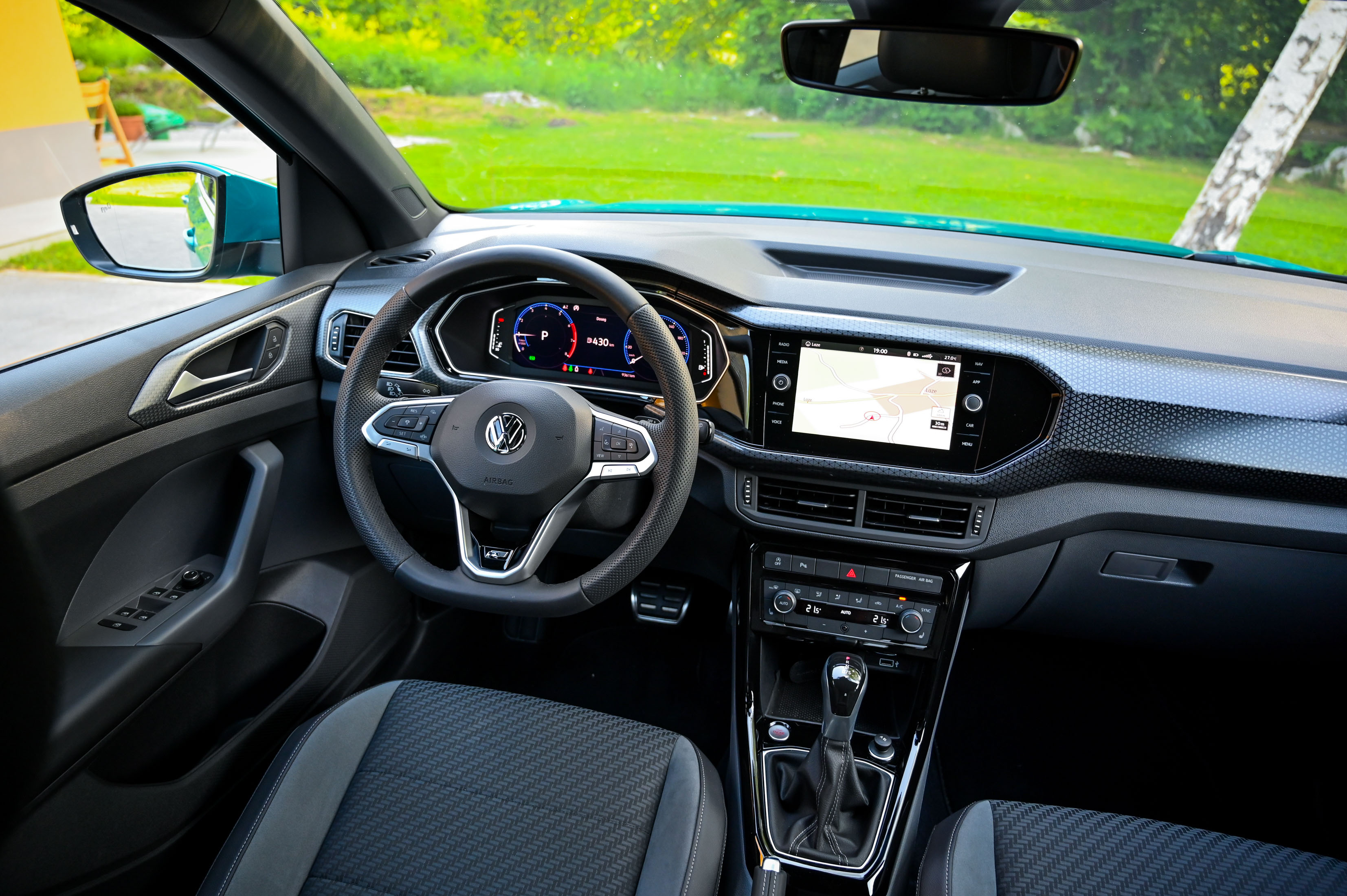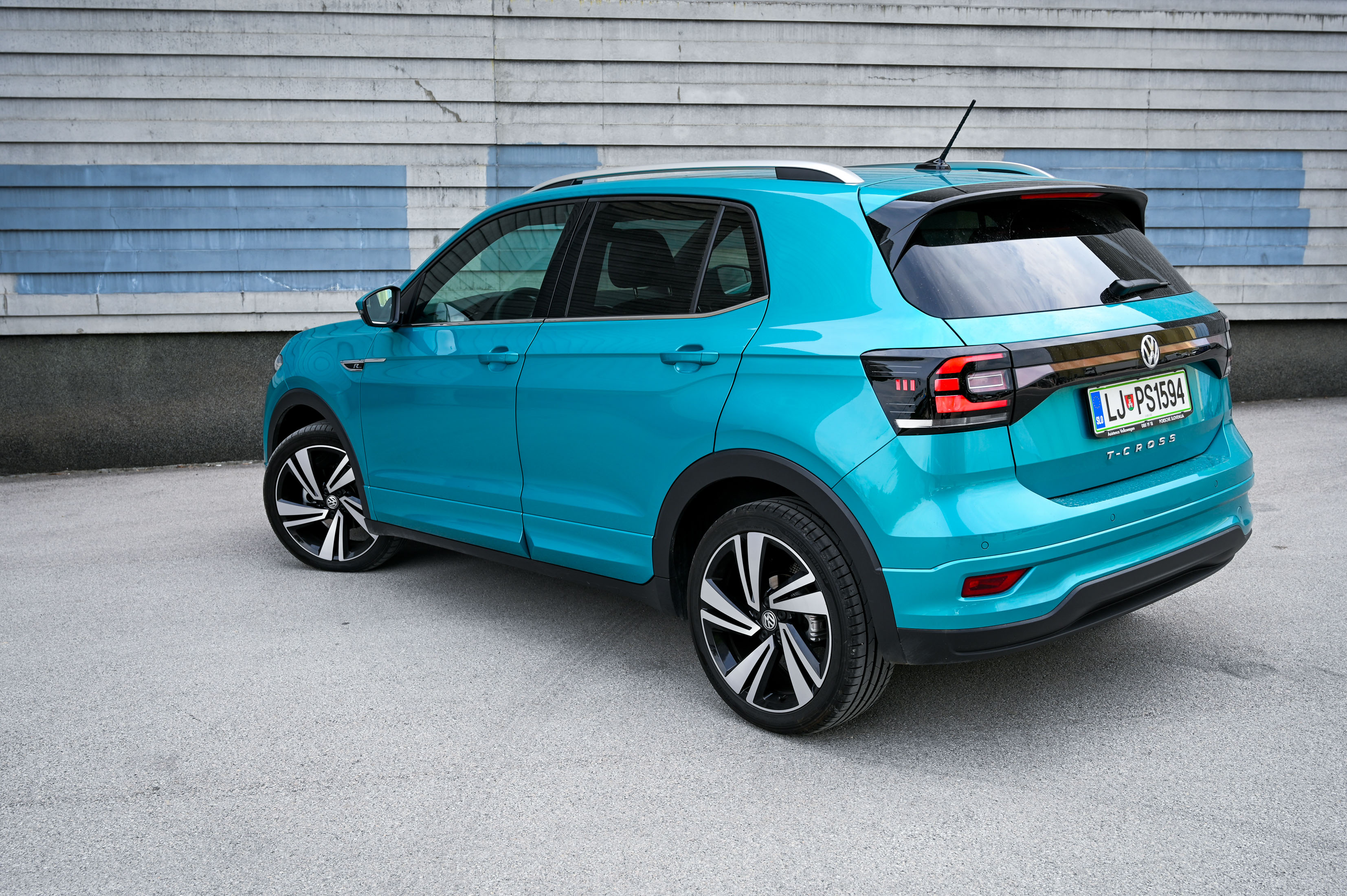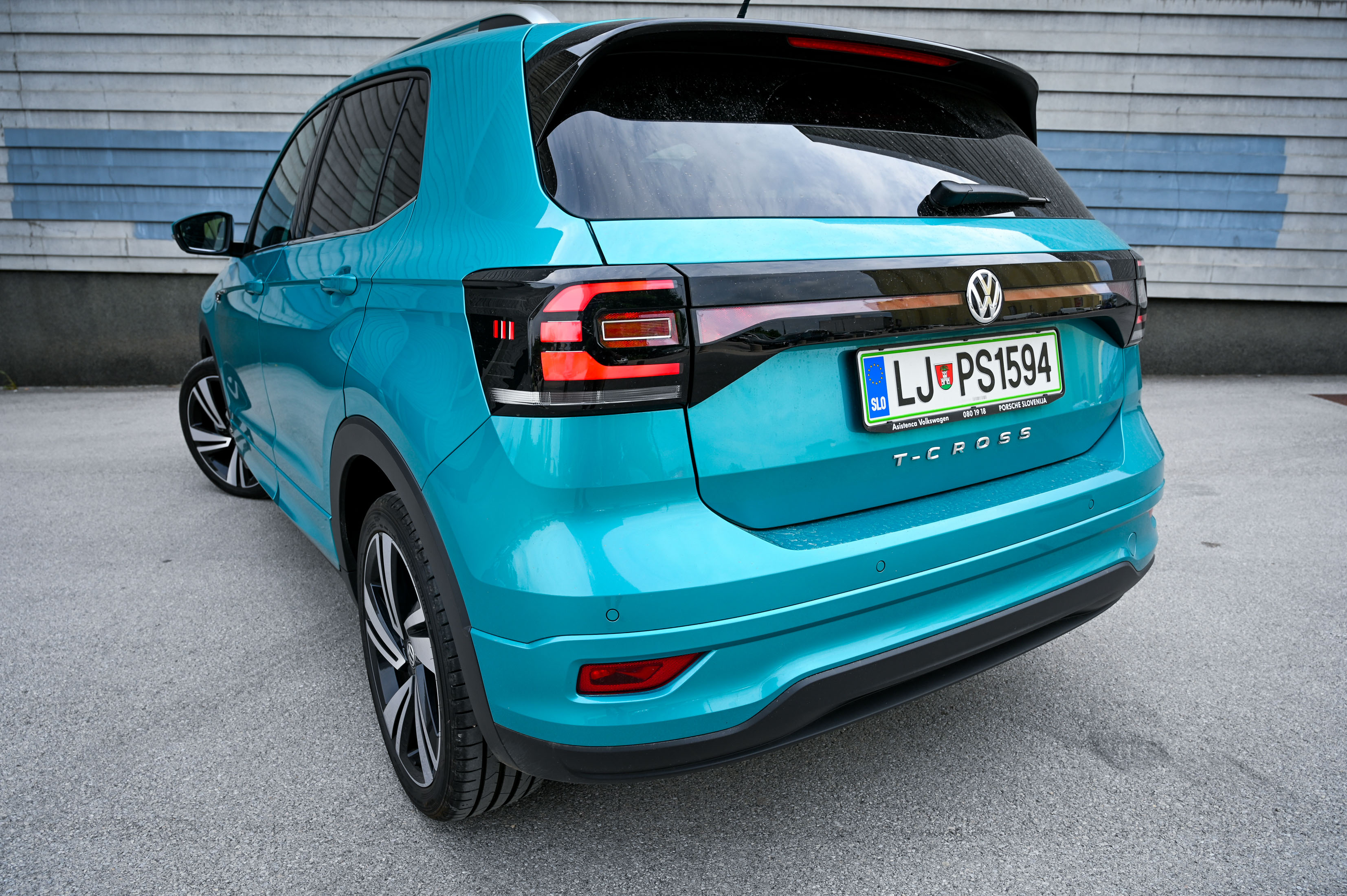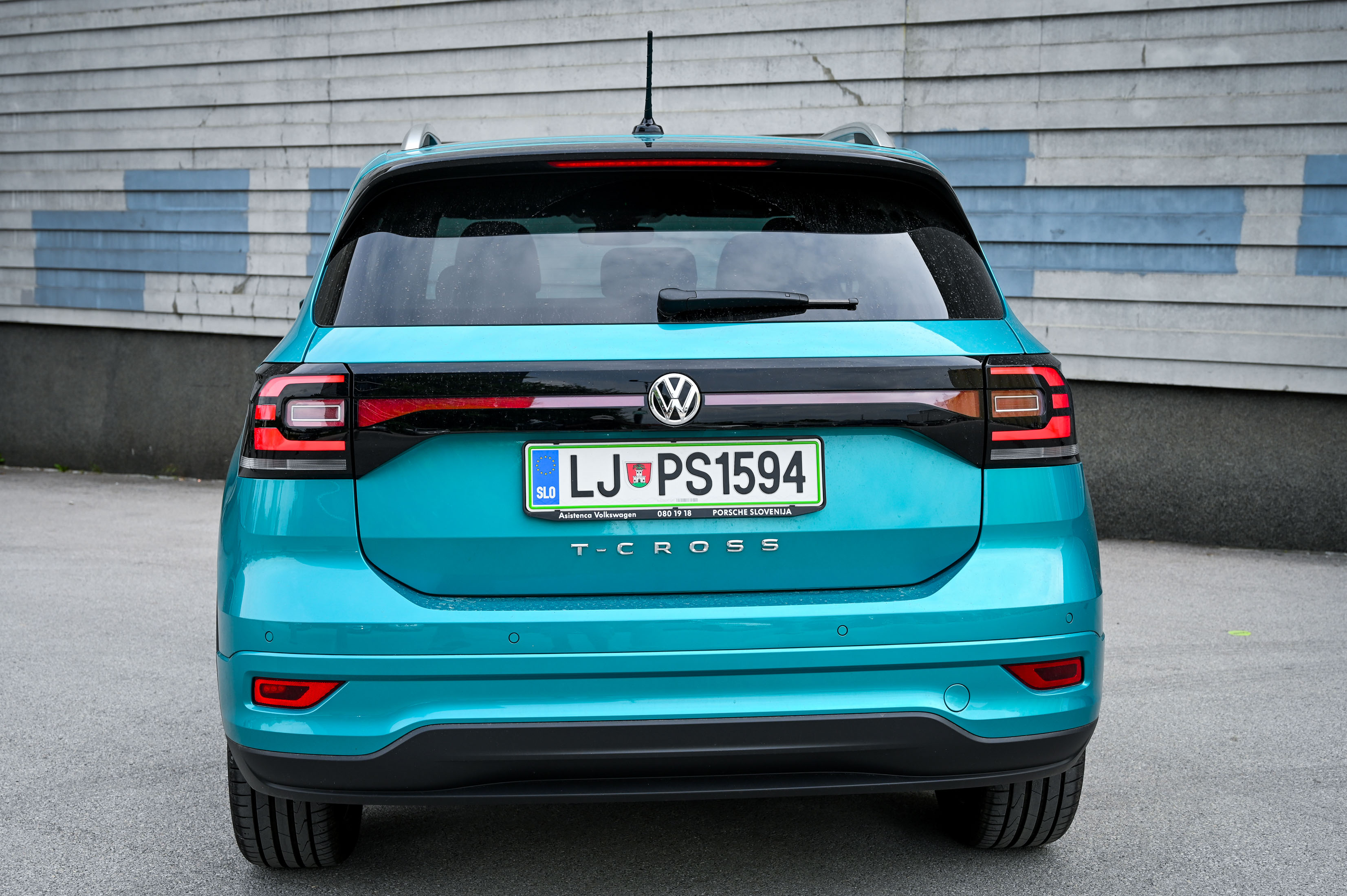 Pragmatični T-cross v razred kompaktnih križancev prinaša predvsem izpiljeno vozno in prostorsko izkušnjo. Je temeljit izdelek, ki ne napoveduje trendov, jih pa naredi uporabne. Zato s podobo ljudi ne pušča odprtih ust, čeprav je v turkizni barvi (za dodatnih 578 evrov) videti prav simpatičen. Čeprav stoji na enaki osnovi kot polo, so oblikovalci temeljito izkoristili škatlasto obliko s strmo prisekanim zadkom in z na rob karoserije postavljenimi kolesi. T-cross navduši s prilagodljivo in prostorno kabino ter velikim in globokim prtljažnikom. Prtljažnik je zaradi 14-centimetrskega vzdolžnega pomika zadnje klopi celo za 10 litrov večji kot v 12 centimetrov daljšem T-rocu. Prostora na zadnji klopi je nadpovprečno veliko za kolena in nad glavami: odrasel 180 cm visok potnik sedi brez težav, ko je zadnja klop pomaknjena povsem nazaj. T-cross je odlično pregleden, sedežni položaj voznika je dobro nastavljiv, vstopanje v avto in izstopanje iz njega pa udobno, saj je T-cross kar 13,8 centimetra višji od pola, potniki pa sedijo 10 cm višje.