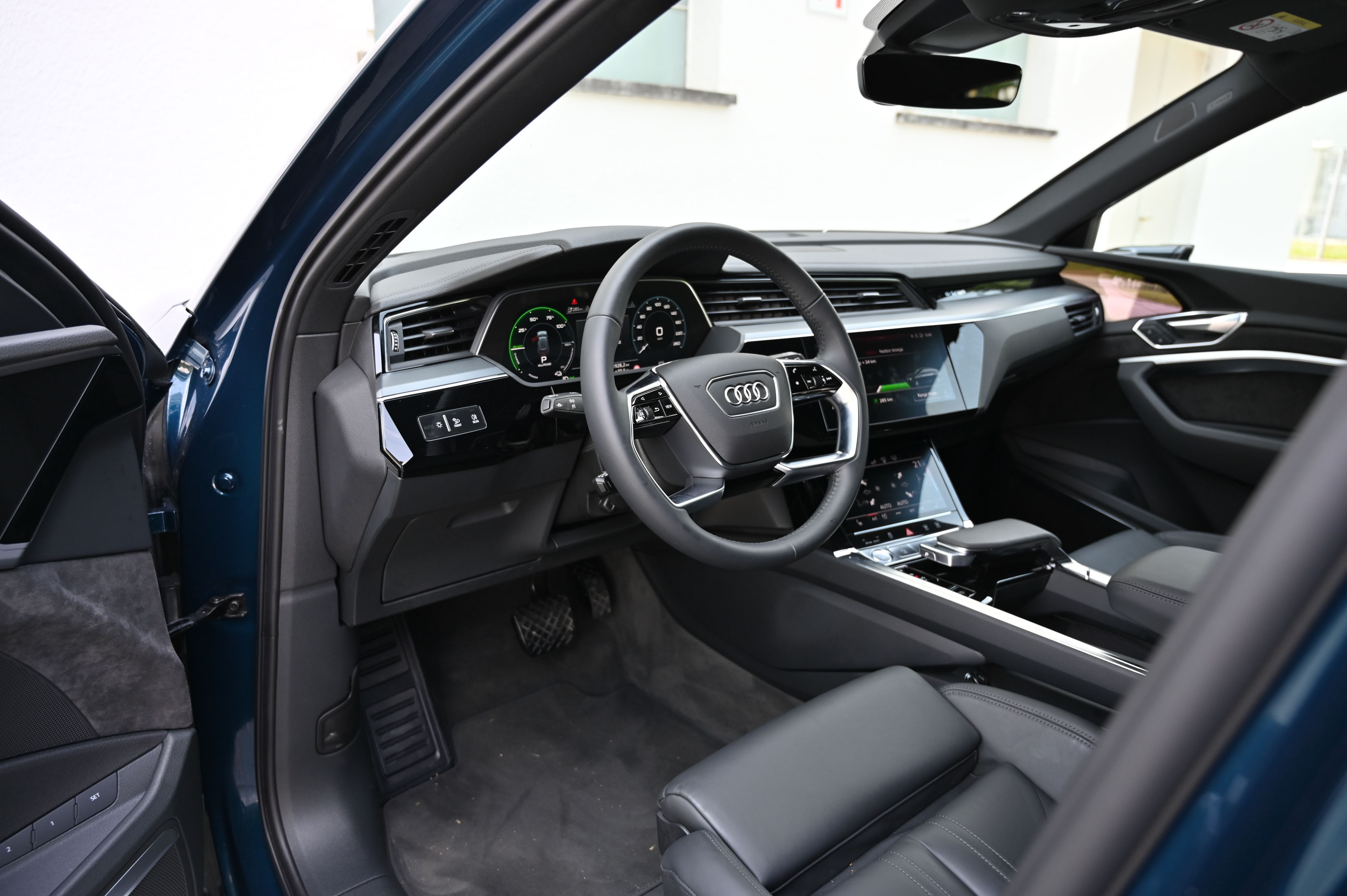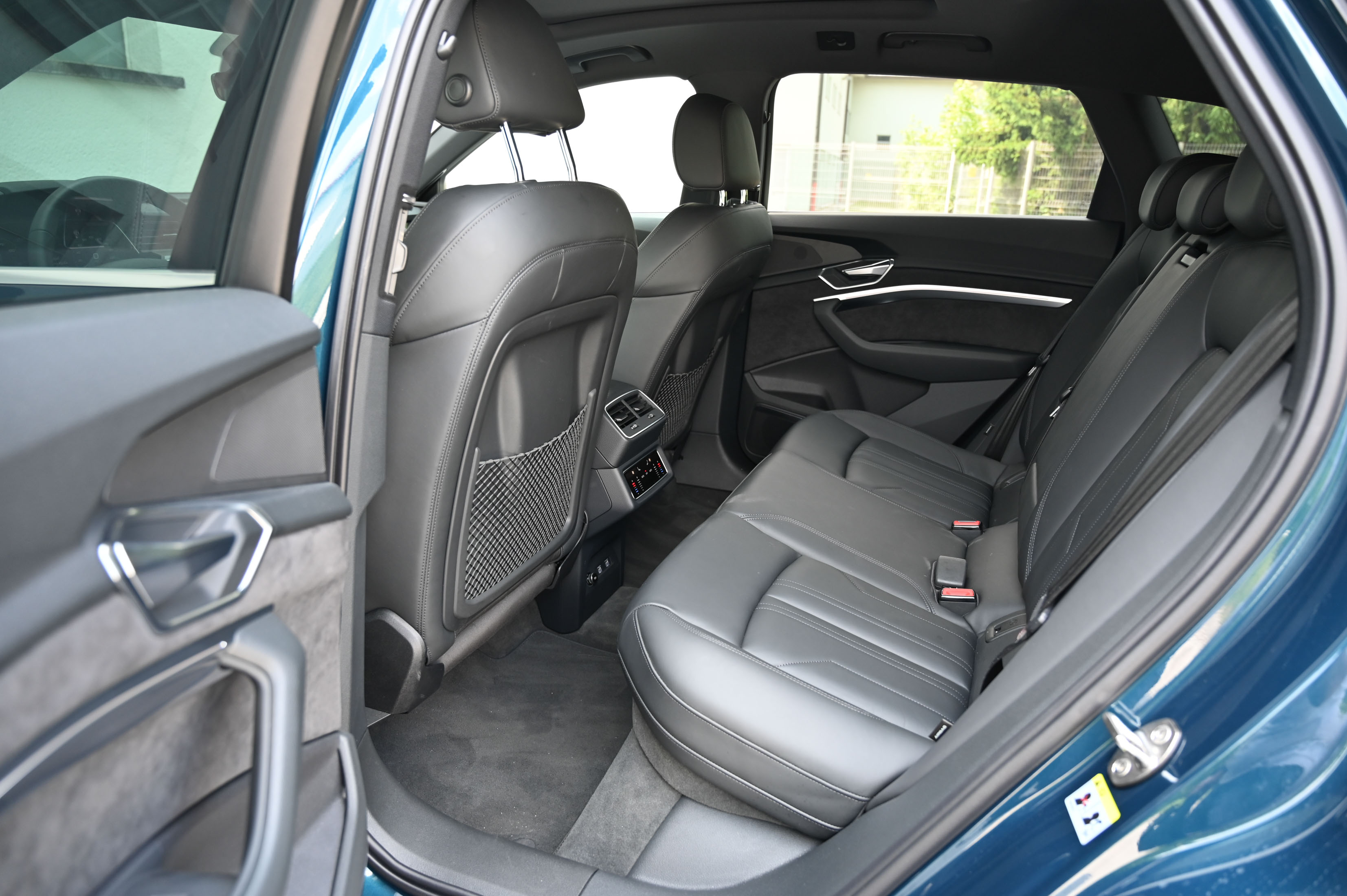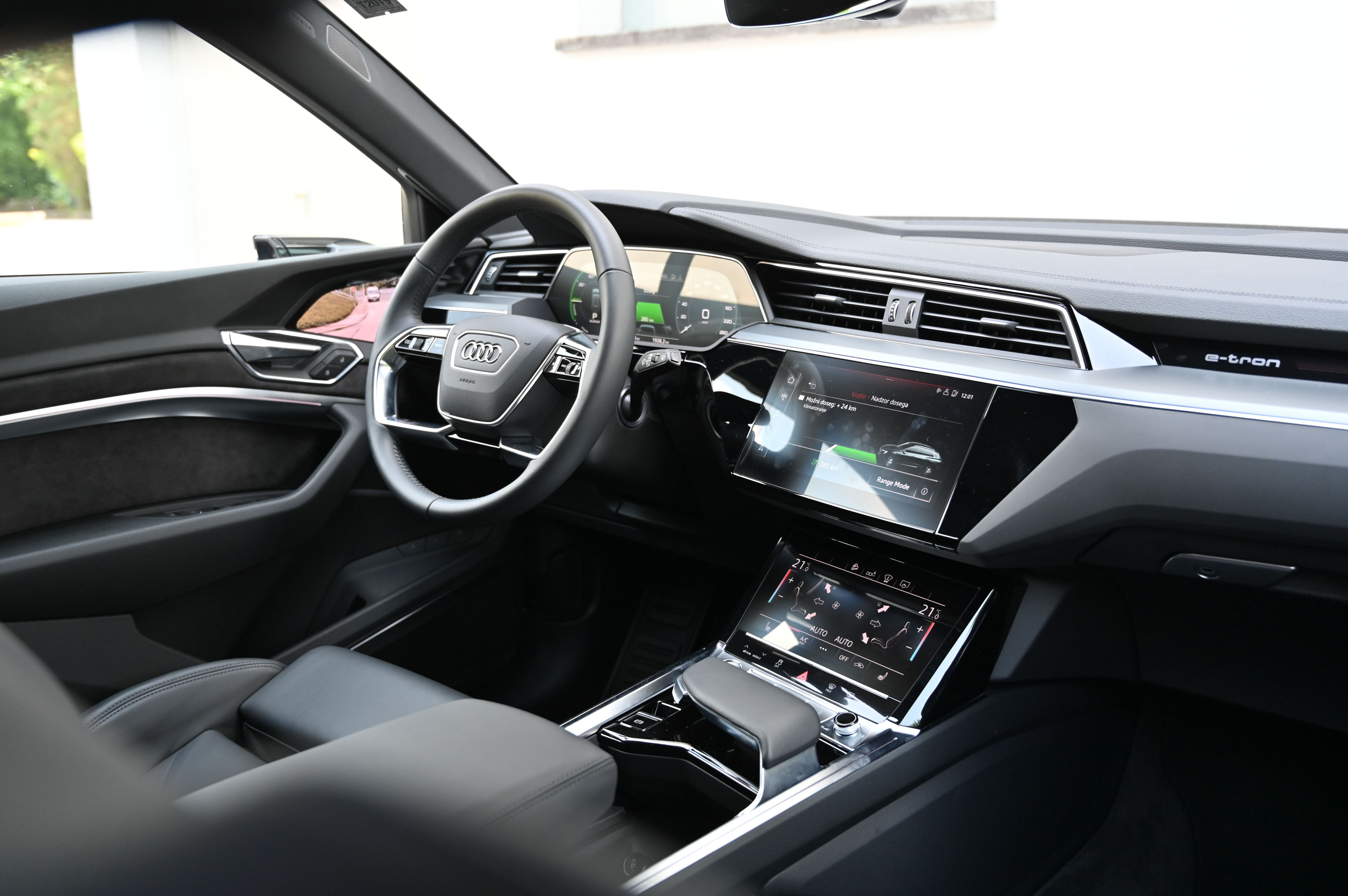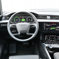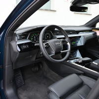 Audi e-tron združuje modno obliko cestnega terenca s kupejevsko prisekanim zadkom in električni pogon. Avto deluje samozavestno - tudi zaradi kar 21 palčnih koles - in s 4,9 metra dolžine tudi impozantno, a v potniški kabini ponuja dovolj prostora le štirim potnikom, kajti potnik na sredini zadnje klopi nima kam z nogama.