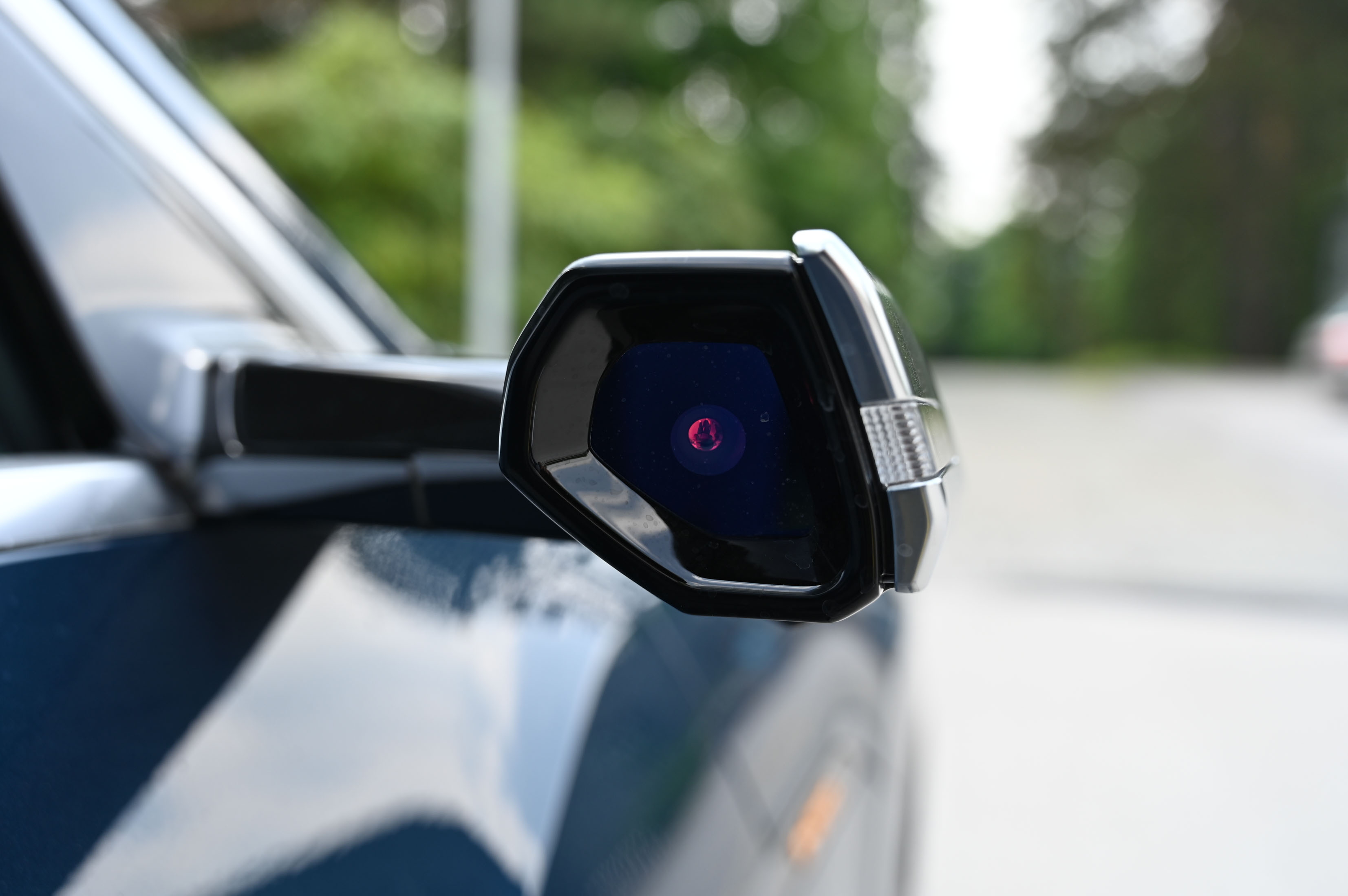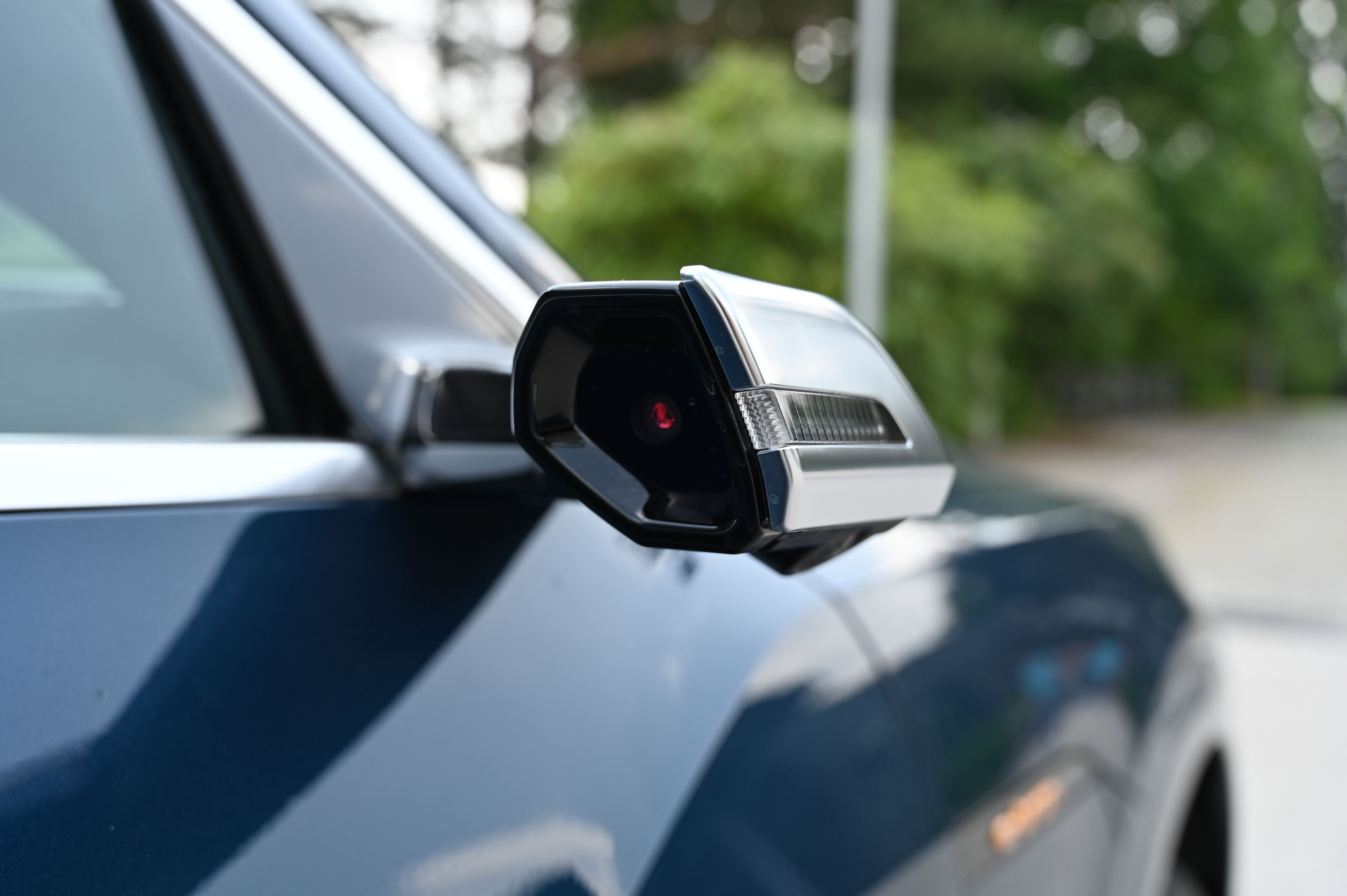 K futuristični podobi avta pripomoreta virtualni zunanji ogledali (kameri) s prikazom slike na zaslonih na oblogah vrat. A ta rešitev ni uporabna, ker je treba vedno pogledati stran in navzdol, predvsem pa slika na zaslonu ni enako uporabna kot na ogledalu: težko je določiti razdaljo in hitrost vozila na dvodimeznionalni sliki, zelo težko je tudi natančno parkirati. In še nasprotje: zaradi pomoči projecirnega zaslona (head up) naj voznik ne bi odmaknil pogleda s ceste, mora pa pogledati stran in navzdol na zaslon, če želi ugotoviti, kaj se dogaja ob avtu.