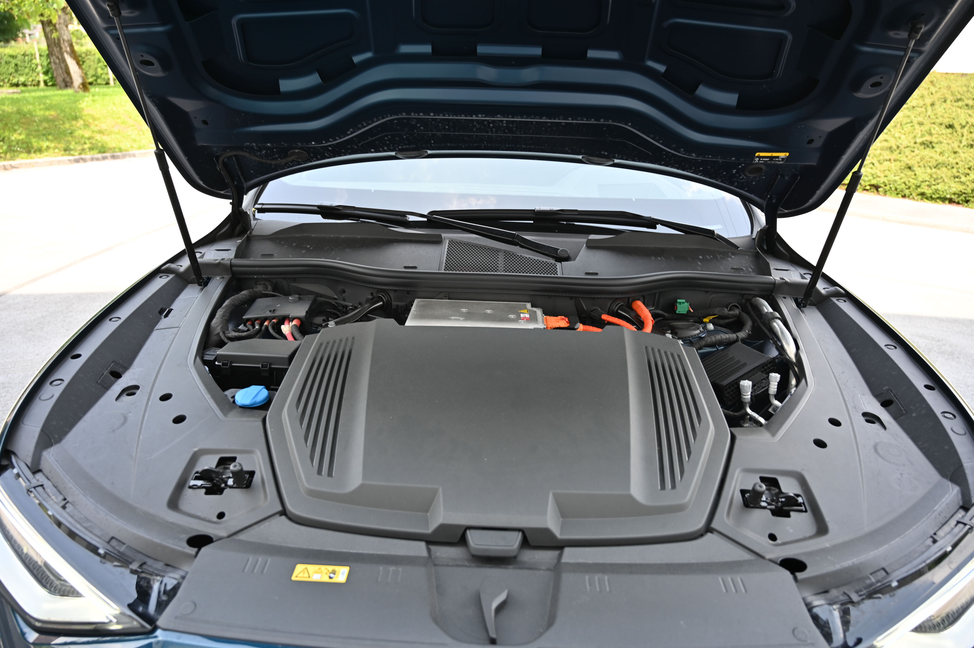 | MOTOR IN PRENOS MOČI: | 2 električna asinhrona motorja, motor spredaj 125 kW, motor zadaj 140 kW, skupna moč: 265 kW (360 KM), navor 561 Nm. Stalni štirikolesni pogon, samodejni enostopenjski menjalnik. |