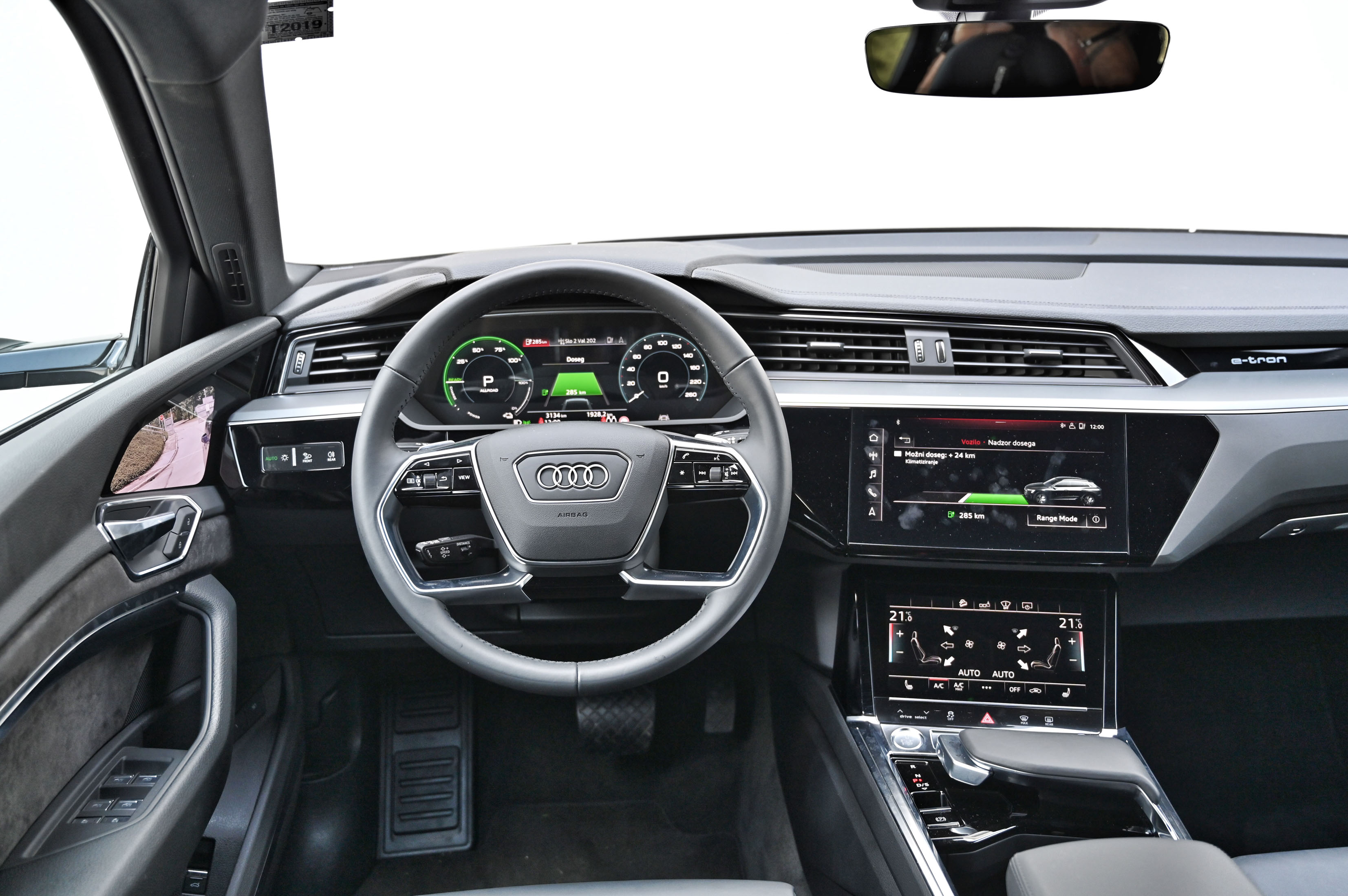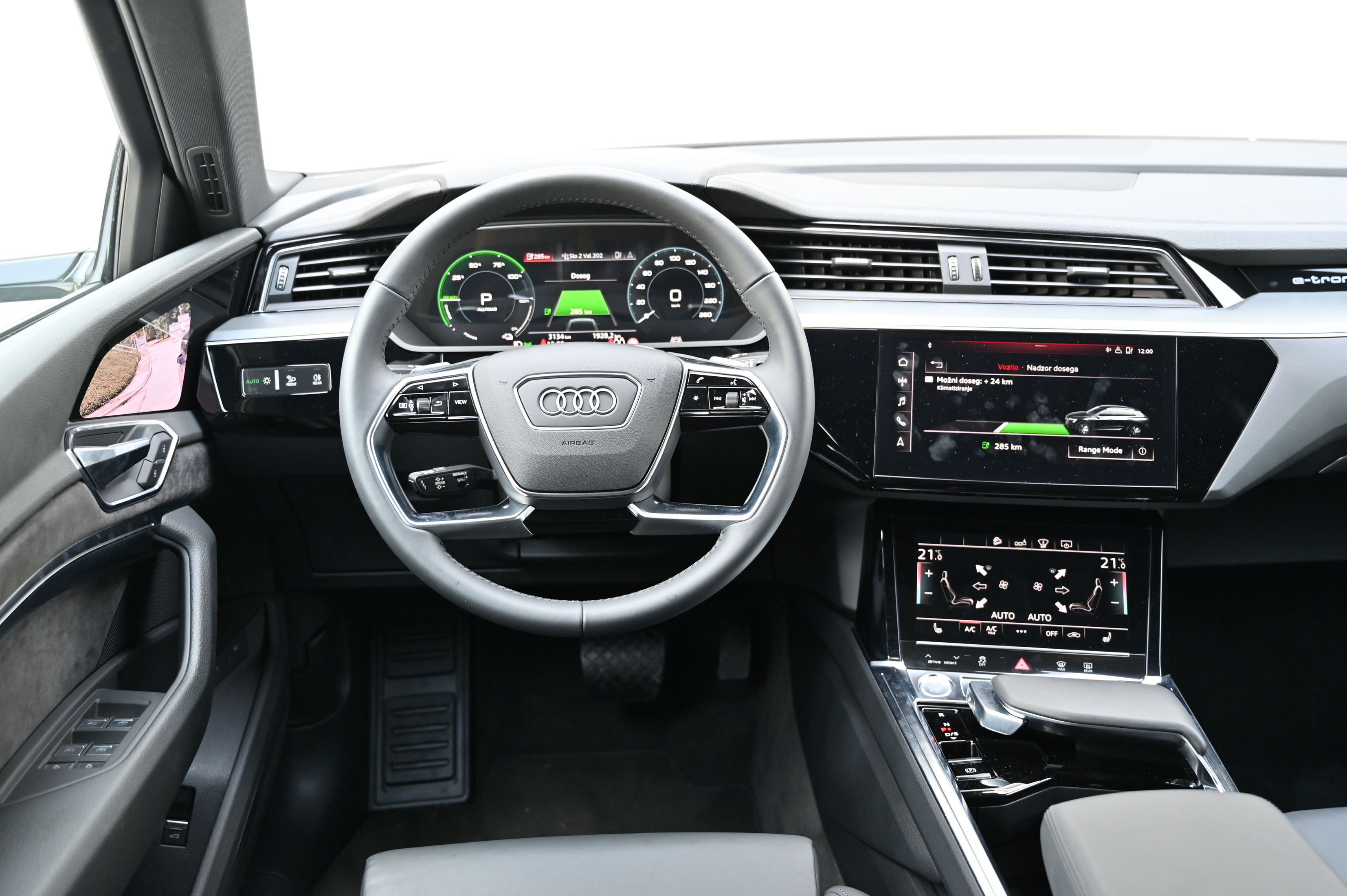 Voznikovo delovno okolje je zelo podobno kot v drugih audijih, izstopa le številčnost digitalnih zaslonov, saj je klasičnih gumbov le za vzorec. Prtljažni prostor je na papirju prostoren, a ima zelo visoko postavljeno dno - 82 cm od tal - in skromno višino.