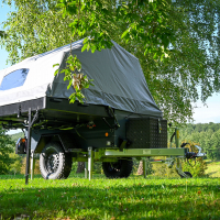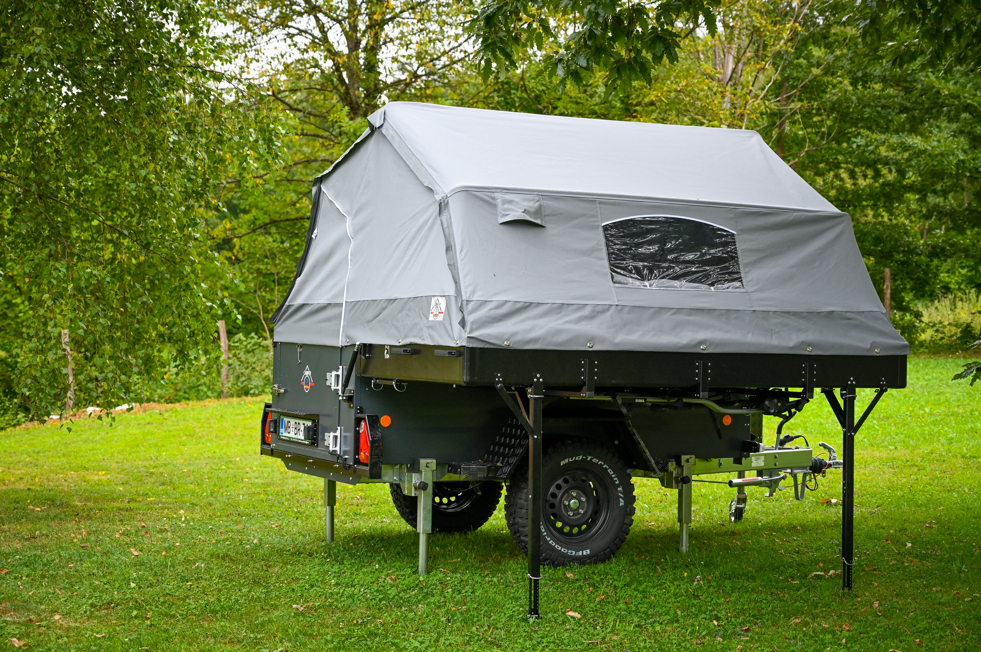 Terenska zasnova prikolice je primerna tudi za daljša ekspedicijska potovanja predvsem zaradi velike transportne prostornine in močnih kovinskih nosilcev na pokrovu prikolice, ki v bivalnem delu služi kot dno mansardne postelje. Na pokrovu sta lahko nameščena prtljažnik za prevoz koles ali dodatni transportni boks. Kljub zelo močni zasnovi prikolica s šotorom tehta 505 kilogramov, vanjo in nanjo pa je mogoče spraviti še za skoraj pol tone opreme. Preizkusili smo predserijski izdelek: kritiko si zasluži le prezračevanje šotora, saj se stranska okna lahko le senčijo, ne pa tudi odprejo. Prikolica bo od jeseni na voljo kupcem, cena pa naj bi se začela pri sedmih evrskih tisočakih (6990 EUR) .