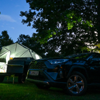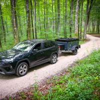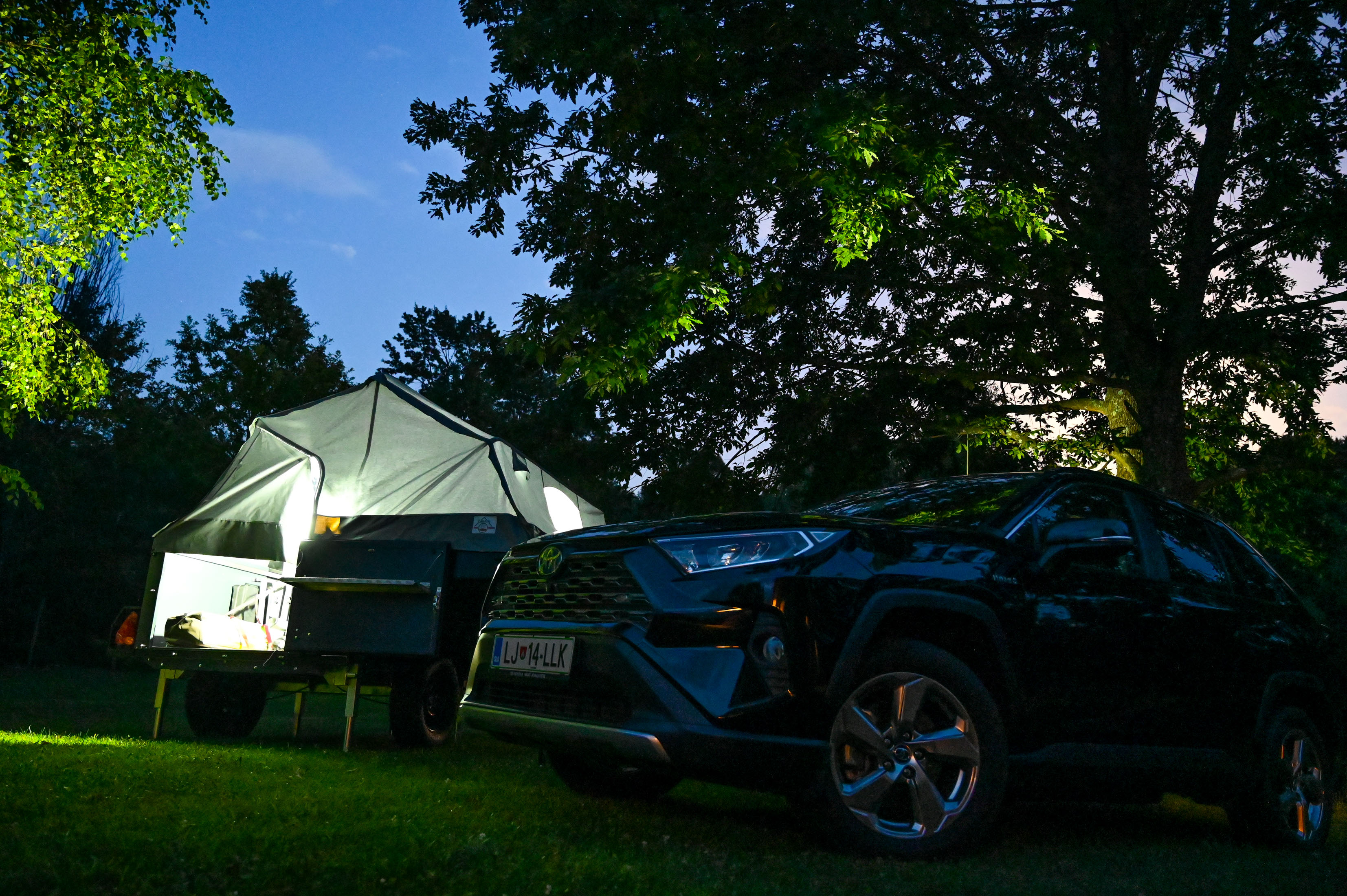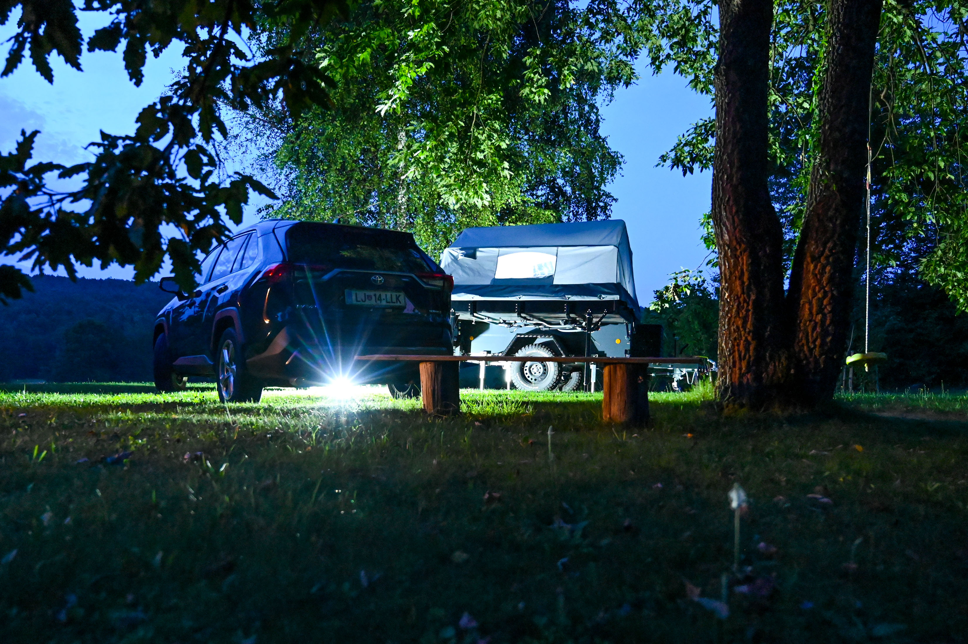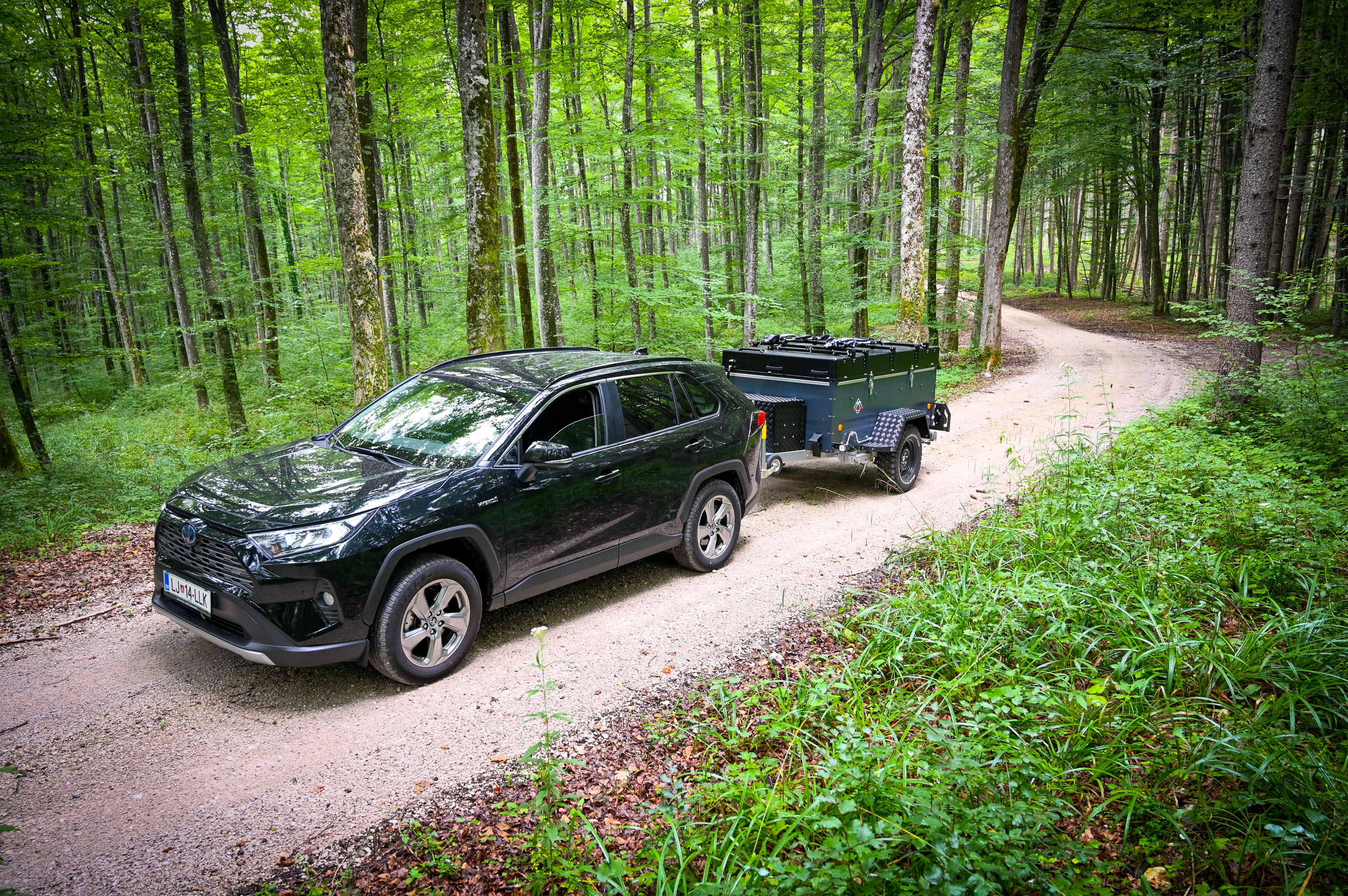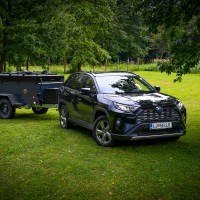 Poletje je čas potovanj in aktivnega preživljanja prostega časa. Toyotin hibridni cestni terenec nam je zato moral dokazati, da nudi dovolj udobja in prostora na dolgih poteh in da njegov hibridni pogon zmore za seboj vleči počitniški priklopnik - šotor na robustni terenski prikolici z veliko prostora za opremo.