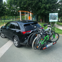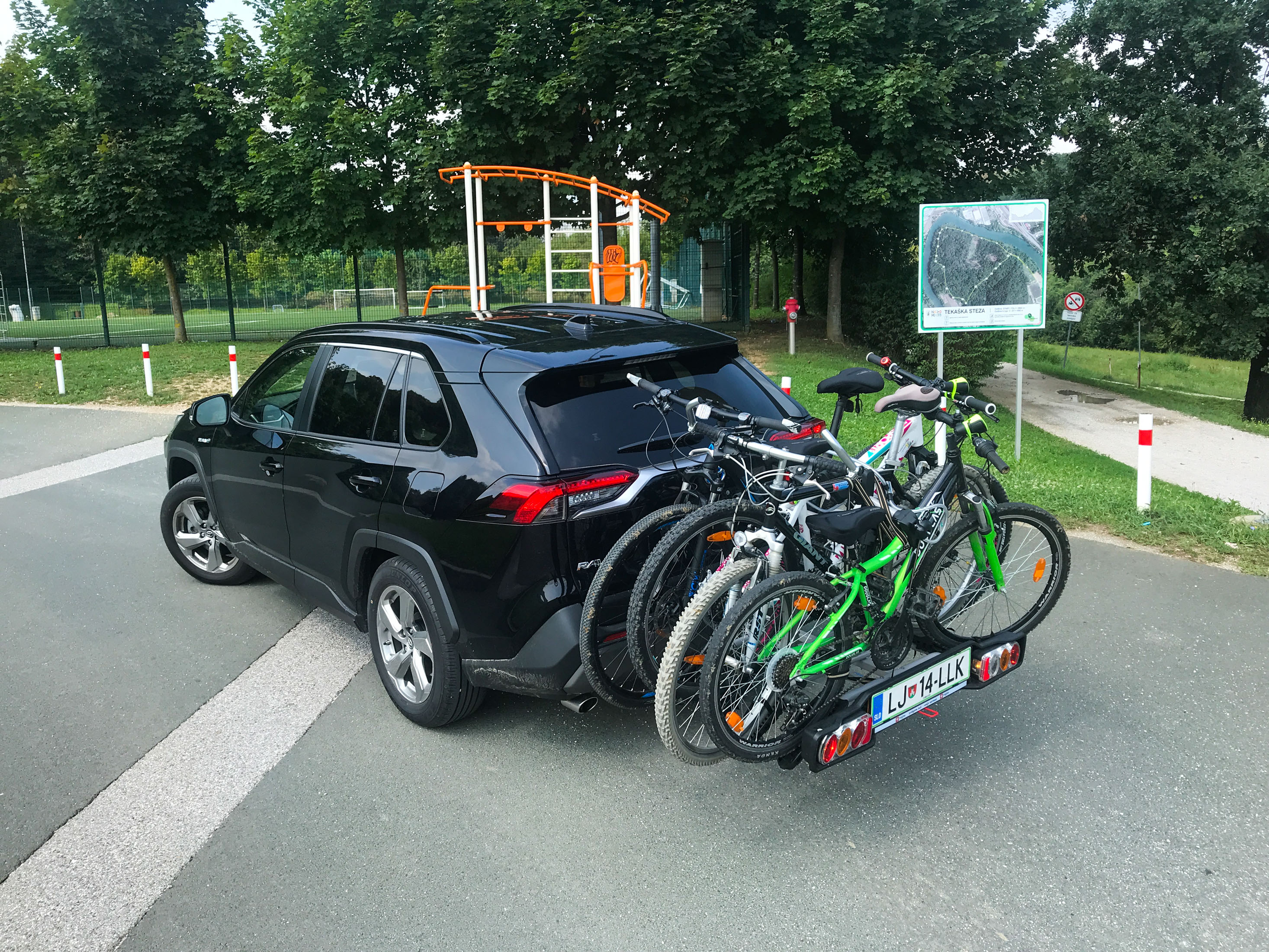 Vlečna kljuka na hibridnemu cestnemu terencu je dobrodošla novost tudi zaradi kolesarske logistike. Težko električno kolo je precej lažje namestiti na prtljažnik na vlečni kljuki kot pa ga dvigniti na streho skoraj 1,7 metra visokega avtomobila.