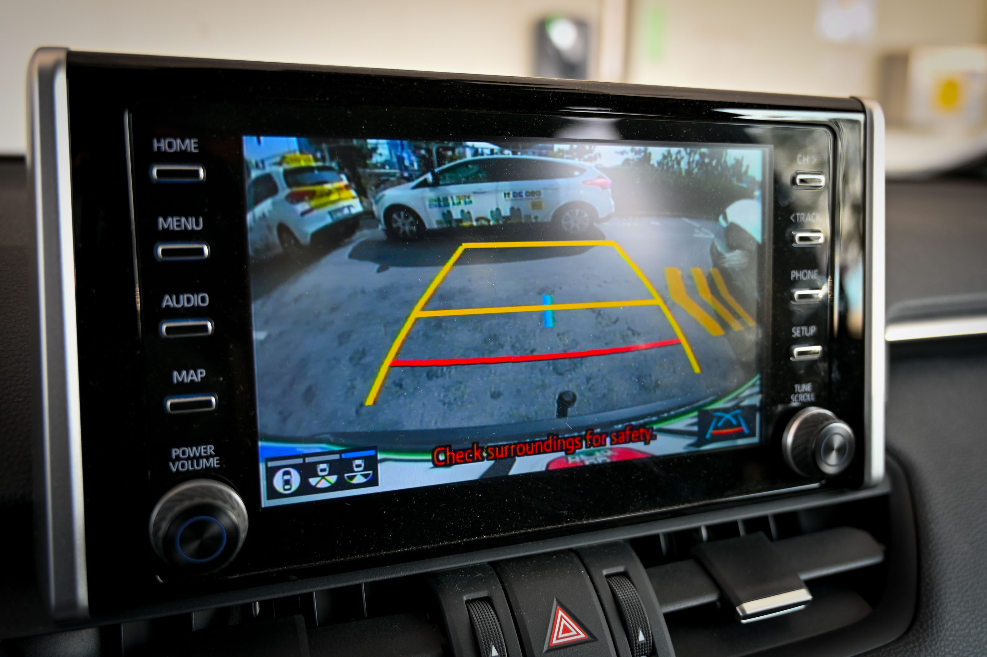 Nam je pa RAV4 že nekajkrat izdatno pomagal varneje voziti v mestu. Zaradi ne ravno najbolj kakovostne sliki vzvratne kamere, ki bi bila lahko bolj ločljiva in z boljšo sliko v temi, lahko voznik pri vzvratnem zapuščanju parkirišča v mestu hitro spregleda kolesarja, pešca in tudi avtomobil. Sploh, če v njem voznik hiti proti prostemu parkirišču, ki ga je zagledal v naslednji vrsti. Precej bolj prepričljiv kot slika “živega prenosa” dogajanja izza zadnjega odbijača je sistem za prečni nadzor prometa. Ta z zvočnim signalom, utripajočimi puščicami na osrednjem zaslonu in opozorilom v bočnem vzvratnem ogledalu voznika jasno opozori, iz katerem smeri preti nevarnost naleta. Odzivnost sistema je odlična, saj dovolj zgodaj opazi nevarnost, da ima voznik čas za učinkovito posredovanje. Zlasti pri pešcih in kolesarjih je sistem zelo učinkovit - gleda dlje in bolj ostro kot voznikovo oko ob pomoči kamere. Minus pa je, da RAV4 pri prečnem nadzoru prometa pri vzvratni vožnji zaenkrat še ne posreduje s samodejnim zaviranjem. Drugi očitek je dejstvo, da je pri avtomobilu za več kot 40 tisočakov še vedno treba doplačati 700 evrov za paket dodatkov z oznako “tech”: tega sestavljajo 4 kamere s 360-stopinjskim pogledom okolice vozila, sistem zaznavanja vozil v mrtvem kotu in sistem zaznavanja vozil v mrtvem kotu pri vzvratnem speljevanju s parkirnega prostora.