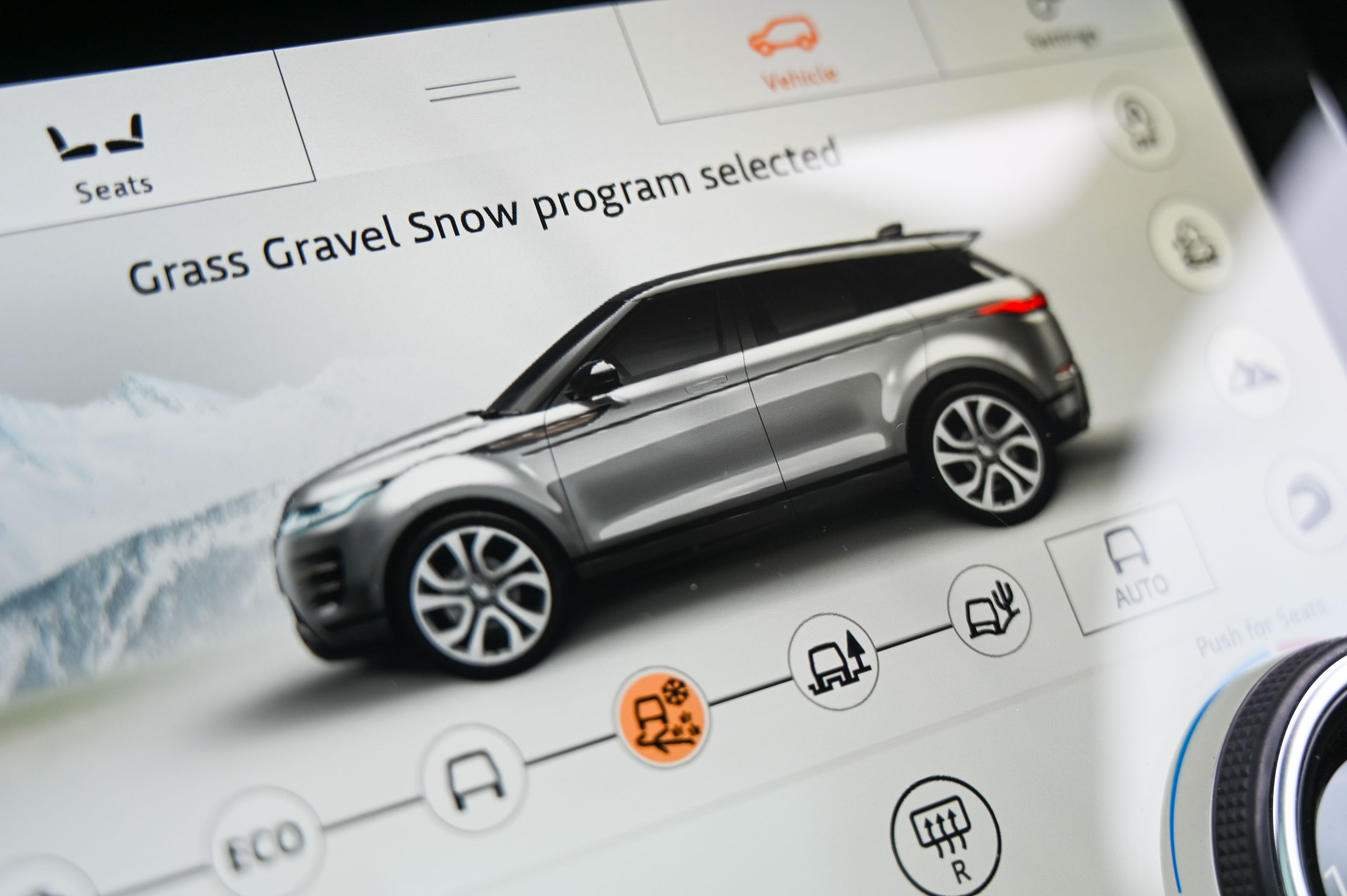 Za varno prečenje ternskih ovir ima voznik na voljo iz vseh strani karoserije na voljo različne poglede kamer, poleg tega si lahko vklopi še terenske merilnike s prikazom kota koles in nagiba. Te podatke je mogoče zrcaliti tudi na vetrobransko steklo (head-up zaslon). Navor se na zadnja kolesa prenese zelo hitro preko zobate sklopke, ki pa so jo iz zadnjega diferenciala (predhodnik) prenesli na gred ob izhodu menjalnika. S tem so zmanjšali mehanske izgube pogona, saj se kardan vrti le takrat, ko sistem terrain response 2 aktivira prenos navora na zadnja kolesa. Evouqe je ternski vožnji prilagojen tudi s precej kratkimi karoserijskimi previsi, kolesa so postavljena precej pri robu karoserije. Vstopni kot zanaša 25 stopinj izstopni pa 30,6 stopinj. Avto zmore vleči tudi dve toni težko prikolico.