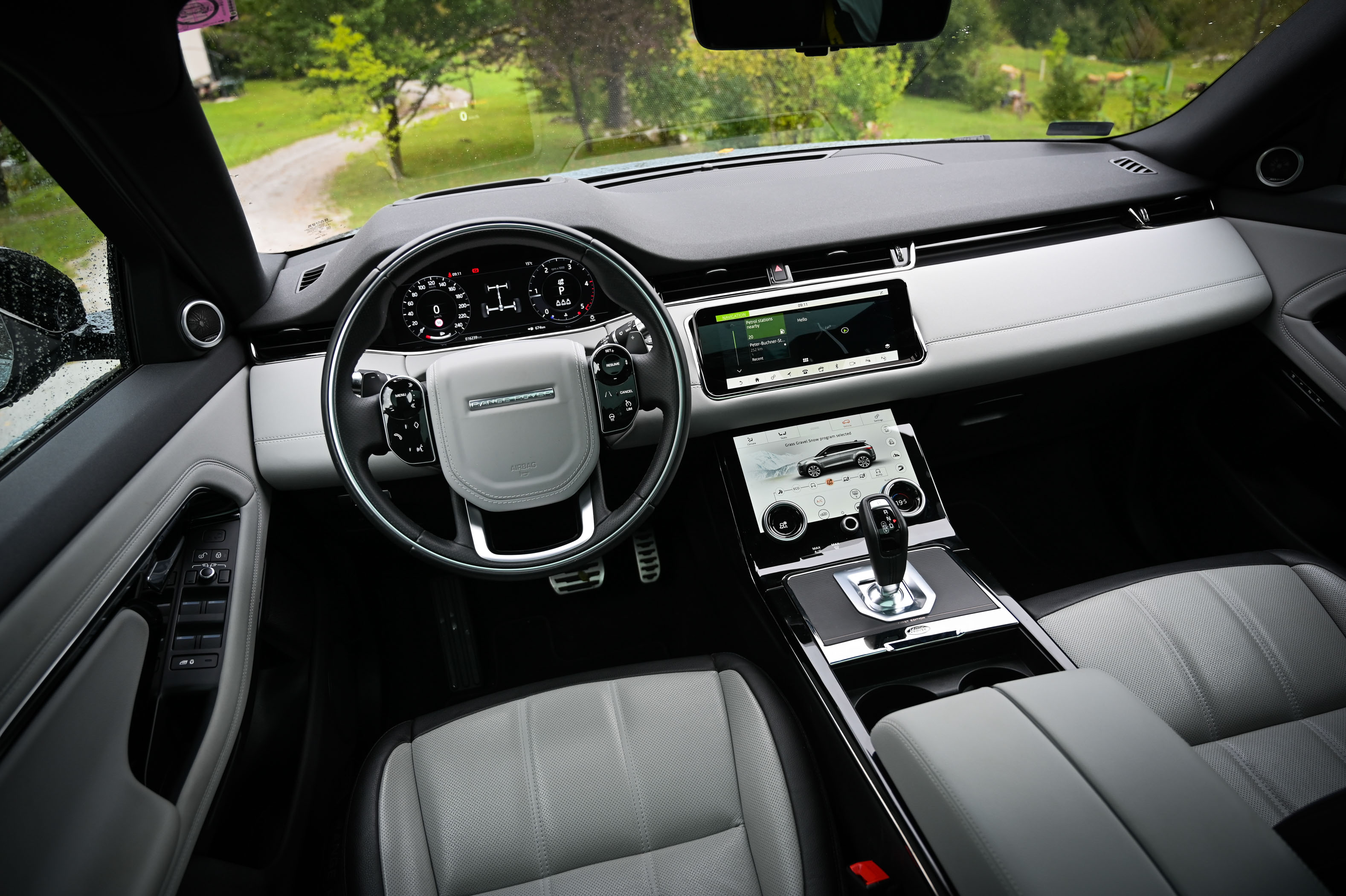 Fotogenični evoque je eden redkih avtomobilov, ki se navzven ne razlikuje prav veliko od predhodnika, a kljub temu skoraj vsakdo v njem prepozna nov avto. Z všečno in sodobno podobo lahko prepriča tako dame kot gospode, ker se odlično vklopi v urbano življenje in hkrati z 21-centimetrsko oddaljenostjo od tal ohranja pustolovsko bit Land Roverja ter omogoča udobno vstopanje. A elegantno padajoča, nizka strešna linija in visoki boki vzamejo svoj davek; površina bočnih stekel je majhna in preglednost iz avta slaba.