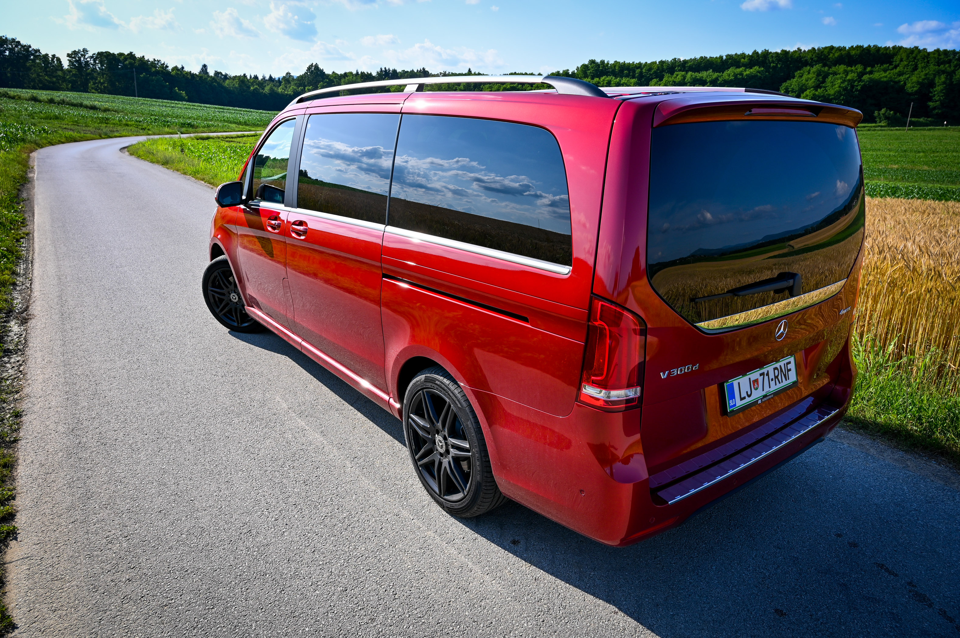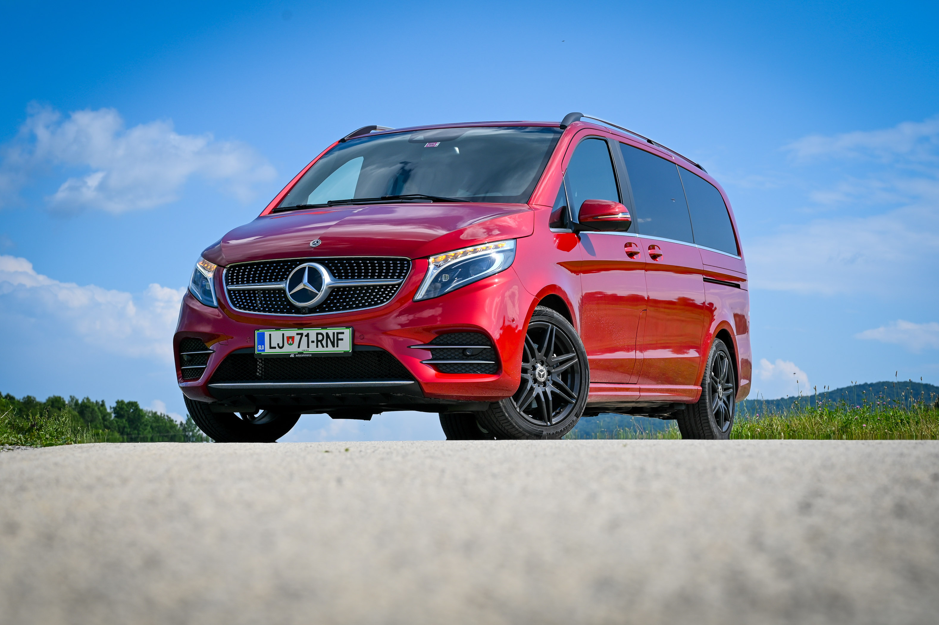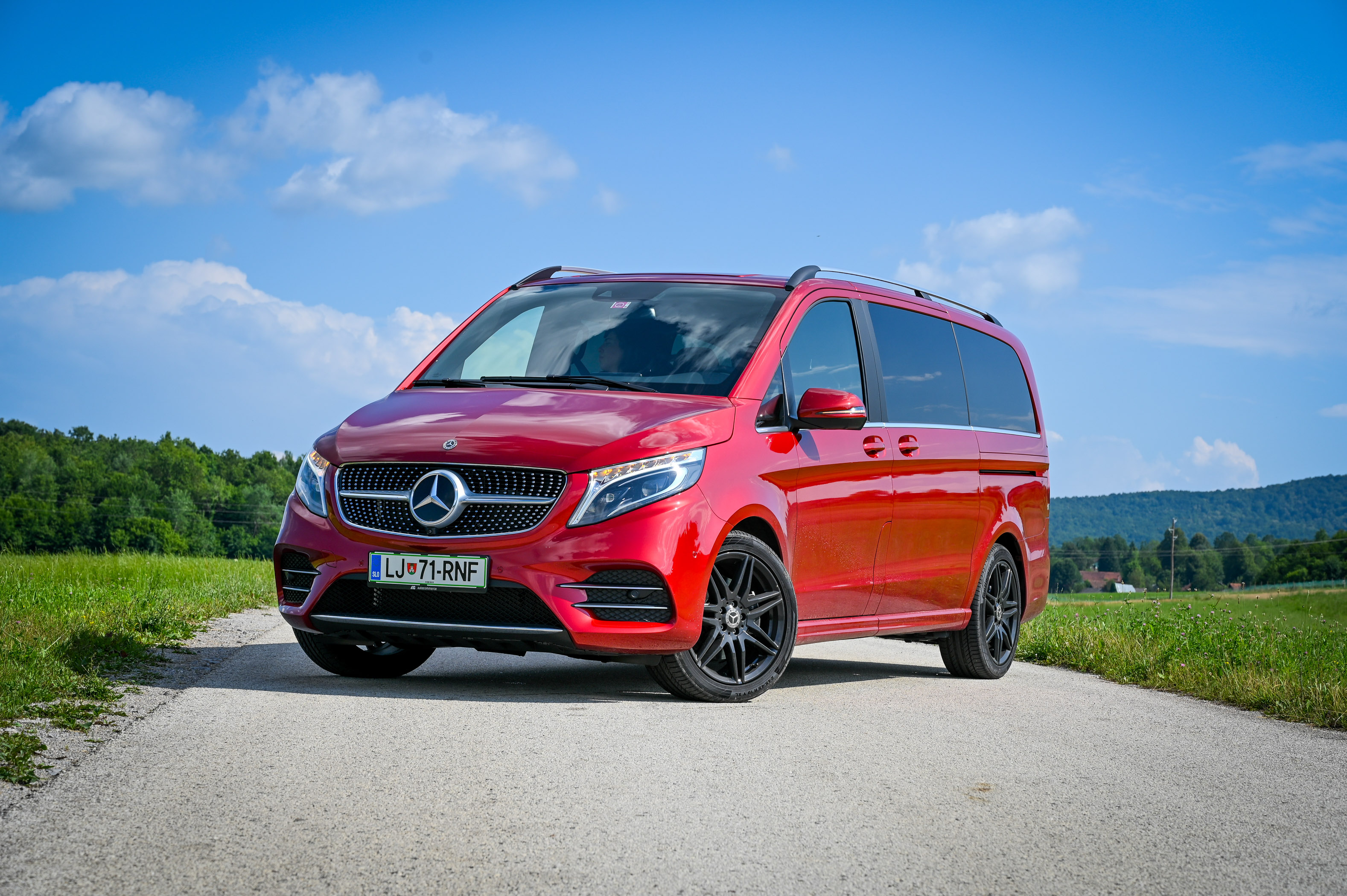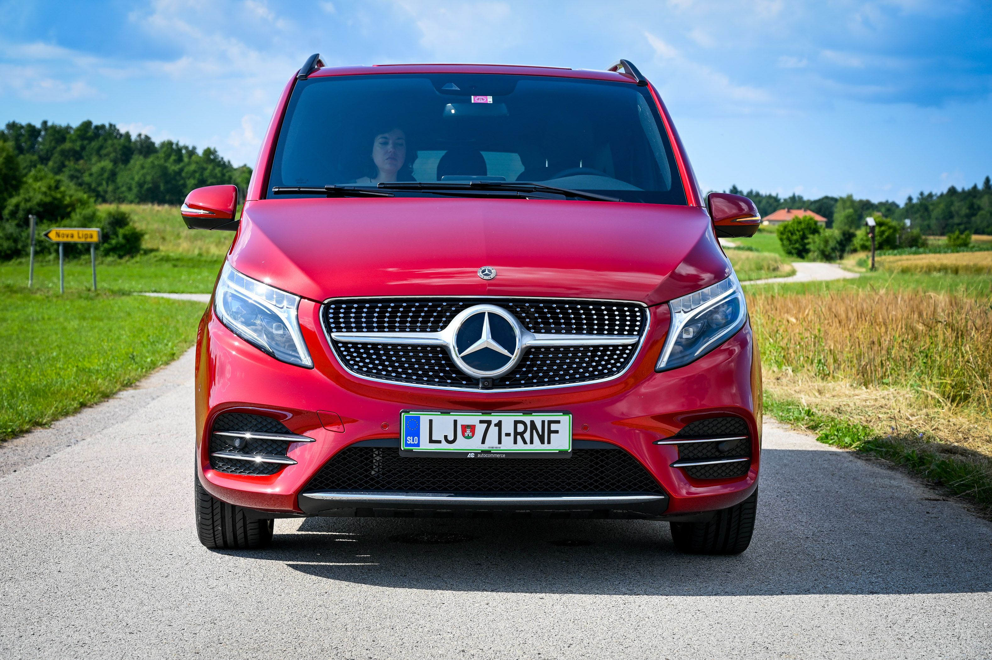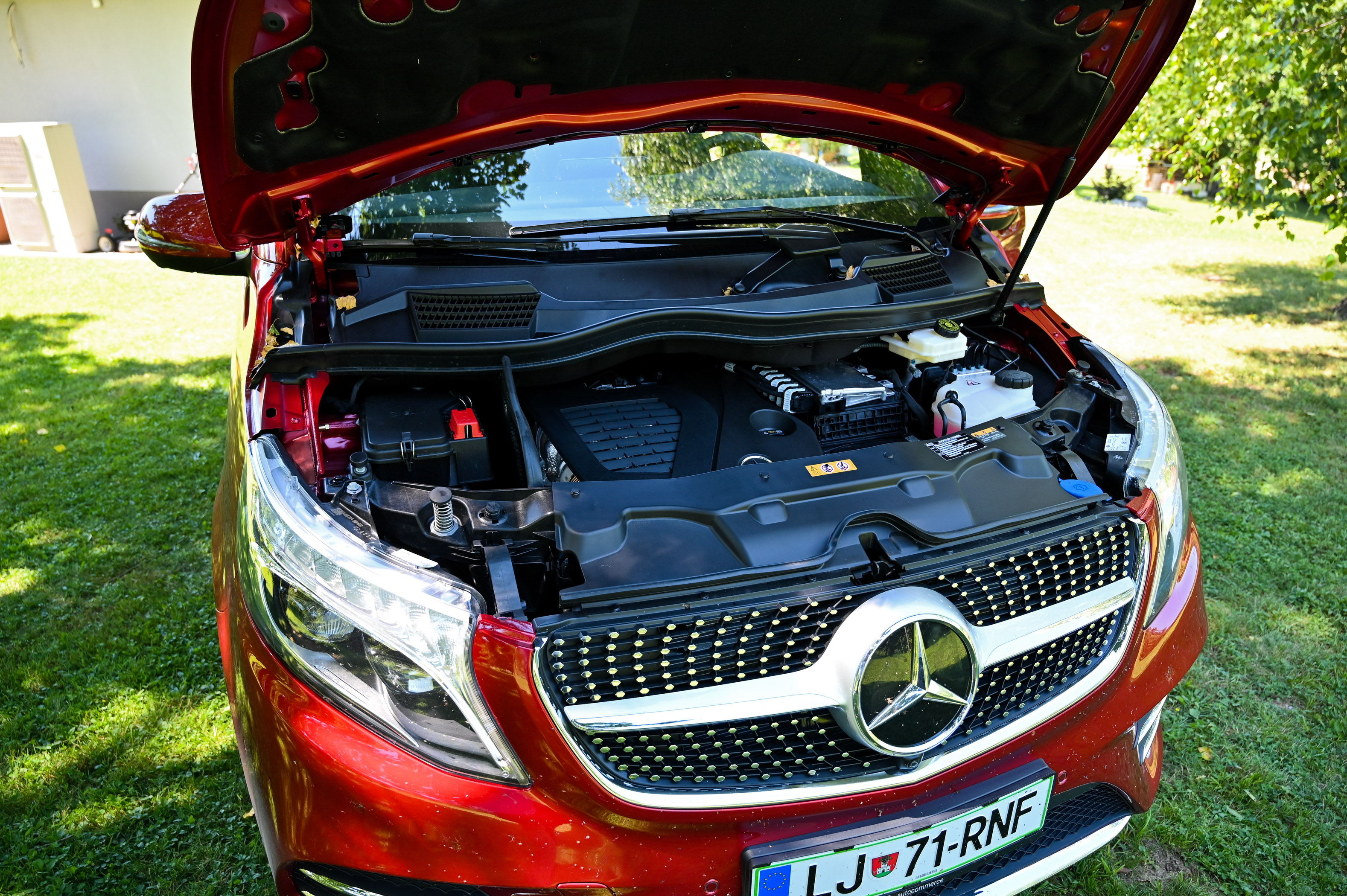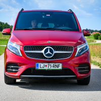 Vse to zmore Mercedesov razred V, ki je doživel lepotno in tehnično prenovo: dobil je izpopolnjen pogonski sklop oziroma novi dvolitrski dizelski štirivaljnik (OM654) s kar 176 kW in 500 Nm navora ter 9-stopenjski samodejni menjalnik. Gre za tandem, ki se glede zmogljivosti in učinkovitosti lahko brez težav kosa z velikimi karavani ali cestnimi terenci. Dvostopenjski turbinski polnilnik poskrbi za dobro odzivnost, saj je celoten navor na voljo med 1600 in 2400 vrt./min. Pogon je sicer izrazito naravnan k udobju, a kljub temu bo vsak voznik pokimal odzivnosti. Dolg avtocestni klanec, četudi je zasedenih vseh osem sedežev in 1000-litrski prtljažnik za tretjo vrsto, temu avtu ne vzame sape. Ta hip ni prav veliko enoprostornežev, ki bi suvereno presegli dvestotico na merilniku hitrosti ali brez težav vlekli 2,5 tone težko prikolico. Pri voznih lastnostih izpostavljamo zelo dobro smerno stabilnost. Palec gor tudi za preglednost, zvočno zatesnjenost in klimatsko napravo s triobmočno nastavitvijo. Dobro izračunana prestavna razmerja 9-stopenjskega samodejnega menjalnika poskrbijo tudi za energijsko zmernost: povprečna poraba goriva brez težav ostane pod devetimi litri na 100 kilometrov.