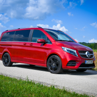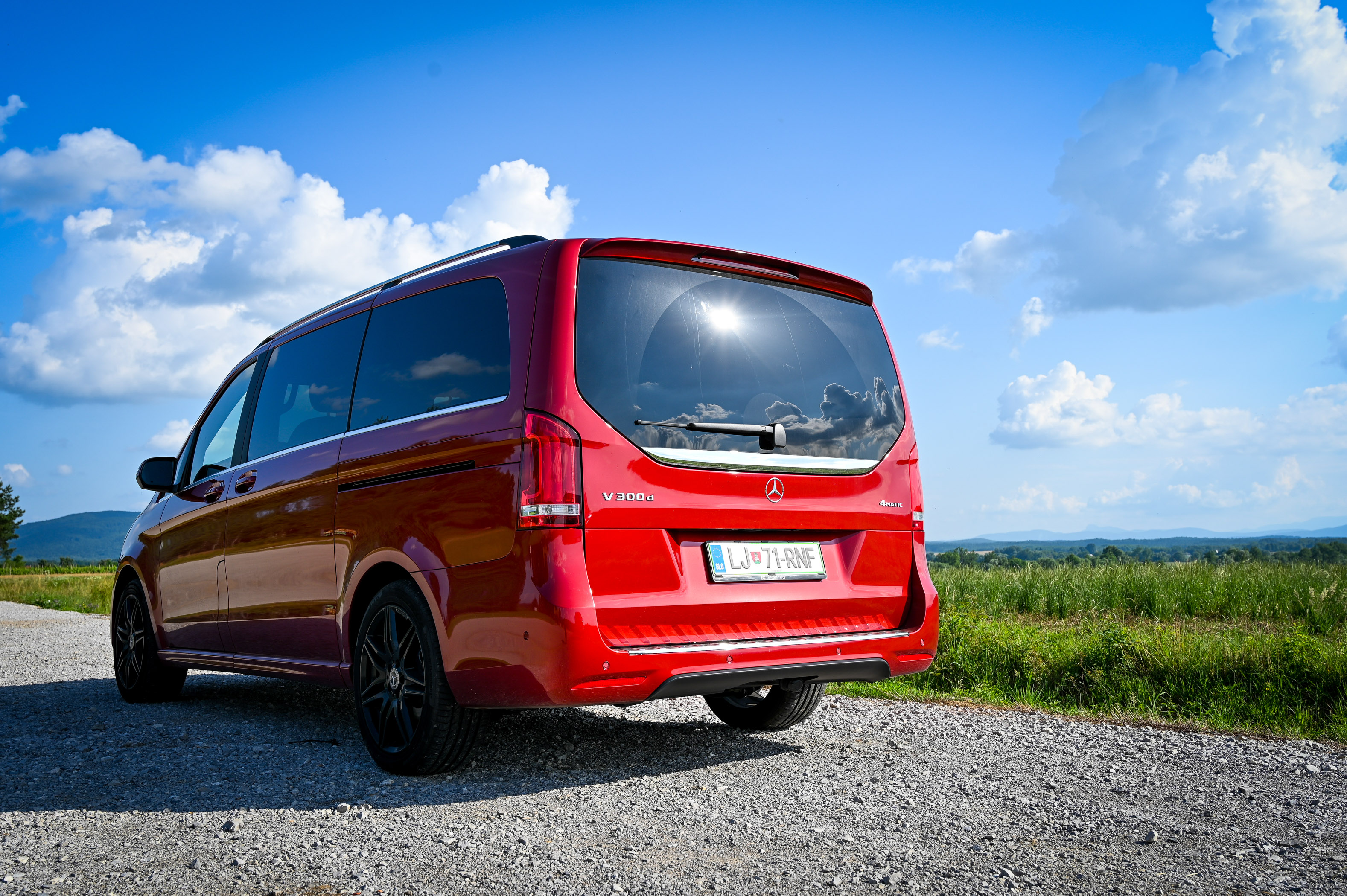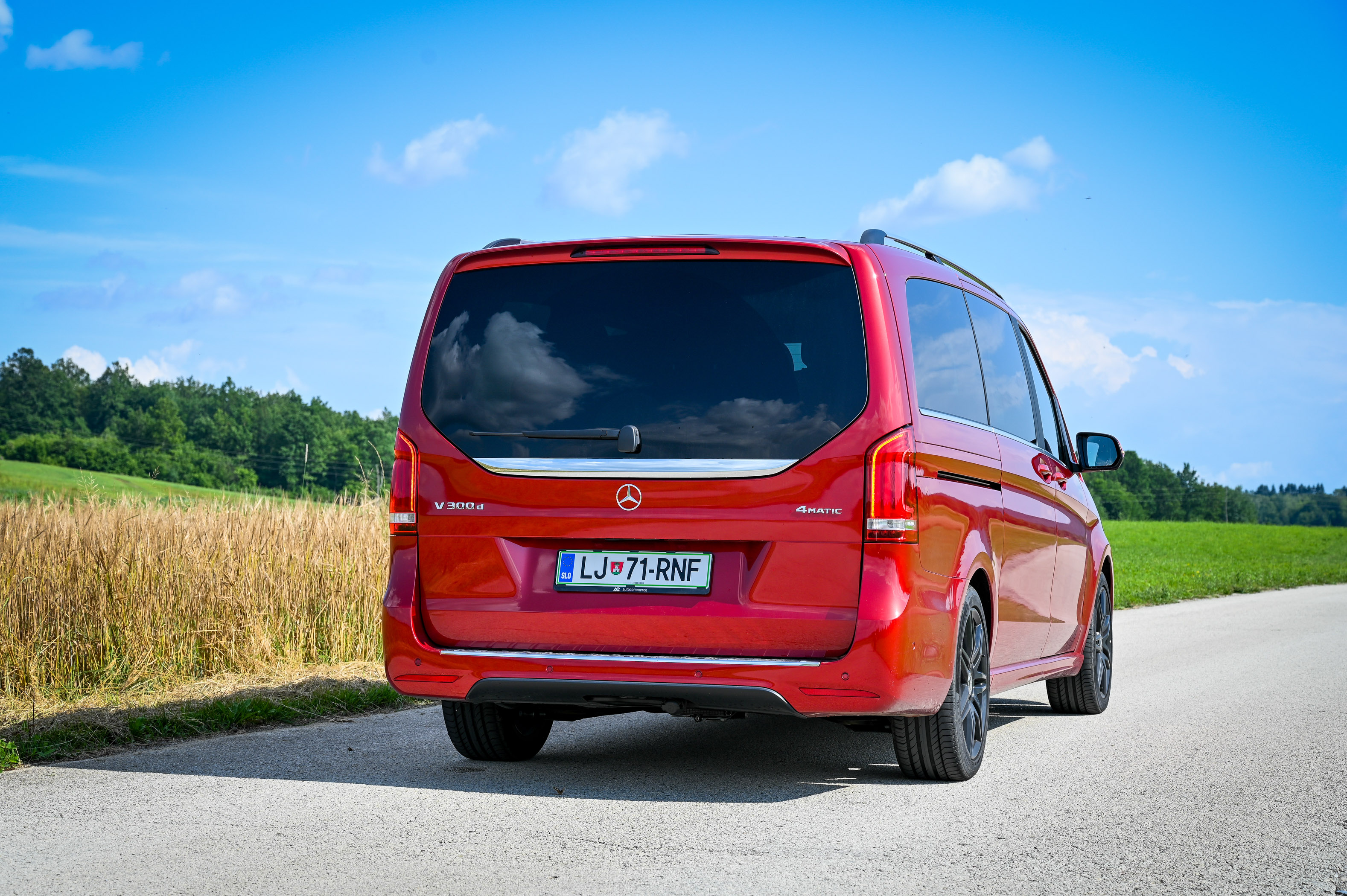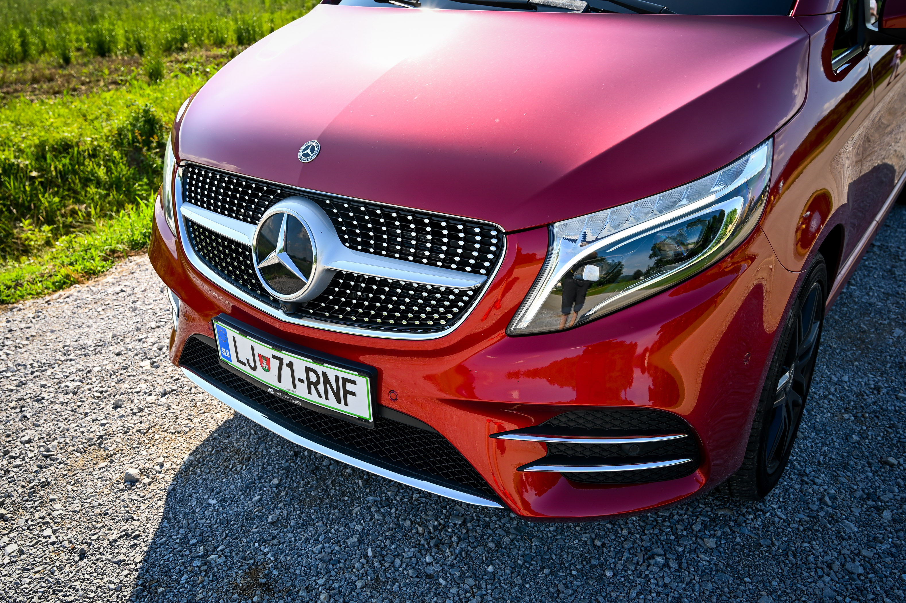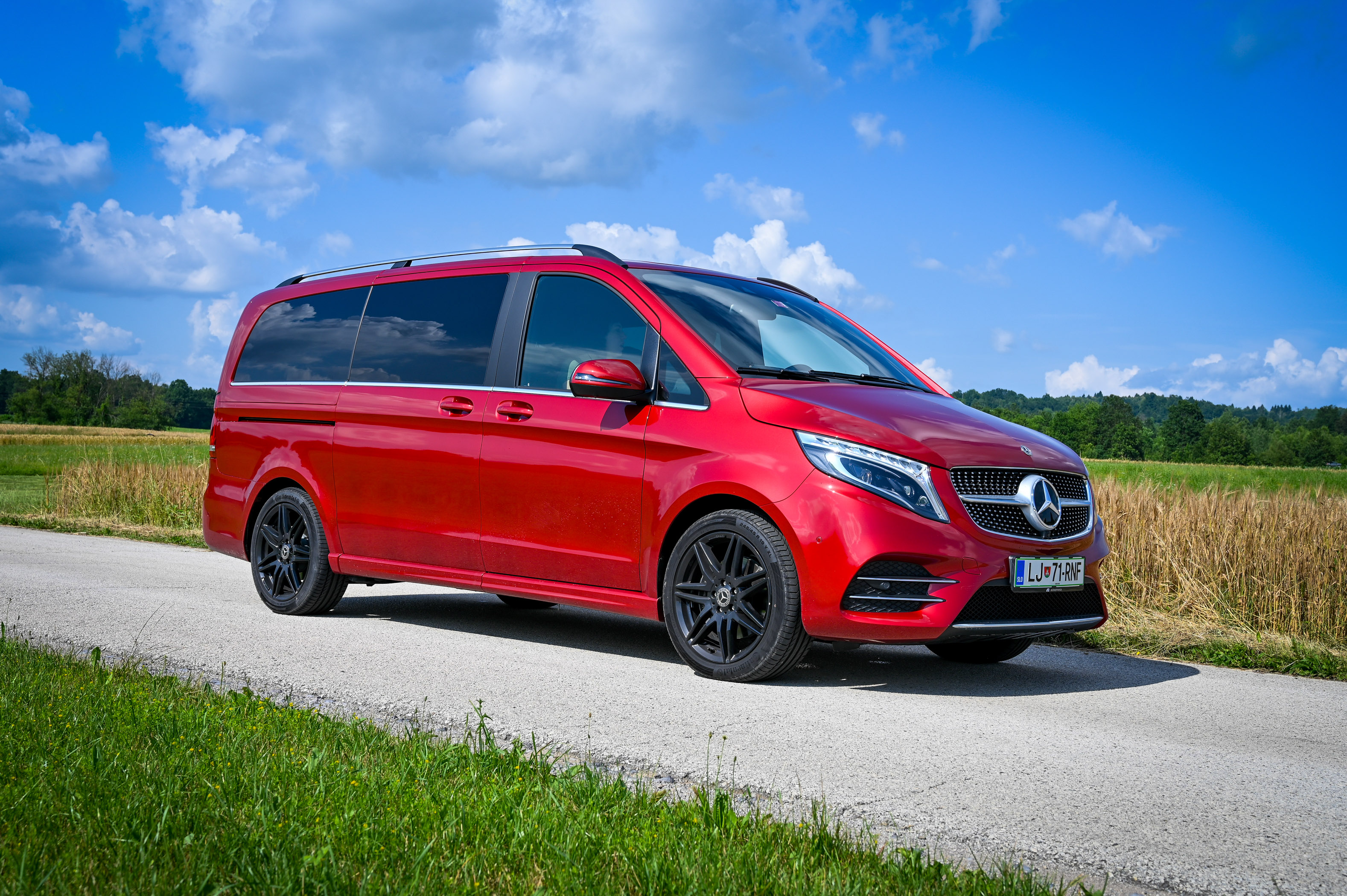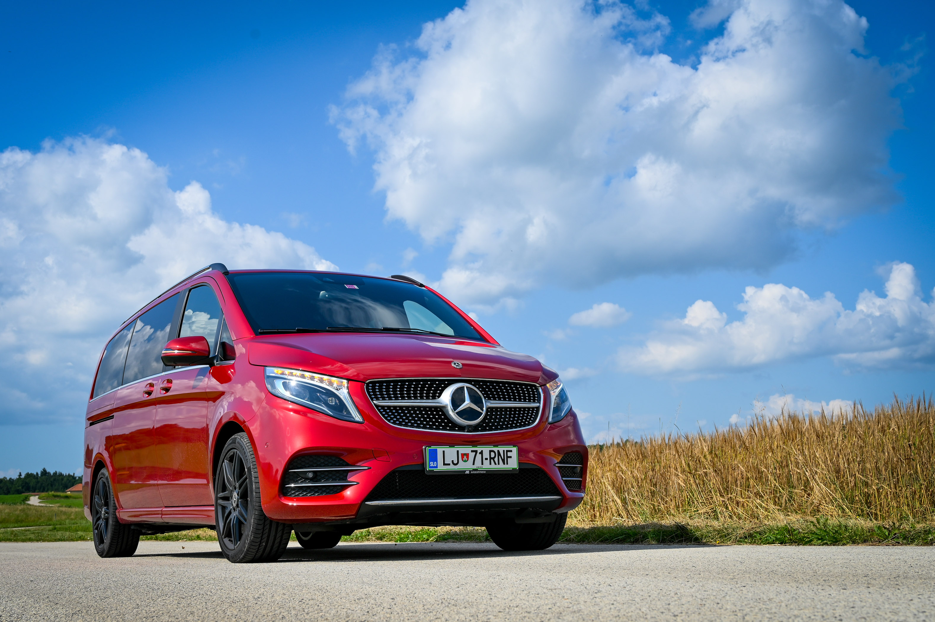 Vse to zmore Mercedesov razred V, ki je doživel lepotno in tehnično prenovo: dobil je izpopolnjen pogonski sklop oziroma novi dvolitrski dizelski štirivaljnik (OM654) s kar 176 kW in 500 Nm navora ter 9-stopenjski samodejni menjalnik. Gre za tandem, ki se glede zmogljivosti in učinkovitosti lahko brez težav kosa z velikimi karavani ali cestnimi terenci. Dvostopenjski turbinski polnilnik poskrbi za dobro odzivnost, saj je celoten navor na voljo med 1600 in 2400 vrt./min. Pogon je sicer izrazito naravnan k udobju, a kljub temu bo vsak voznik pokimal odzivnosti. Dolg avtocestni klanec, četudi je zasedenih vseh osem sedežev in 1000-litrski prtljažnik za tretjo vrsto, temu avtu ne vzame sape. Ta hip ni prav veliko enoprostornežev, ki bi suvereno presegli dvestotico na merilniku hitrosti ali brez težav vlekli 2,5 tone težko prikolico. Pri voznih lastnostih izpostavljamo zelo dobro smerno stabilnost. Palec gor tudi za preglednost, zvočno zatesnjenost in klimatsko napravo s triobmočno nastavitvijo. Dobro izračunana prestavna razmerja 9-stopenjskega samodejnega menjalnika poskrbijo tudi za energijsko zmernost: povprečna poraba goriva brez težav ostane pod devetimi litri na 100 kilometrov.