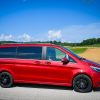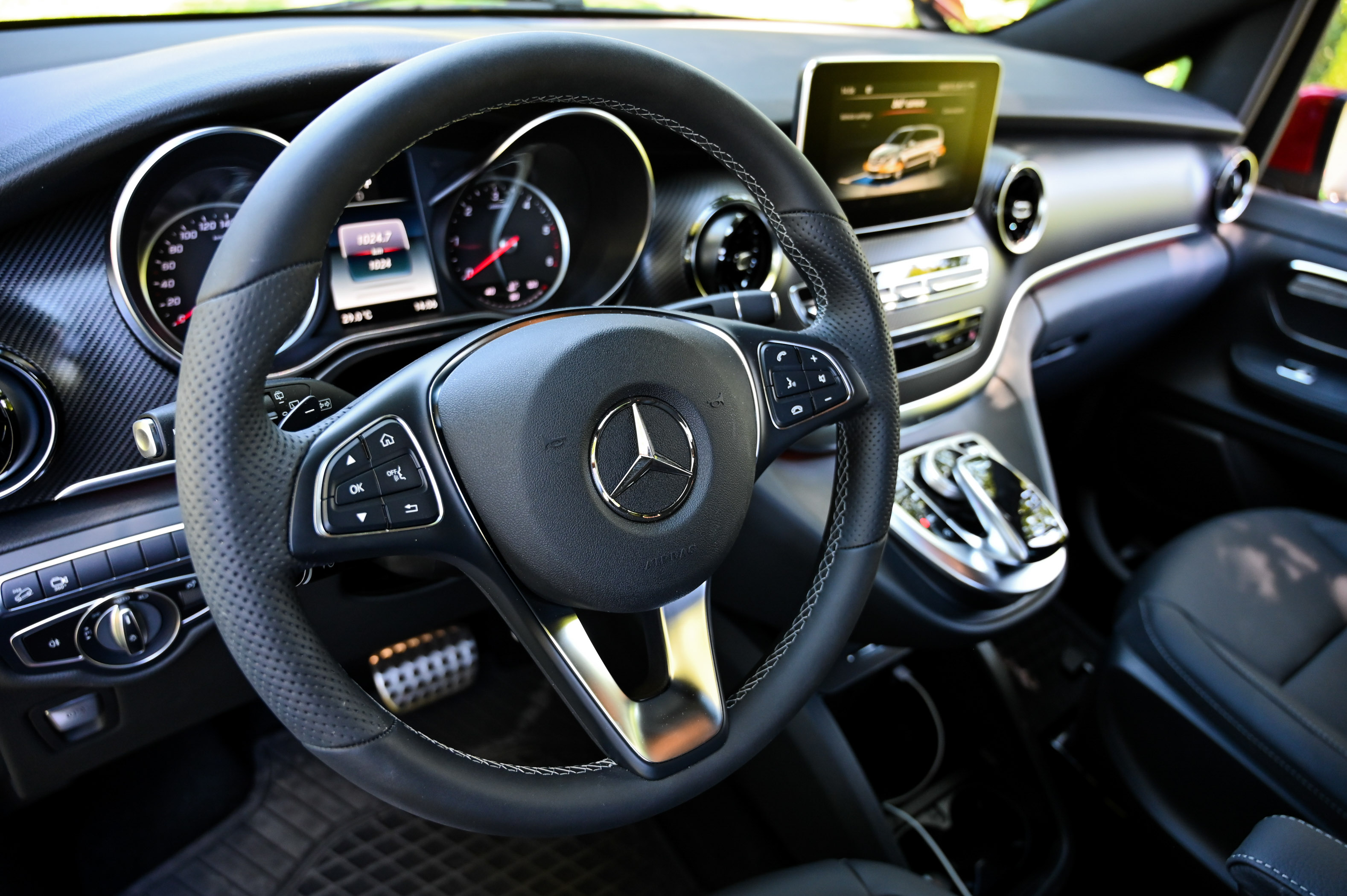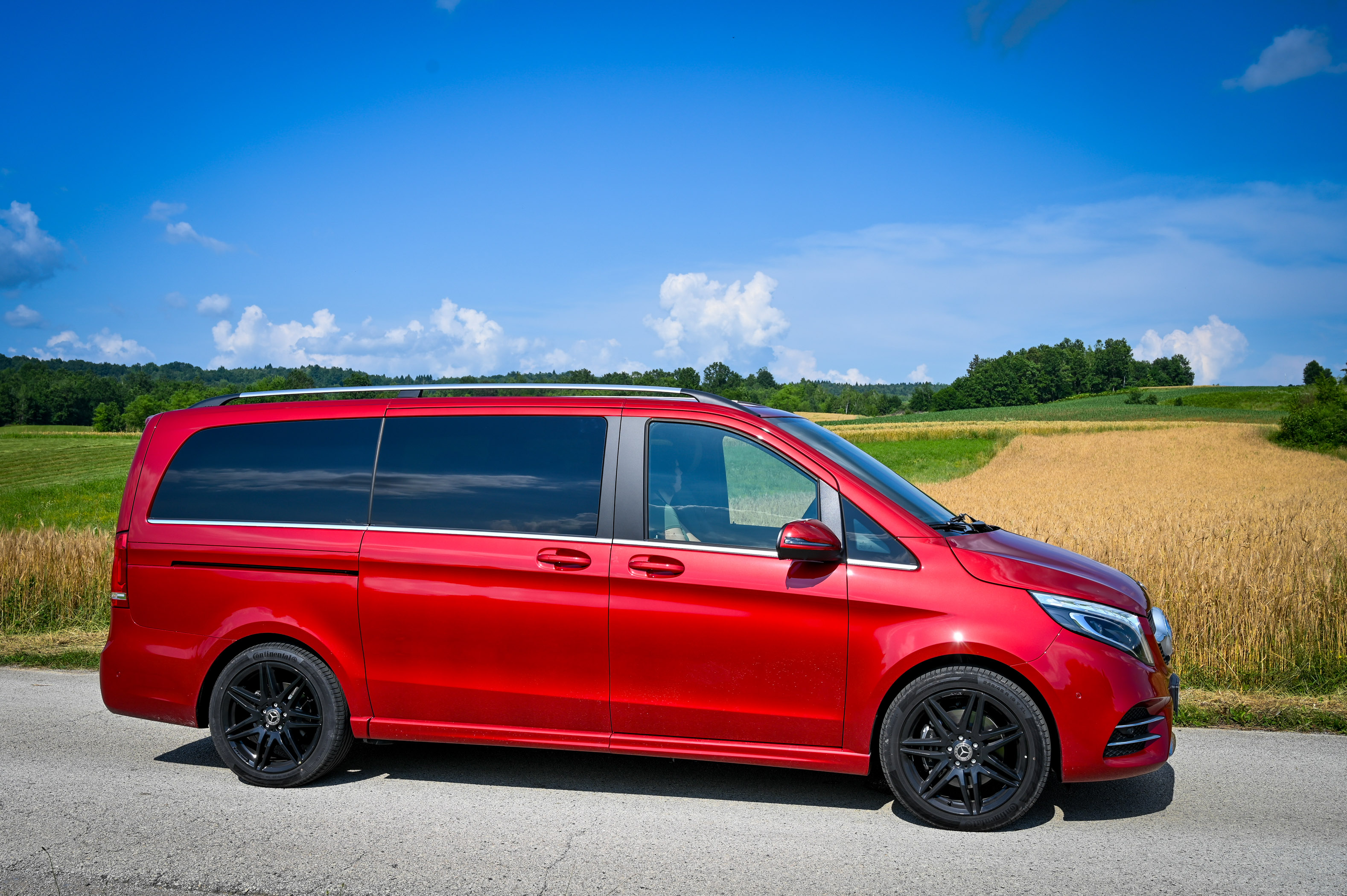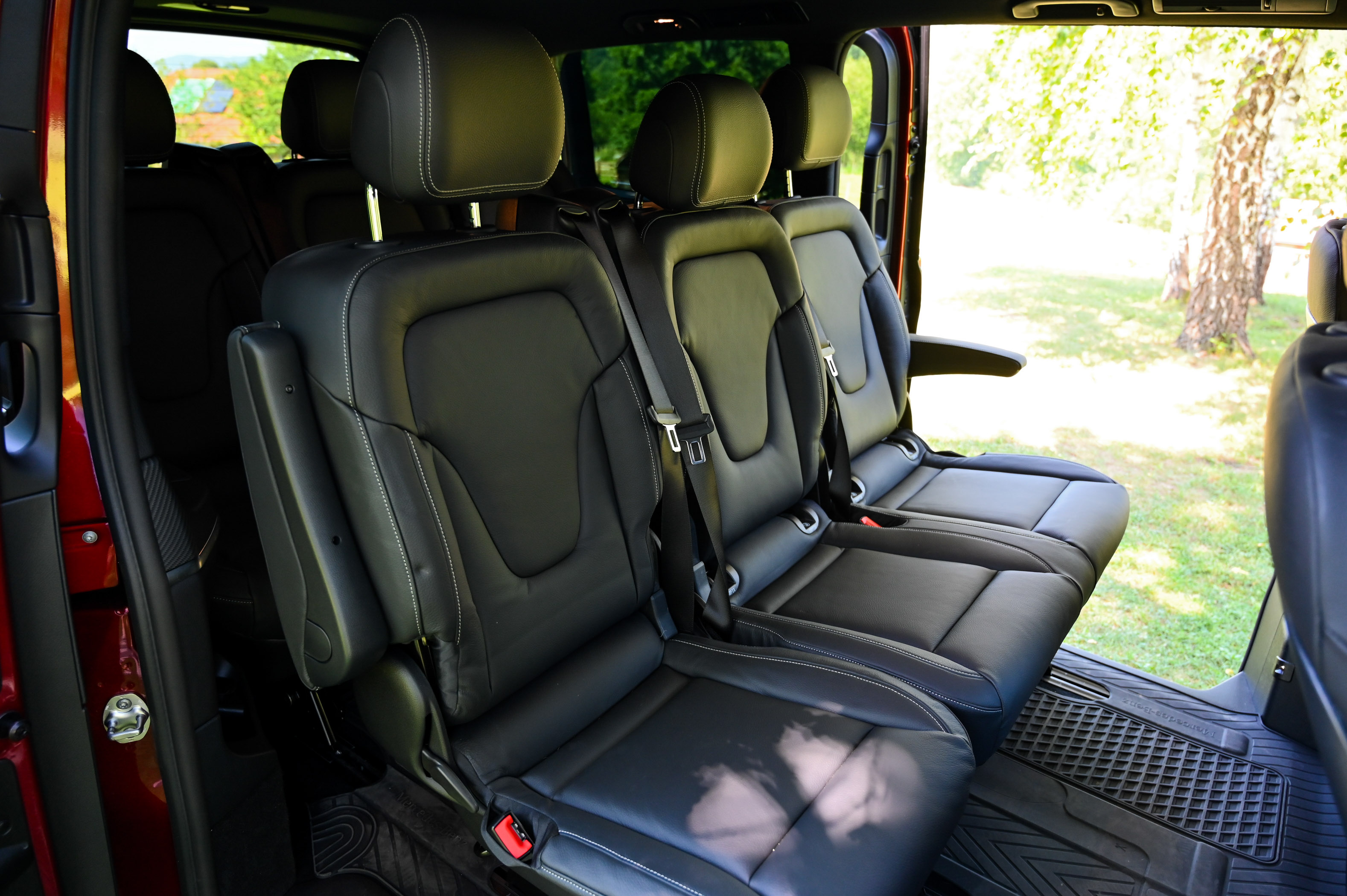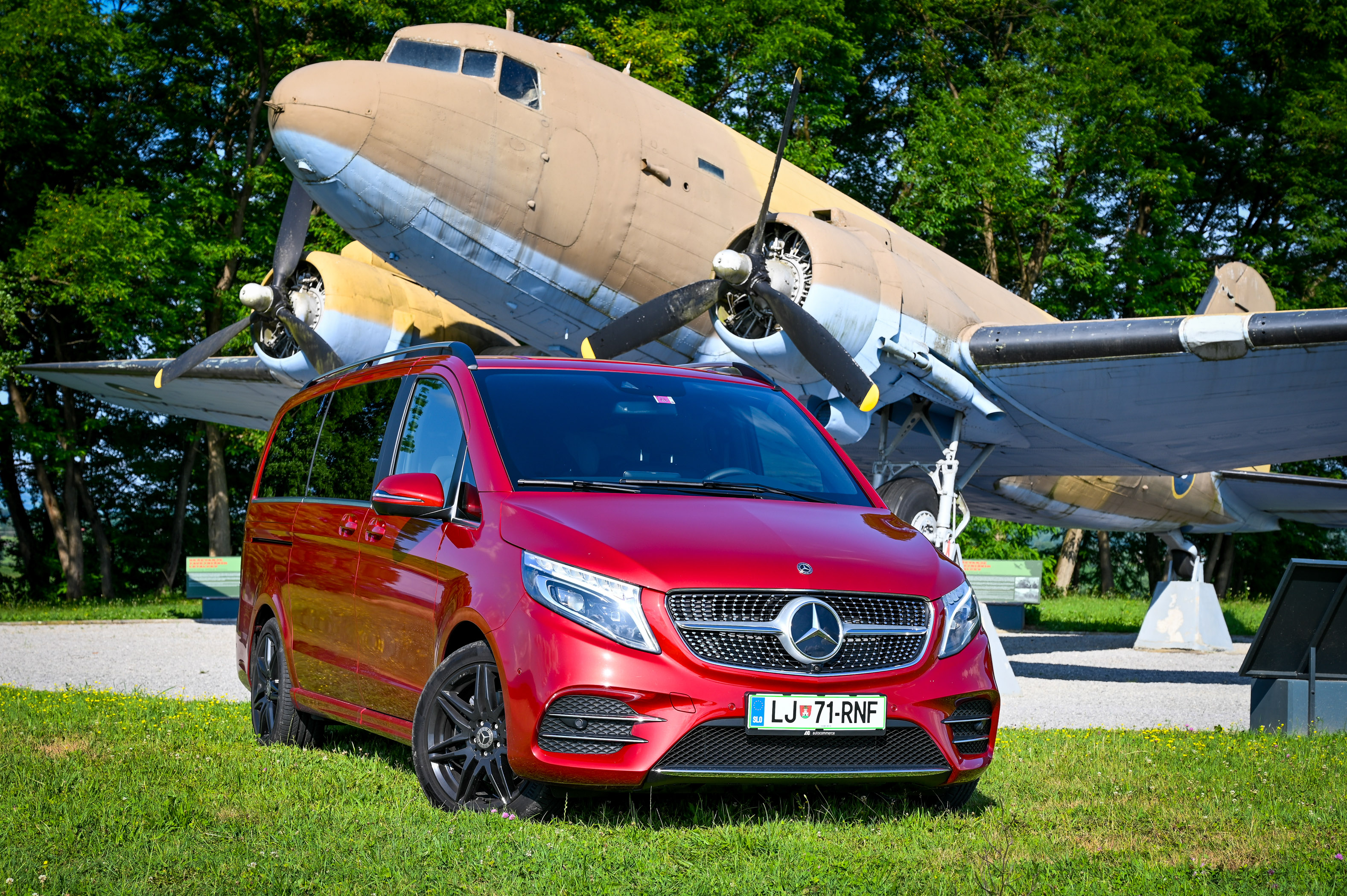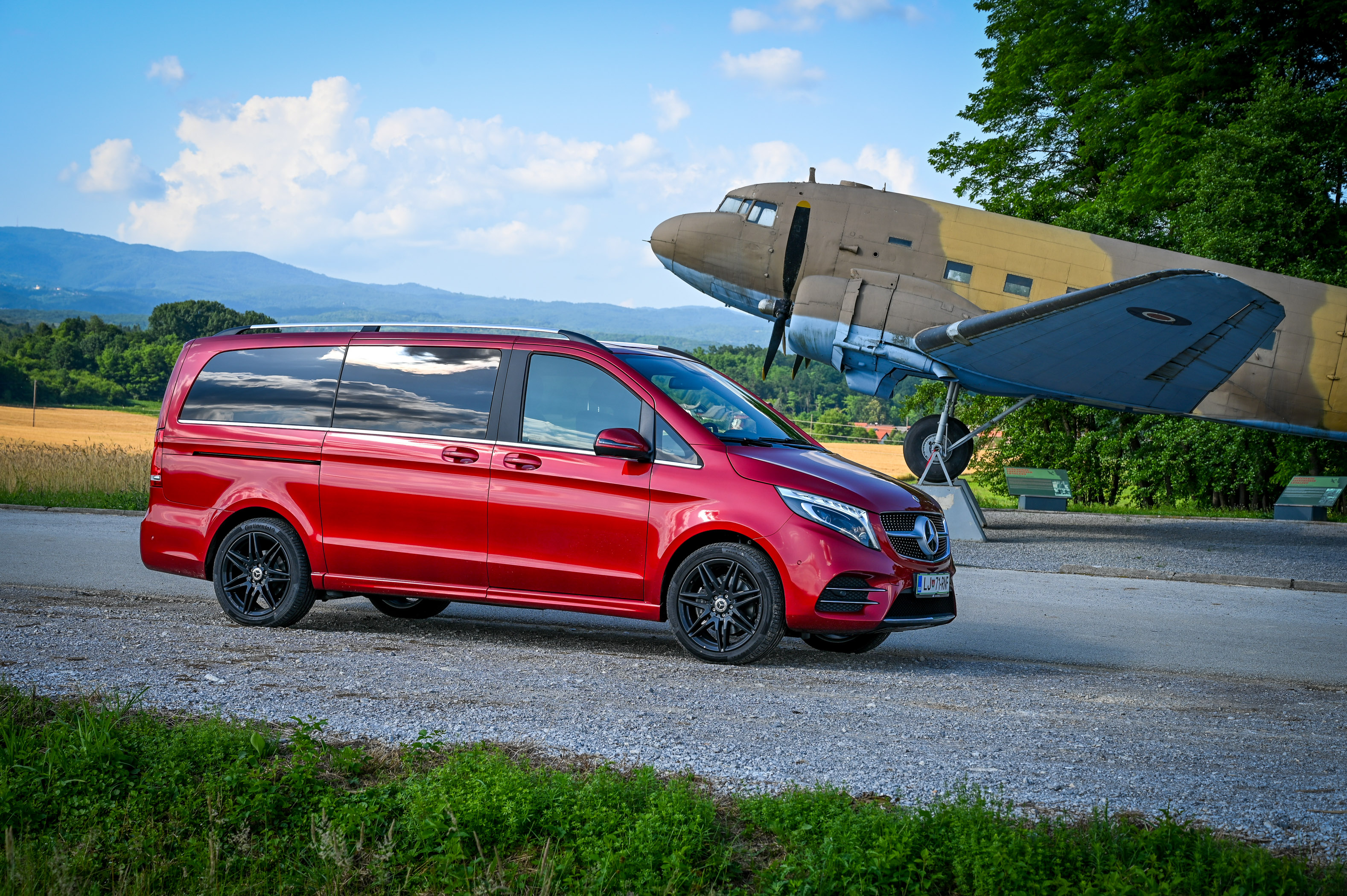 Vse to zmore Mercedesov razred V, ki je doživel lepotno in tehnično prenovo: dobil je izpopolnjen pogonski sklop oziroma novi dvolitrski dizelski štirivaljnik (OM654) s kar 176 kW in 500 Nm navora ter 9-stopenjski samodejni menjalnik. Gre za tandem, ki se glede zmogljivosti in učinkovitosti lahko brez težav kosa z velikimi karavani ali cestnimi terenci. Dvostopenjski turbinski polnilnik poskrbi za dobro odzivnost, saj je celoten navor na voljo med 1600 in 2400 vrt./min. Pogon je sicer izrazito naravnan k udobju, a kljub temu bo vsak voznik pokimal odzivnosti. Dolg avtocestni klanec, četudi je zasedenih vseh osem sedežev in 1000-litrski prtljažnik za tretjo vrsto, temu avtu ne vzame sape. Ta hip ni prav veliko enoprostornežev, ki bi suvereno presegli dvestotico na merilniku hitrosti ali brez težav vlekli 2,5 tone težko prikolico. Pri voznih lastnostih izpostavljamo zelo dobro smerno stabilnost. Palec gor tudi za preglednost, zvočno zatesnjenost in klimatsko napravo s triobmočno nastavitvijo. Dobro izračunana prestavna razmerja 9-stopenjskega samodejnega menjalnika poskrbijo tudi za energijsko zmernost: povprečna poraba goriva brez težav ostane pod devetimi litri na 100 kilometrov.