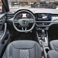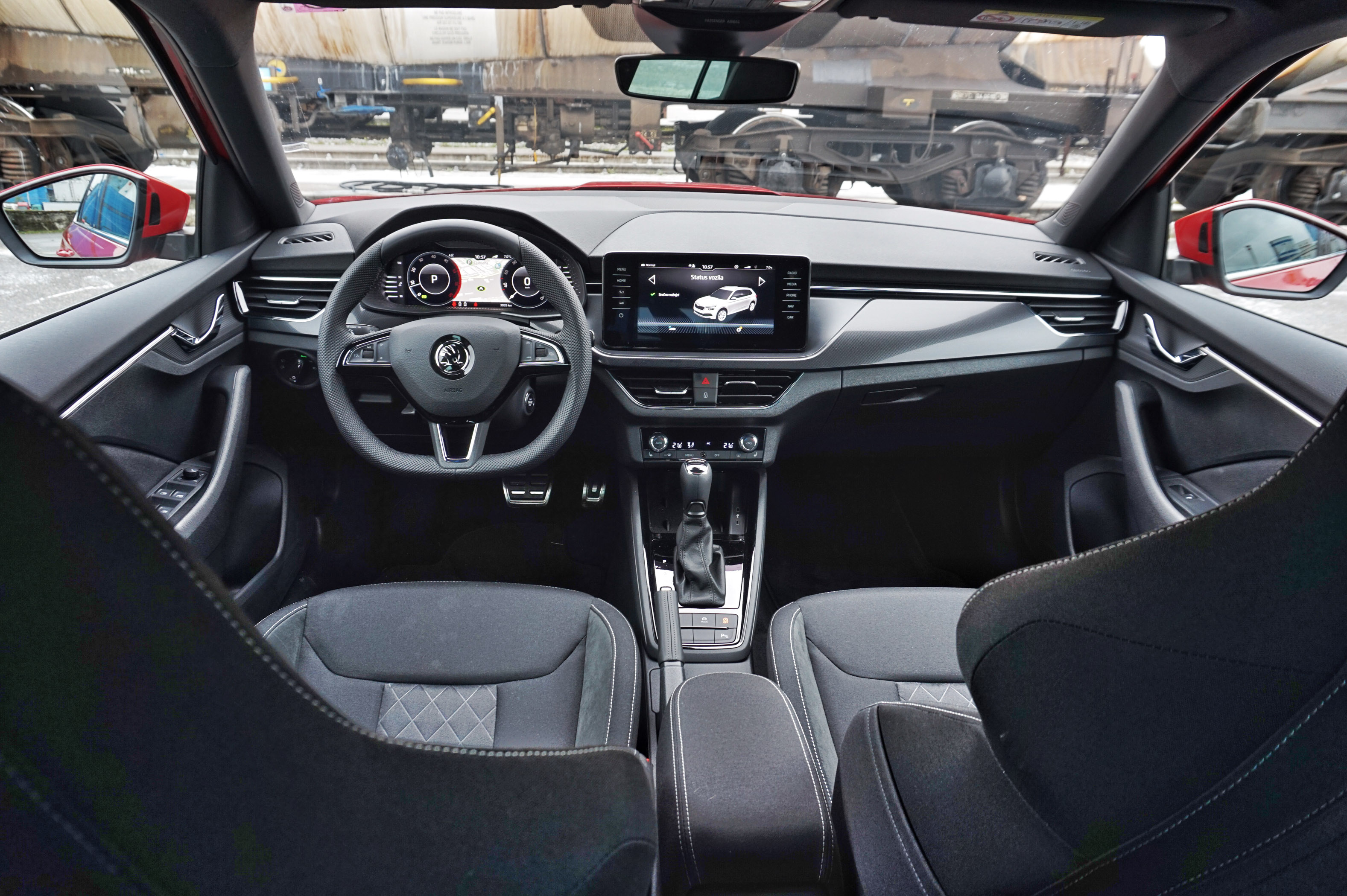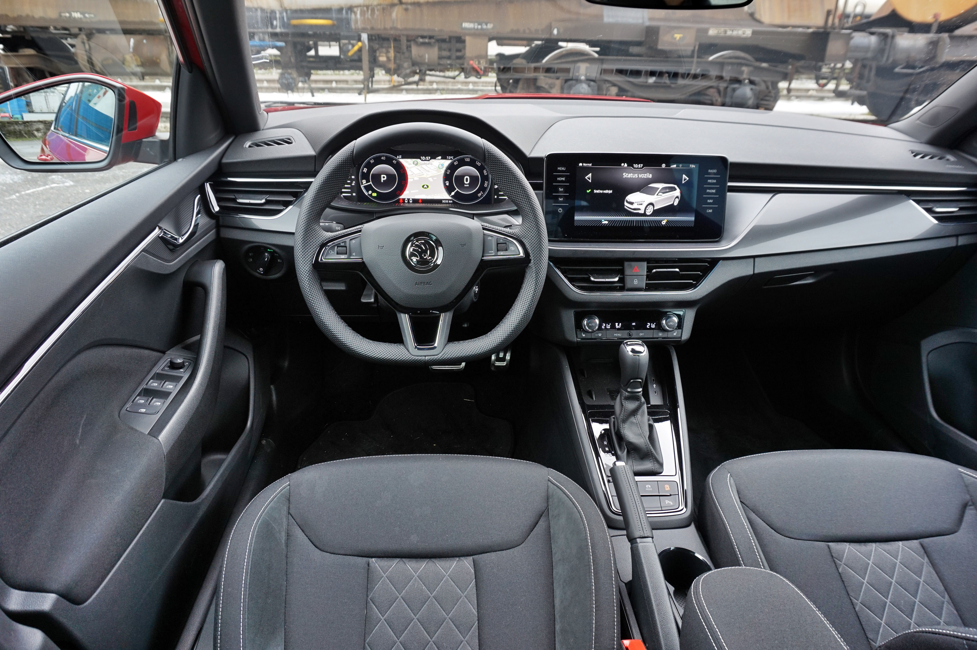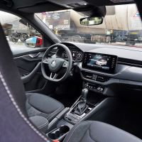 Če ste že sedeli v scali, se boste zelo domače počutili tudi v kamiqu, saj imata oba zelo podobni armaturni plošči. Se pa v kamiqu seveda sedi višje in bolj pokončno, precej lažje je tudi sesti v avto - tako spredaj kot zaradi precej širokih zadnjih vrat tudi zadaj. Ljubitelji vsega digitalnega bodo veseli možnosti dokupa digitalnih merilnikov in velikega zaslona multimedijske naprave, malokomu pa bo všeč, da je treba z večino funkcij upravljati s tapkanjem po zaslonu naprave.