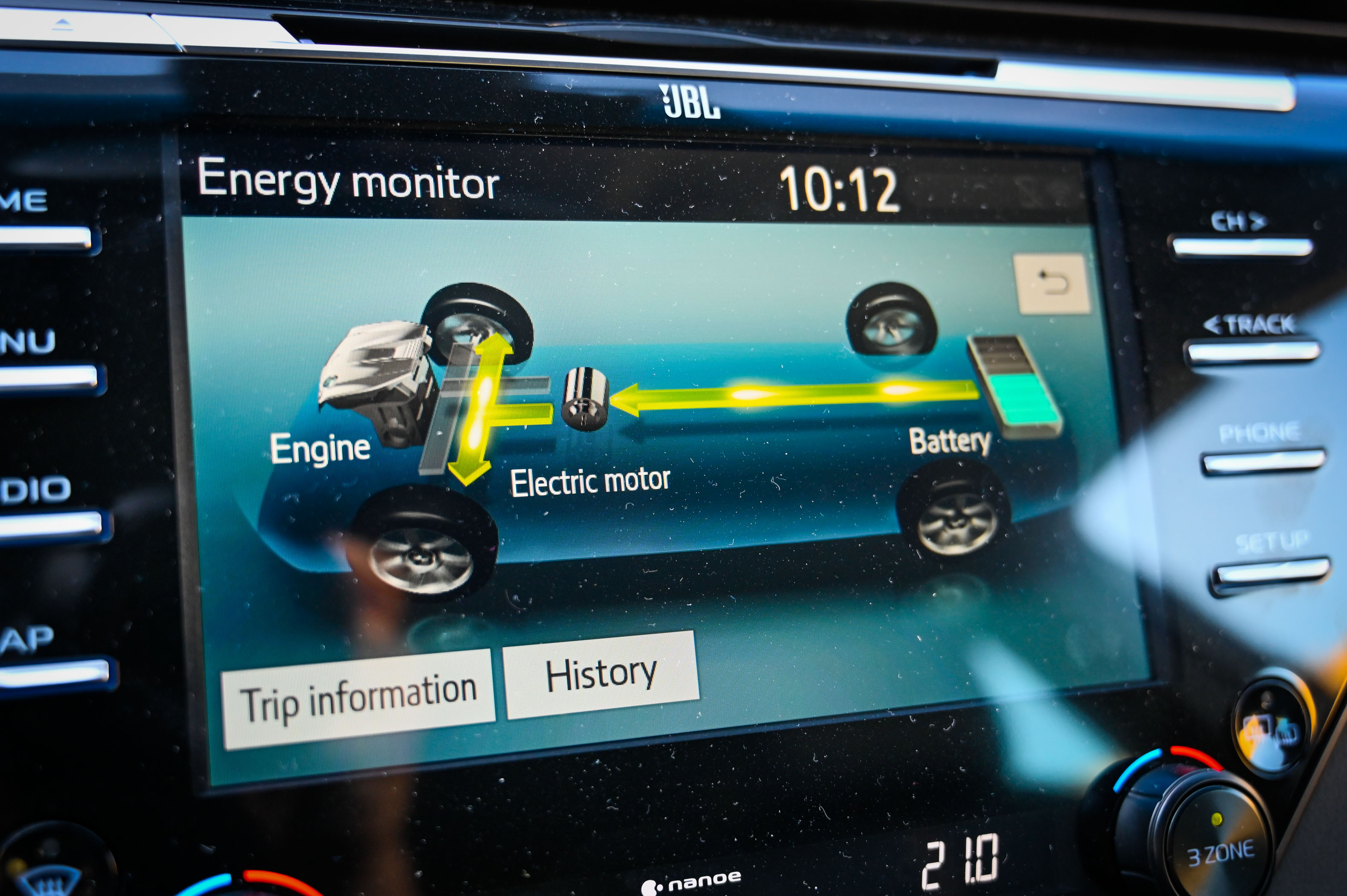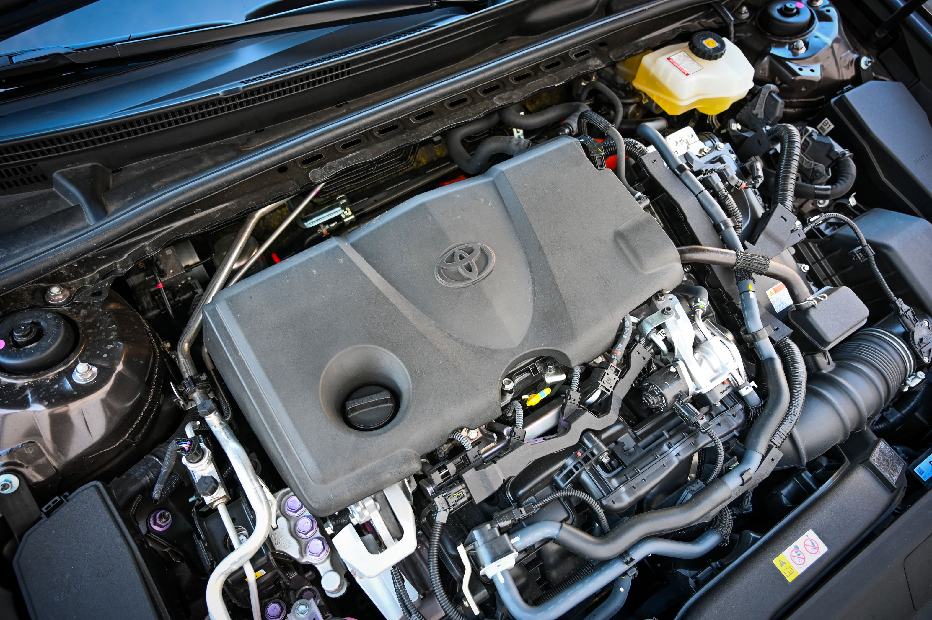 Pri pogonu ni izbire: na voljo je zgolj dobro znani hibridni pogon, ki ga sestavljata 2,5-litrski bencinski motor in električni motor, za prenos moči skrbi brezstopenjski samodejni menjalnik z značilnim delovanjem. Električno energijo za pogon avto dobi (zgolj) z rekuperacijo ob zaviranju, zato je njegov doseg zgolj na elektriko omejen na kratke razdalje (do 1 km) in z majhno hitrostjo, njegova gospodarnost pa je odvisna od vrste vožnje: še najmanj gospodaren je na avtocestah, ki pa sicer camryju najbolj ustrezajo: vožnja je tiha in udobna. Na podeželskih cestah pride bolj do izraza dokaj sintetično delujoč volanski mehanizem, dokaj mehko vzmetenje in zajetna teža avta, zato mu najbolj ustreza lagodnejša vožnja. Športnih ambicij - kljub športnemu voznemu programu - camry nima. Poraba goriva je odvisna od vrste vožnje - od 6 do 7,5 l/100 km, v povprečju 6,3 litra bencina na 100 km.