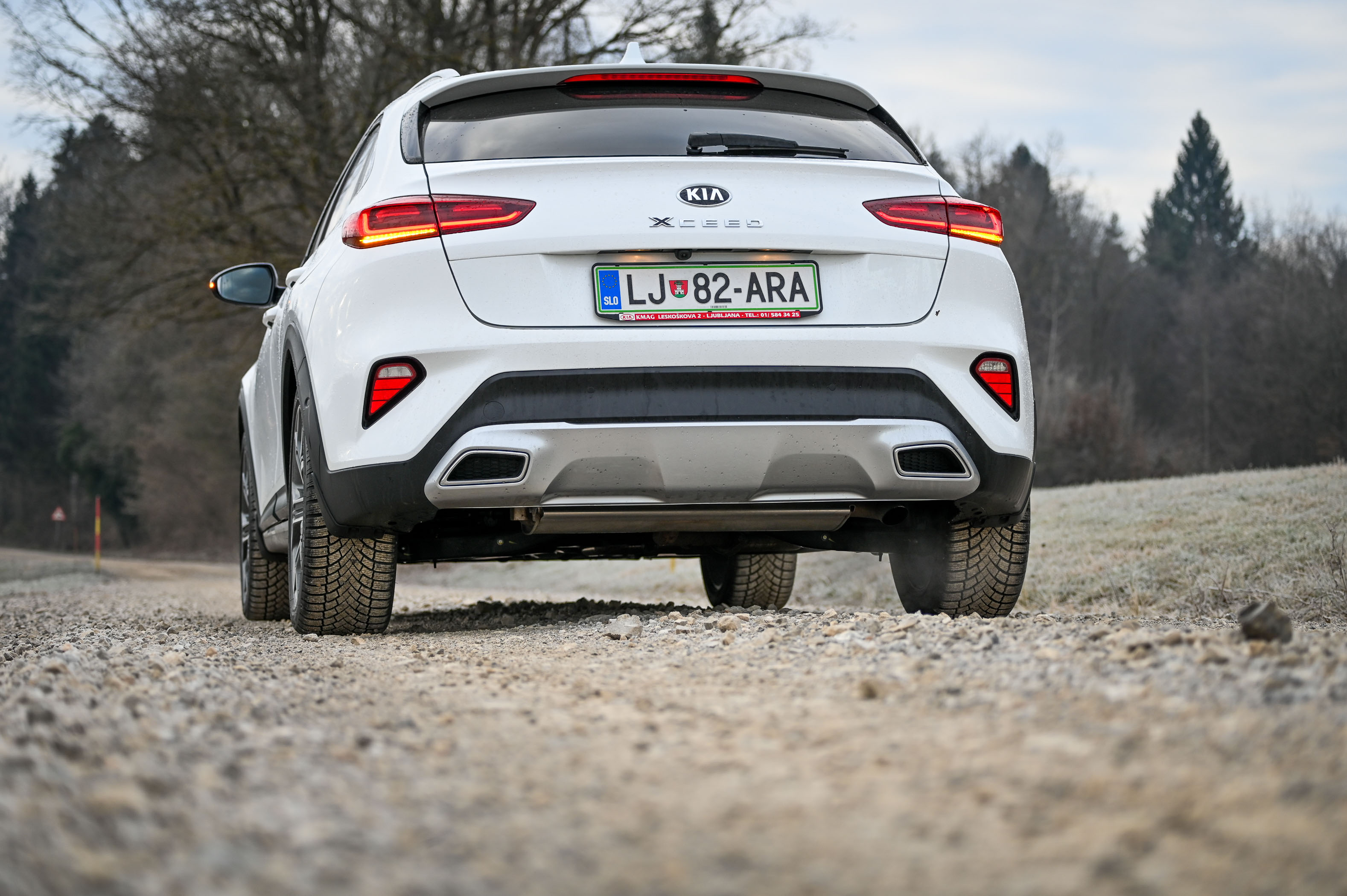 Xceed je čistokrvni križanec, saj združuje gene celotne družine ceed, ki pa jih kaže na zelo samosvoj, a zanimiv in presenetljivo skladno oblikovan način. Xceed je 8,5 cm daljši od kombiluzinskega ceeda, stoji na velikih 18-palčnih platiščih, od tal pa je oddaljen kar 18,4 cm, kar pomeni udobnejše vstopanje in višje sedenje za volanom. Strešna linija oziroma zadnji del avtomobila rišeta vmesno pot med karavansko praktičnostjo ceeda sw in kupejevsko eleganco proceeda. Uporaben in lahko dostopen 426-litrski prtljažnik, v katerega je treba vrečke dvigniti razmeroma visoko, zato predstavlja dober kompromis med modo in praktičnostjo. Pod prtljažnim dnom smo pogrešali uporabne predale iz ceeda sw in proceeda, a xceed želi biti tudi malce makadamskega pustolovca, zato ima v dvojnem dnu zasilno rezervno kolo. Glede prostornosti kabine v primerjavi z ostalimi modeli družine ceed ne izstopa, saj ima enako razdaljo med osema: prostor za kolena visokoraslih zadaj je še vedno odvisen tudi od višine oziroma uvidevnosti potnikov spredaj. V primerjavi s kombillimuzino pa si pripombo zasluži preglednost, predvsem nazaj. V notranjosti velja pohvaliti, da kljub dosledni digitalizaciji in povezljivosti, ki ponuja tudi spletno povezavo, xceed pod velikim 10,25-palčnim zaslonom ohranja hitro dosegljiv pas stikal za osnovne funkcije samodejne klimatske naprave, vklopa gretja sedežev in volana.
