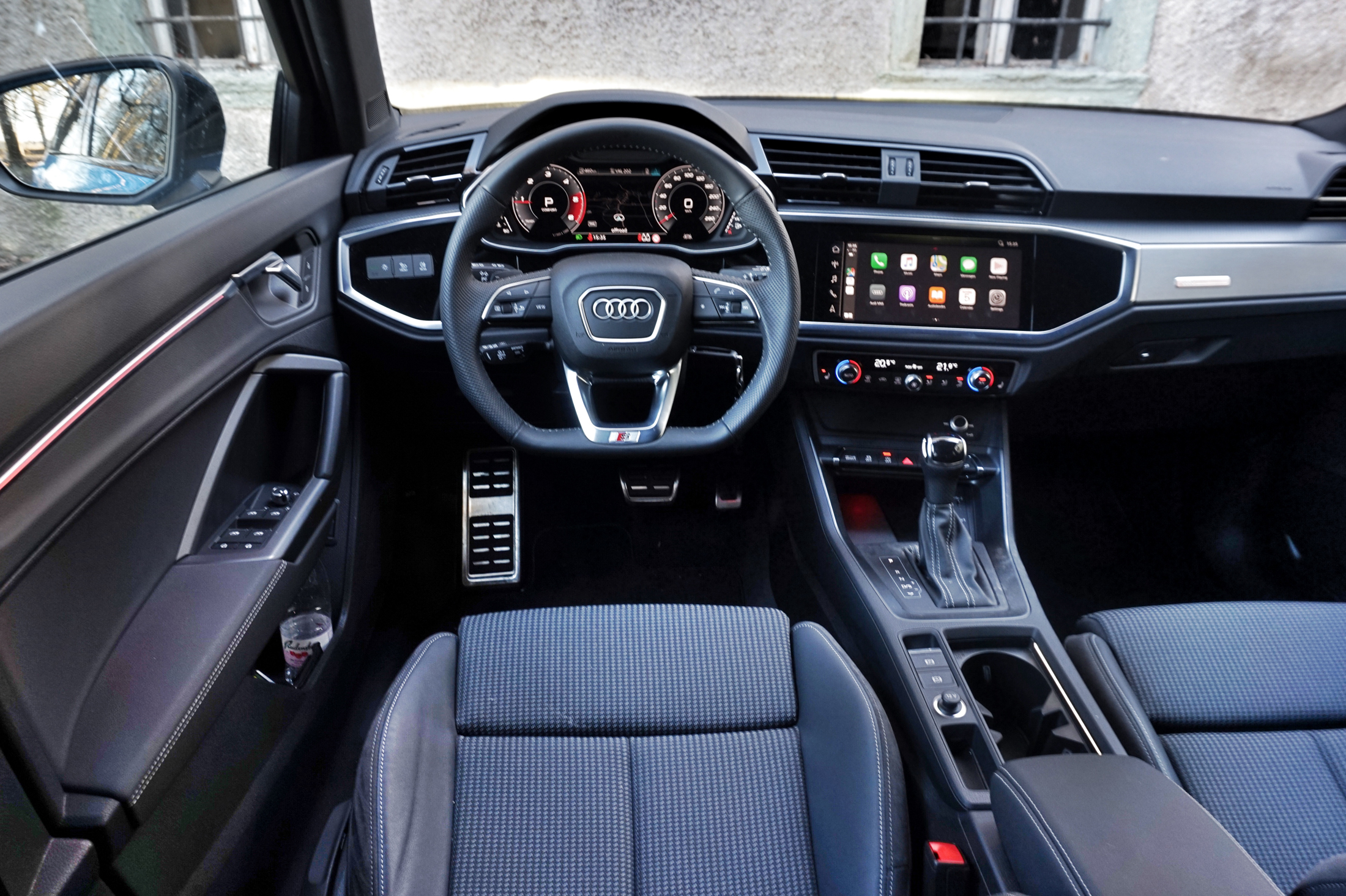 Položno steklo prtljažnih vrat omejuje pogled nazaj, zato je doplačljiva vzvratna kamera še kako dobrodošla pri parkiranju. Vsekakor velja, da Q3 sportback, še zlasti z opremo S-line s poudarjenimi črnimi elementi in 19 palčnimi platišči, deluje odločno, zmogljivo in všečno. Celo bolj odločno in zmogljivo kot v resnici ponuja različica 35 TDI z dobro znanim dokaj robato delujočim, a dobro zvočnim izoliranim 2-litrskim dizelskim motorjem s 110 kW, pogonom na prednji kolesi in prenosom moči prek 7-stopenjskega avtomatiziranega menjalnika z dvojno sklopko.Zmogljivosti so več kot zadostne in sprejemljive za običajne zahteve, še zlasti pa avto prepriča s svojo izjemno natančno vodljivostjo. Vzmetenje je trdo, a zelo učinkovito, svoj del k udobju dodata še doplačljiva prednja sedeža z odličnim bočnim oprijemom.