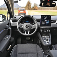 Tudi pri križancih tega razreda je varnost na vrhu seznama zahtev kupcev, zato se oba avtomobila lahko pohvalita s širokim naborom asistenčnih sistemov. A ne brezplačno: če smo pravilno razvozlali zapletena cenika serijskih in doplačljivih dodatkov, oprema allure peugeota 2008 že vsebuje sisteme za samodejno zaviranje v sili, za prepoznavanje prometnih znakov in samodejno vzdrževanje smeri vožnje na voznem pasu, medtem ko je treba pri capturju s paketom edition one za te sisteme doplačati 300 evrov. Aktivni radarski tempomat je za doplačilo pri obeh - pri 2008 stane kar 800 evrov, pri capturju pa - vključno z asistentom za vožnjo v zastojih in 360-stopinjsko kamero - 590 evrov. Na izenačeni ceni obeh preskušenih različic zato velja pogledati tudi z vidika opremljenosti: 2008 ponuja malce več opreme, captur pa za podobno ceno avtomatiziran menjalnik. Priporočam temeljit pogled v cenika obeh avtov.