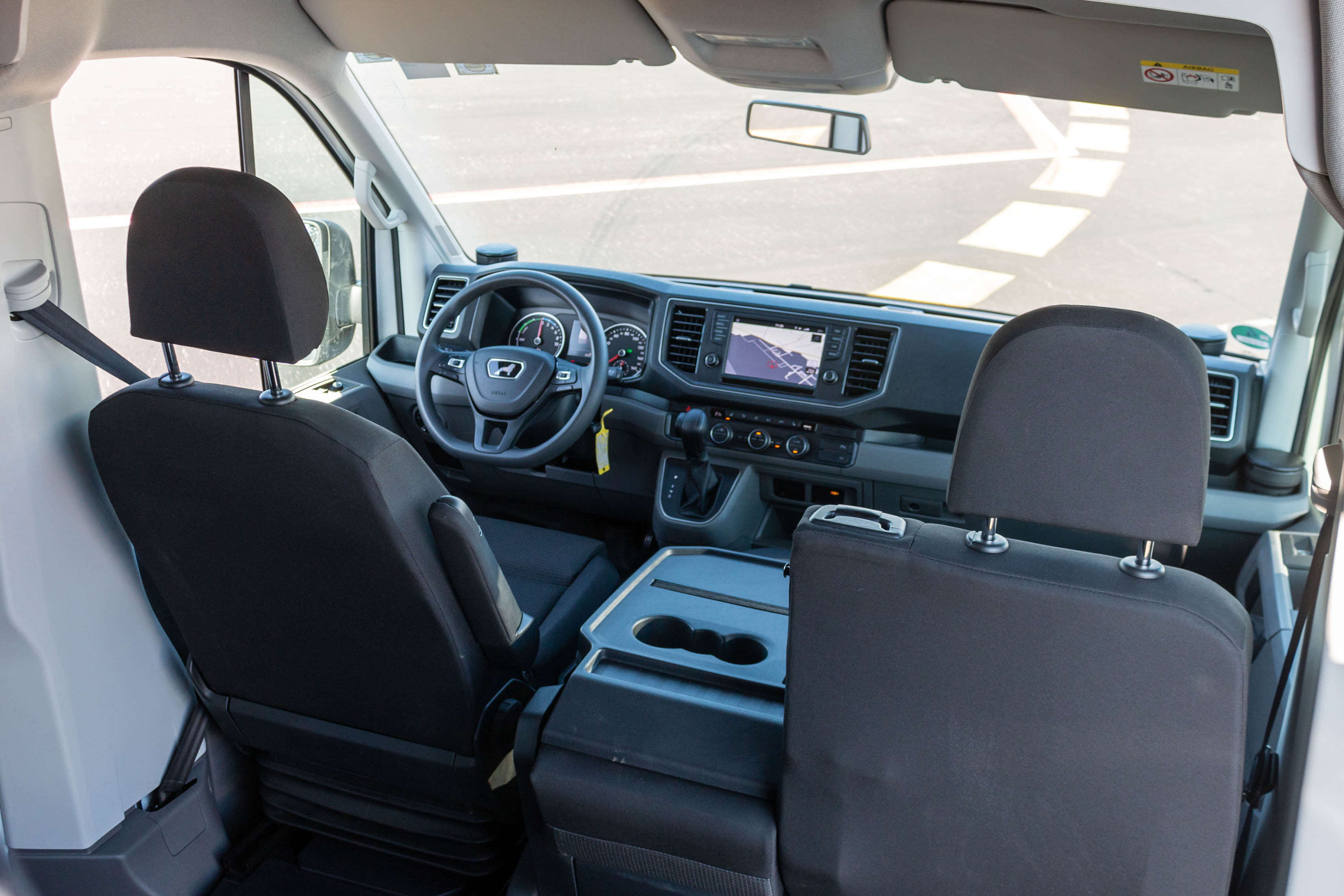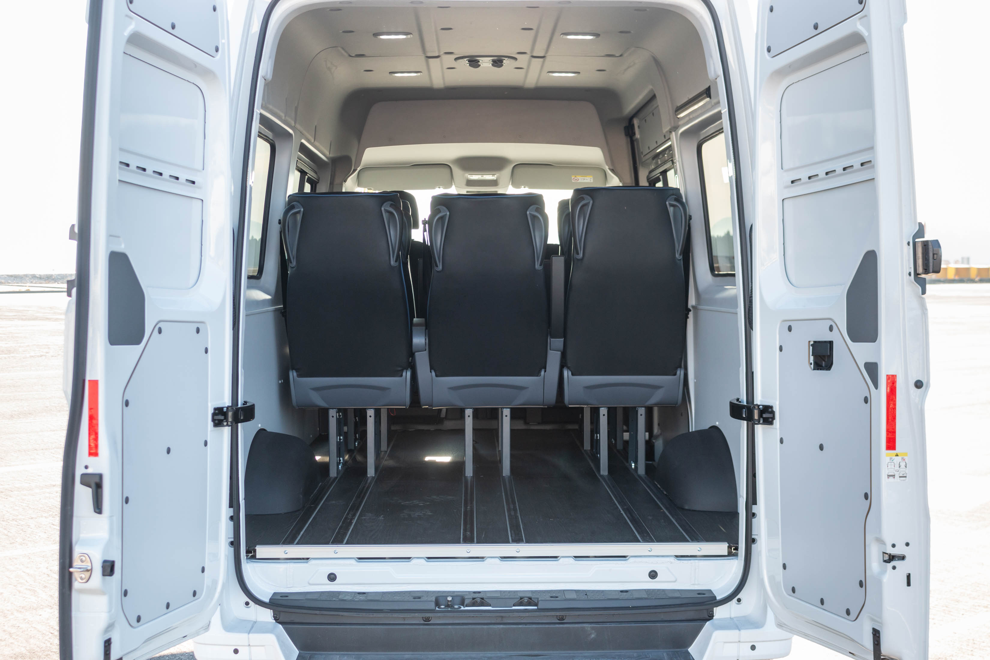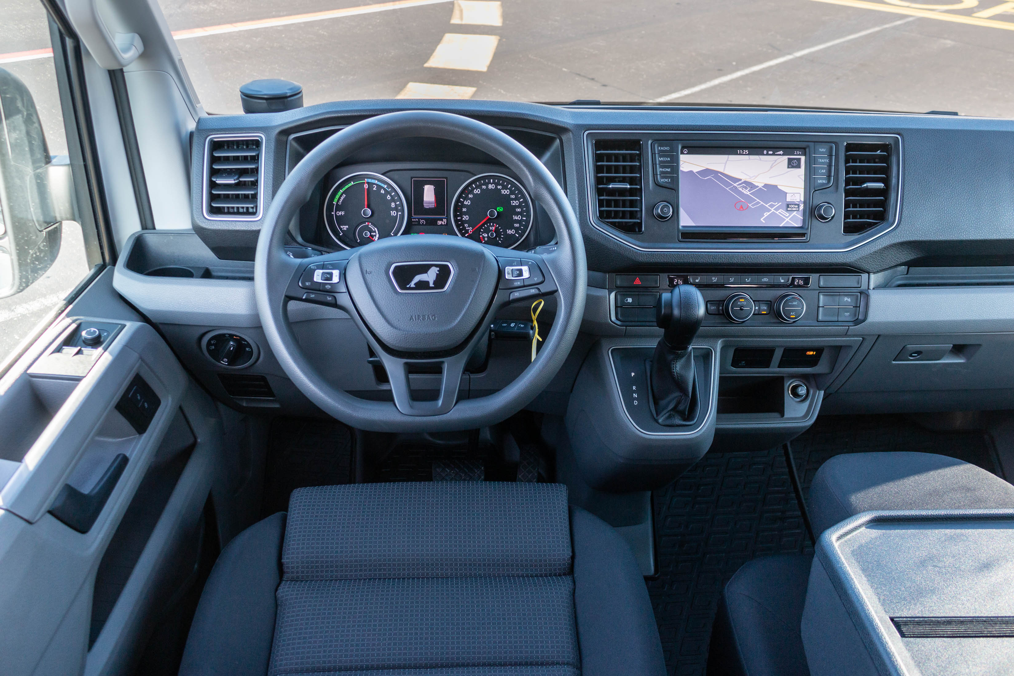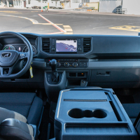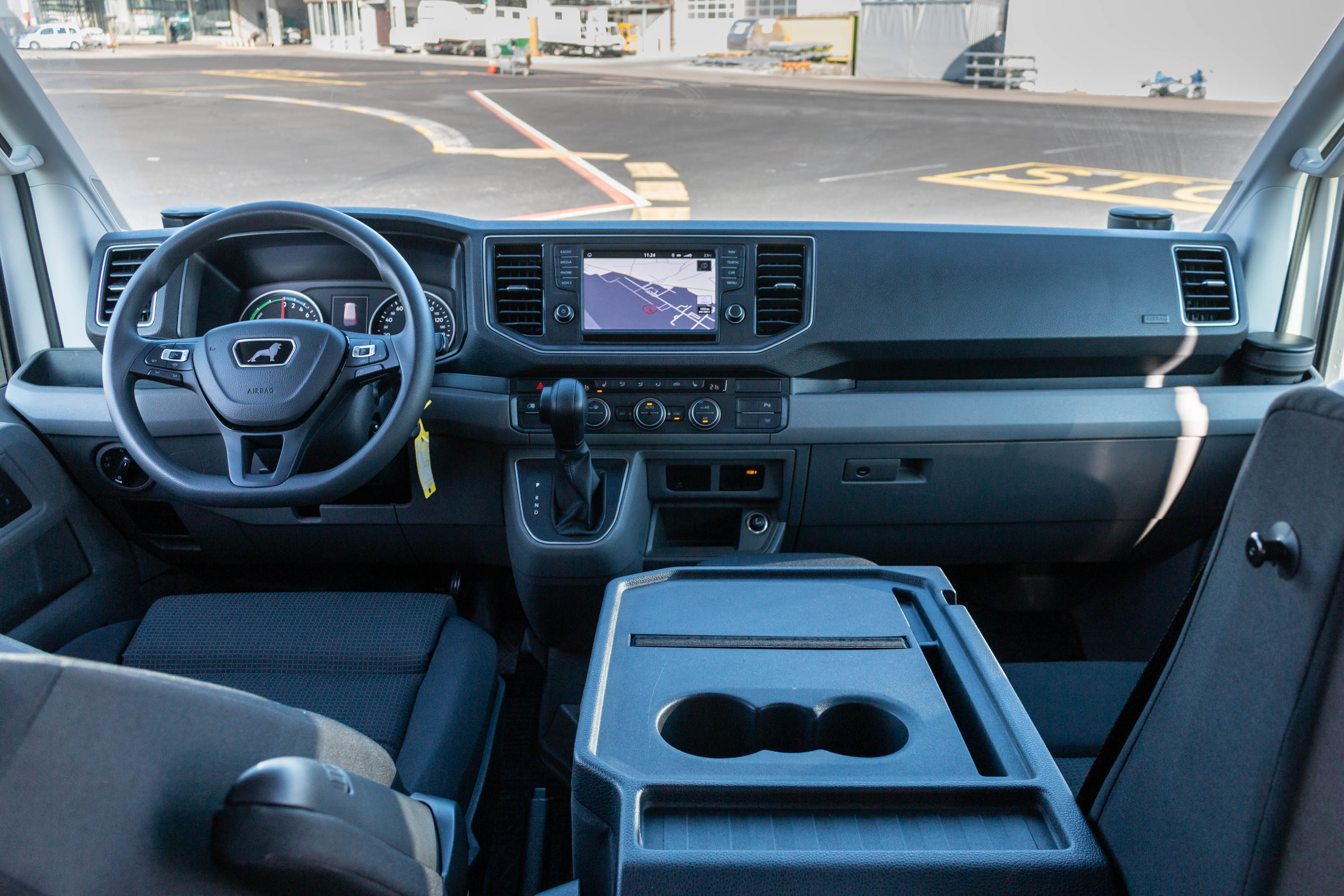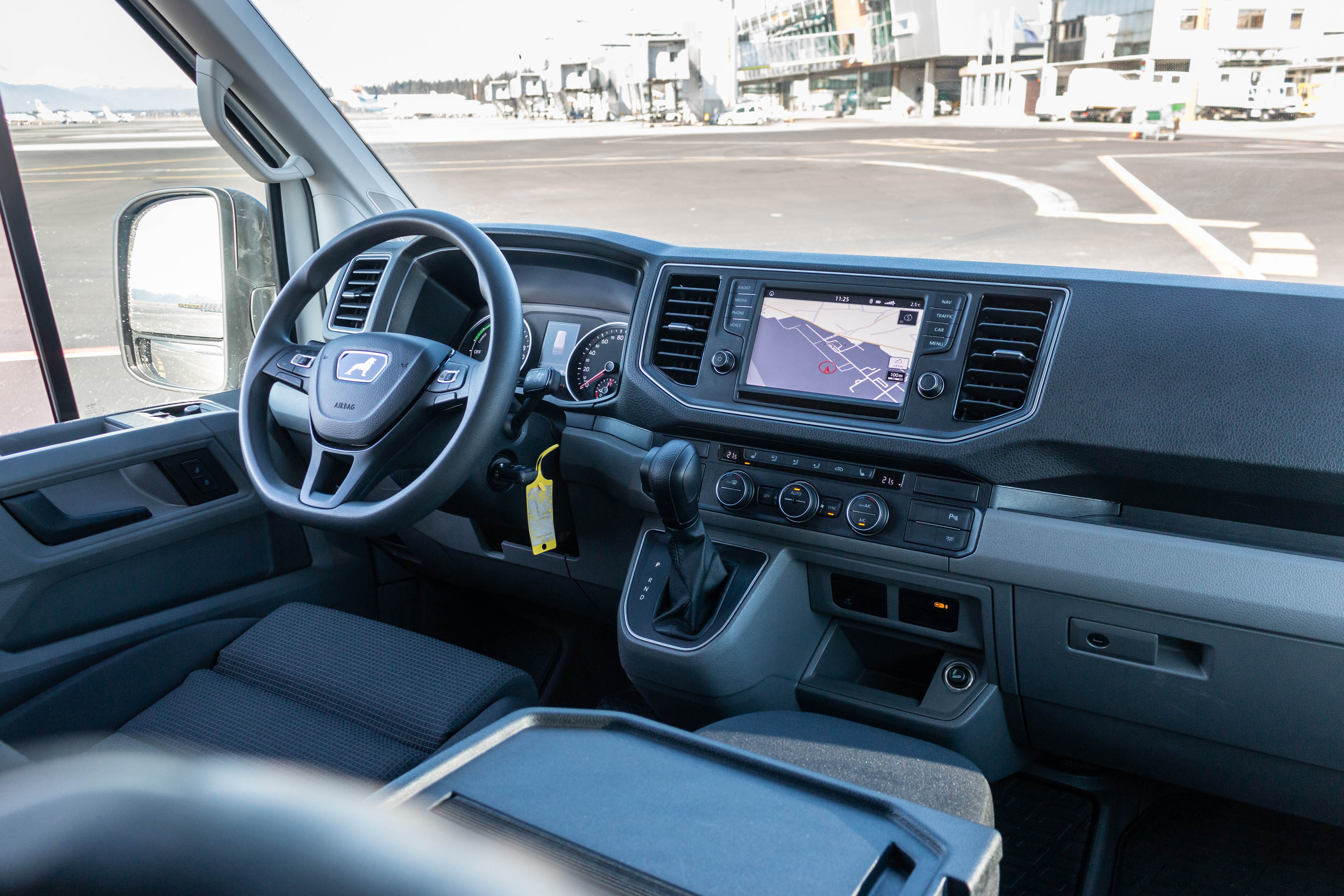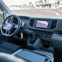 V potniški različici ga za slovenske ceste težko priporočimo kot pravo izbiro. Zakaj? Ker je glede na doseg namenjen res zelo specifični mobilnosti: predvsem tihi vožnji v velikih turističnih naseljih, prevozu VIP potnikov med letališkimi terminali ali od hotela na letališče ali v pristanišče. Zato smo ga postavili na letališko ploščad osrednjega slovenskega letališča, kjer infrastrukturo prilagajajo tudi zahtevam elektromobilnosti. Pri nas bi bil prava izbira za krožne turistične panoramske vožnje okoli blejskega ali bohinjskega jezera, turistične oglede zgodovinskih mestnih jeder Ljubljane, Maribora, Ptuja ali Novega mesta,… Kljub svoji velikosti ima namreč vgrajeno razmeroma skromno energijsko shrambo s 35,8 kWh, kar pomeni manj shranjene energije kot pri povprečno zmogljivem električnem avtomobilu z dosegom okoli 300 kilometrov, a je kombi zaradi višine, mase in tovornih zmogljivosti energijsko veliko seveda bolj zahteven. V nobenem električnem avtomobilu se nam še ni zgodilo, da bi bili v Sloveniji prisiljeni parkirati ob cesti in pozvoniti na vratih prve hiše ter prositi za prosto vtičnico. No, velikana smo morali parkirati, saj smo brez energije ostali tik pred ciljem 83-kilometrske testne trase, ki smo se je lotili v zimskih temperaturah z 90-odstotno zalogo energije.