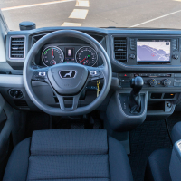 | Mere in masa: | dolžina: 598,6 cm, širina: 204 cm, višina: 259 cm, medosna razdalja: 364 cm, masa praznega vozila: 2550 kg, največja dovoljena masa: 3500 kg, prtljažnik: več kot 3 m3. |