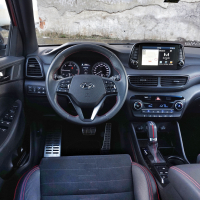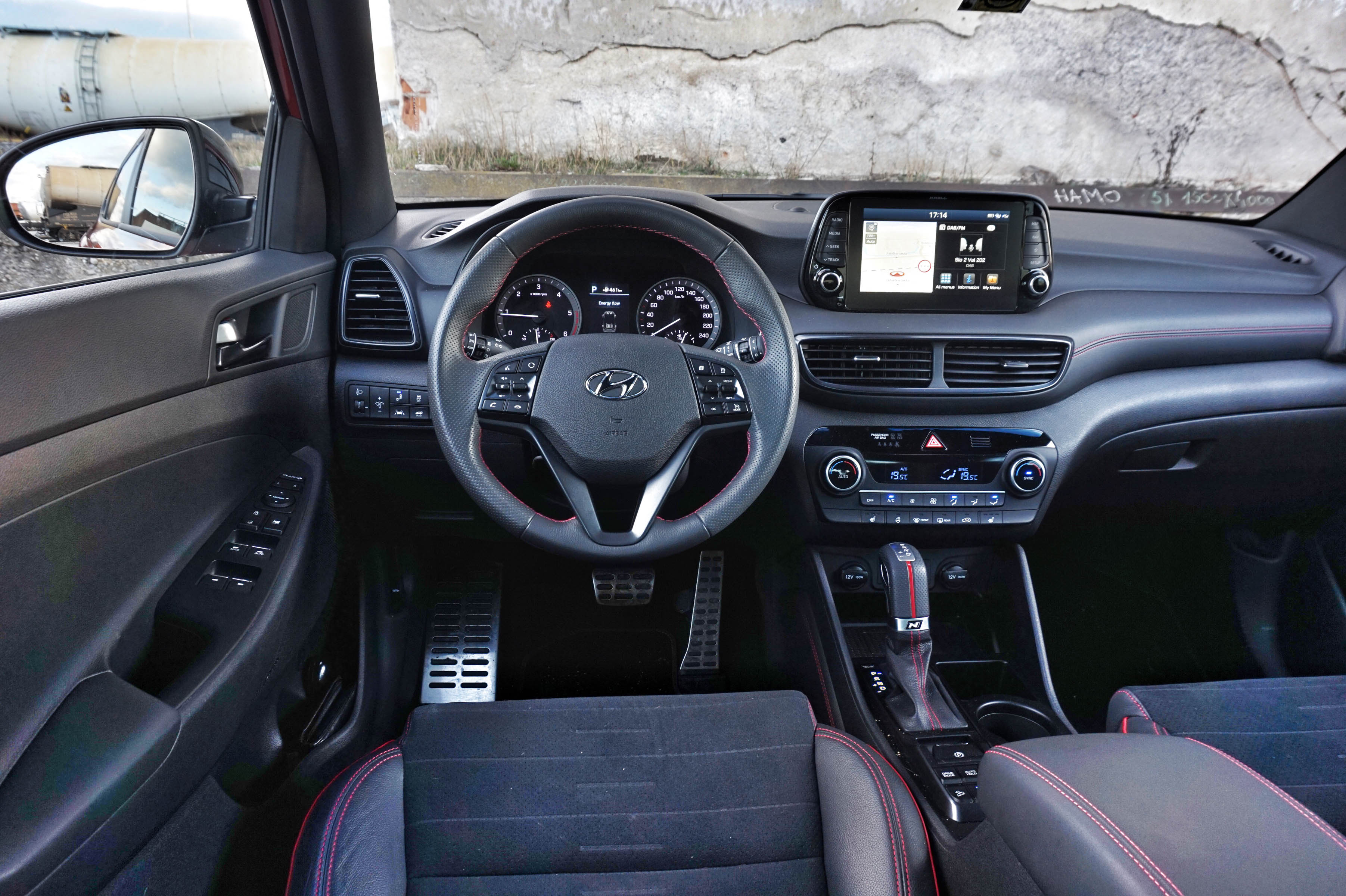 Tudi v notranjosti paket N-line prinese nekaj prednosti; boljša prednja sedeža, športnejši volanski obroč, pa tudi kombinacijo usnja in velurja z rdečimi šivi na sedežih in armaturni plošči. Z ergonomskega vidika tucsonu ni kaj očitati, po nedavni prenovi pa avto ponuja tudi sodobnejšo multimedijsko izkušnjo.