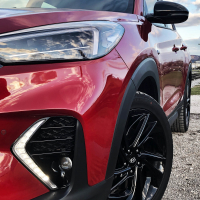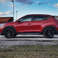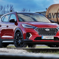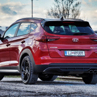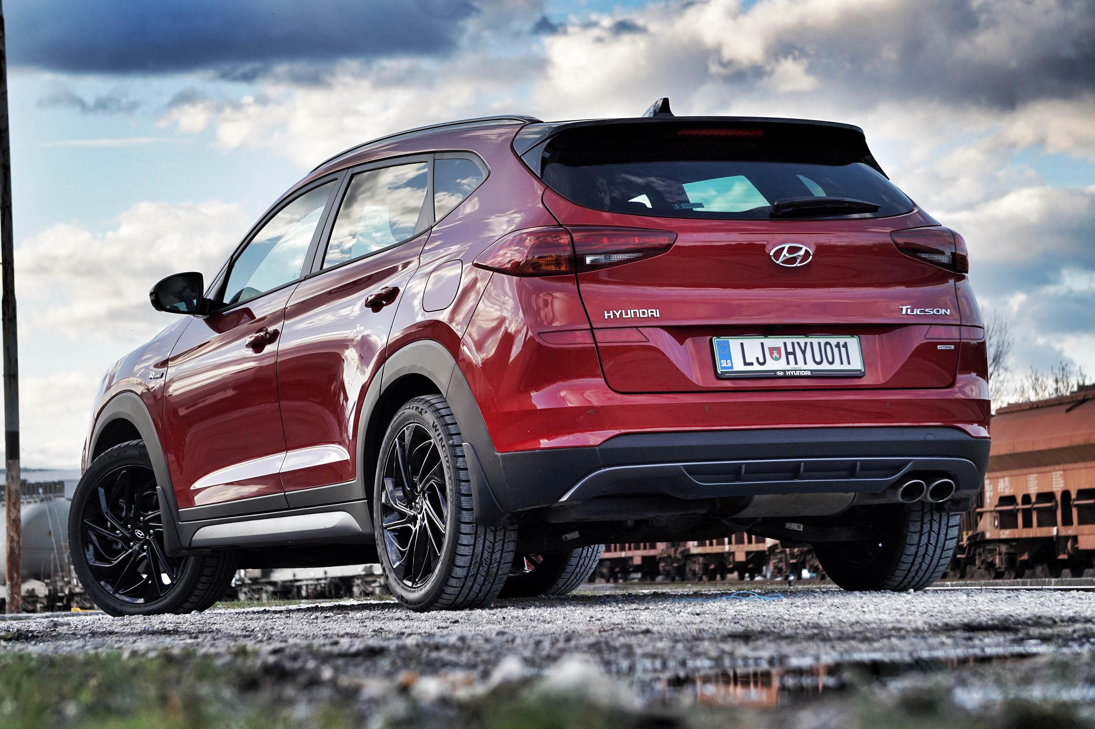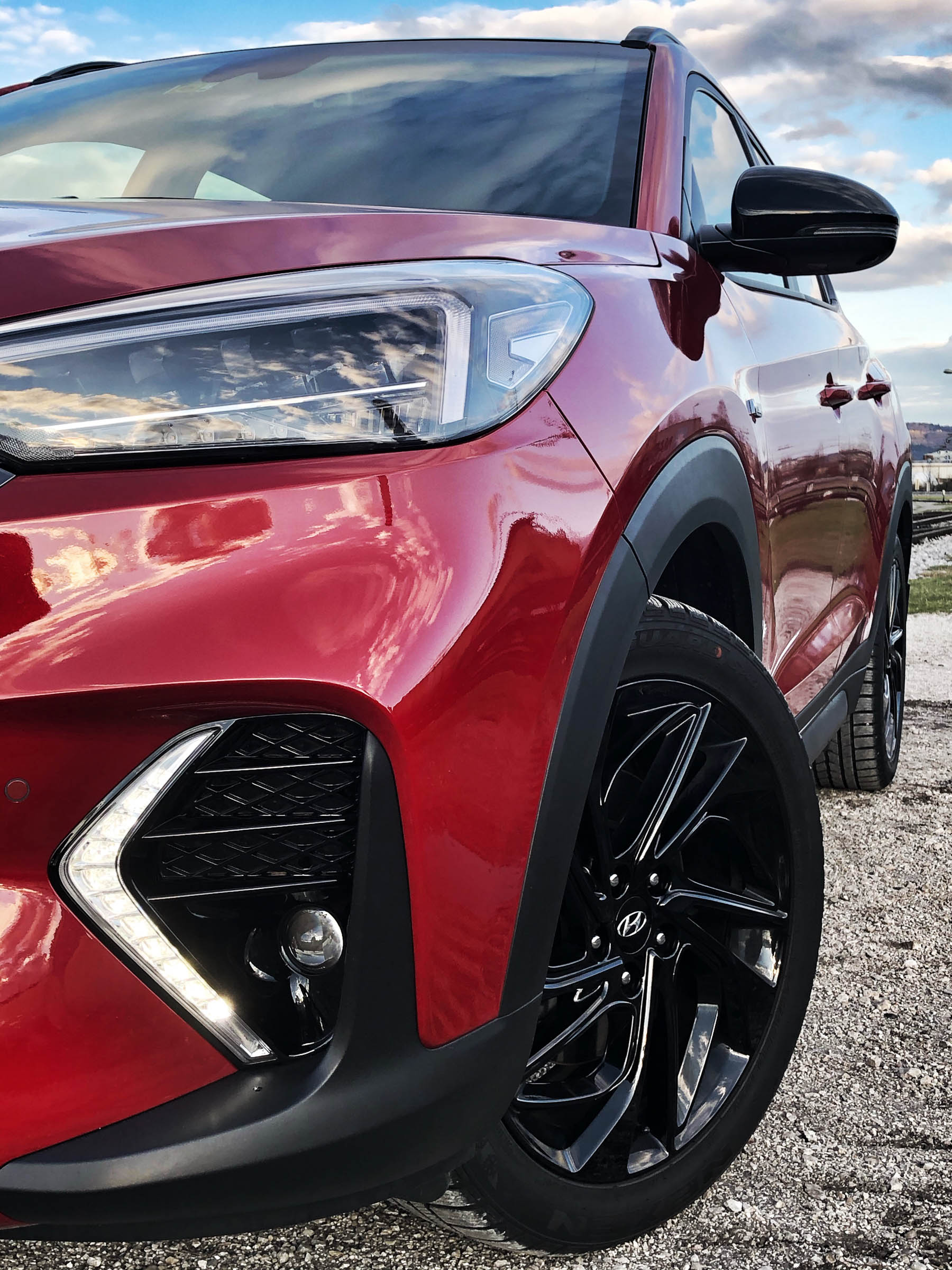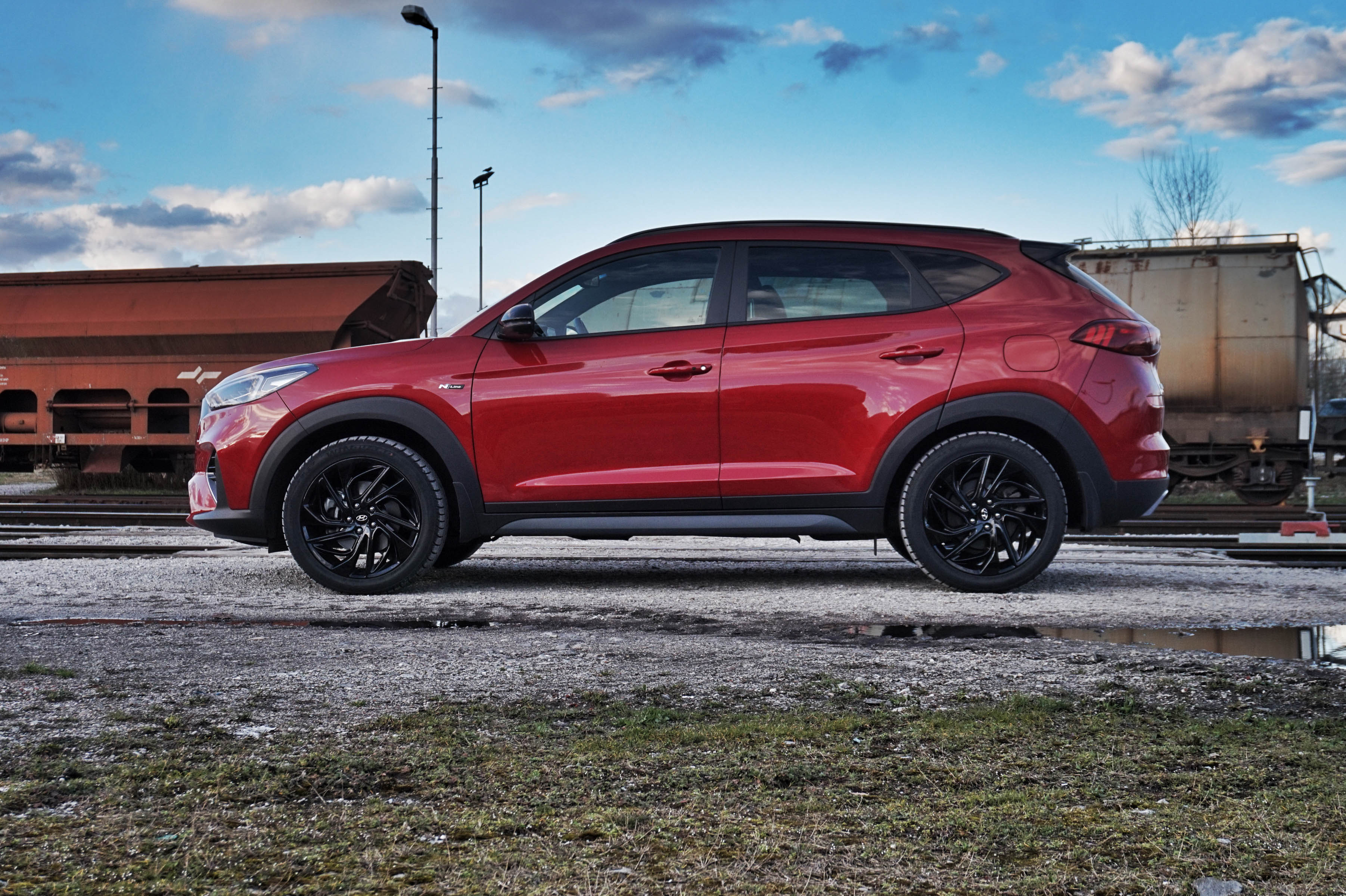 Tudi cestno-terenskega prodajnega prvaka tucsona: ta je po lanski prenovi že tako bolj oblikovno skladen, paket N-line pa s širšimi 19-palčnimi pnevmatikami (in črnimi platišči), drugačno masko hladilnika in globljima odbijačema doda še nekaj športne privlačnosti.