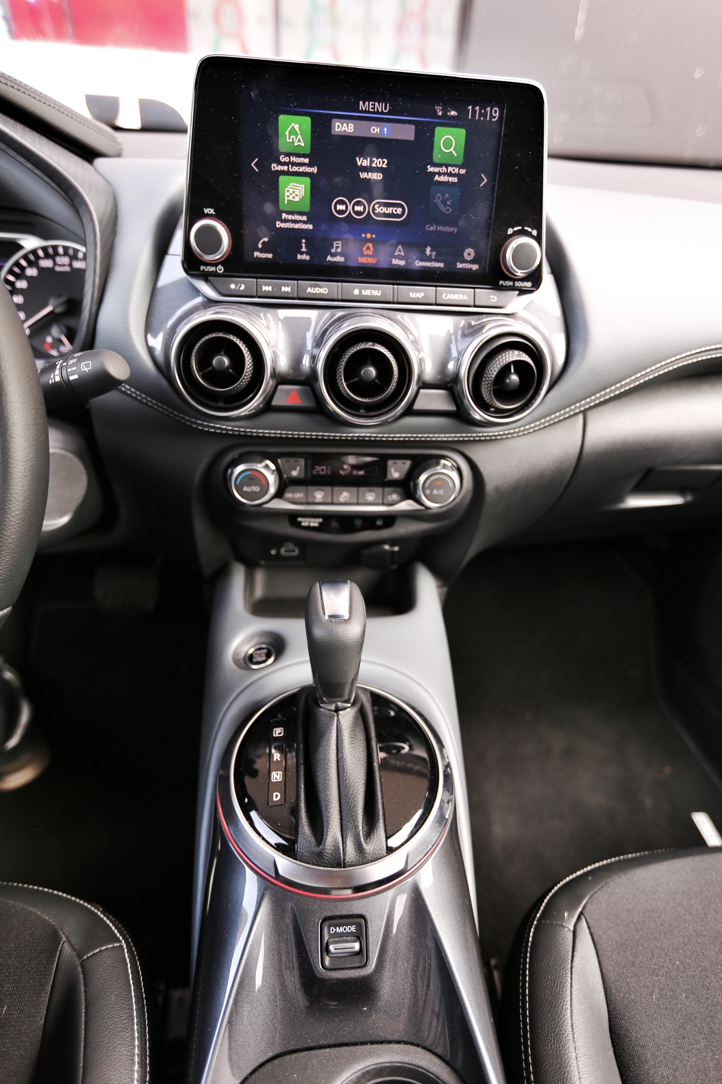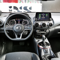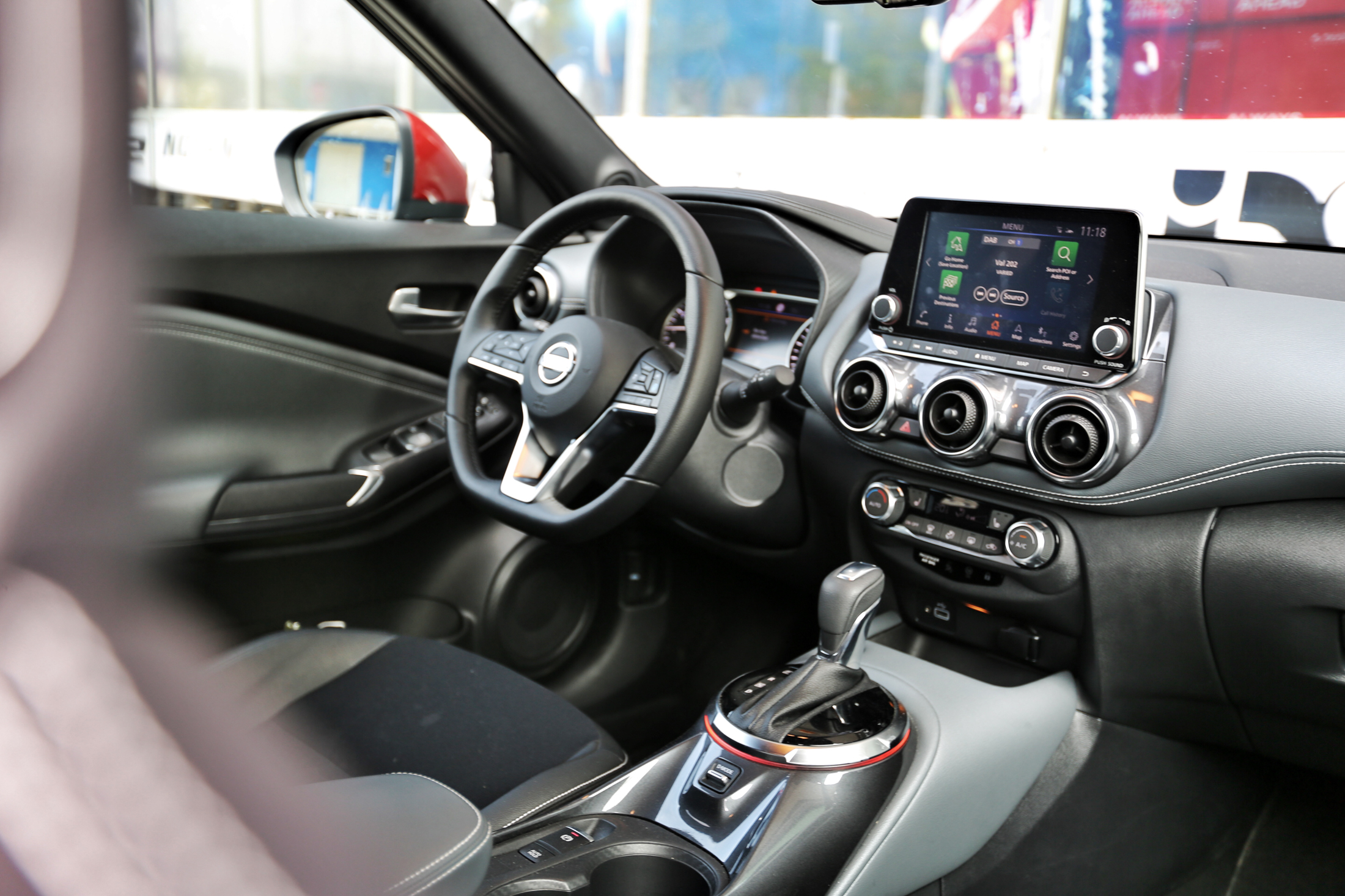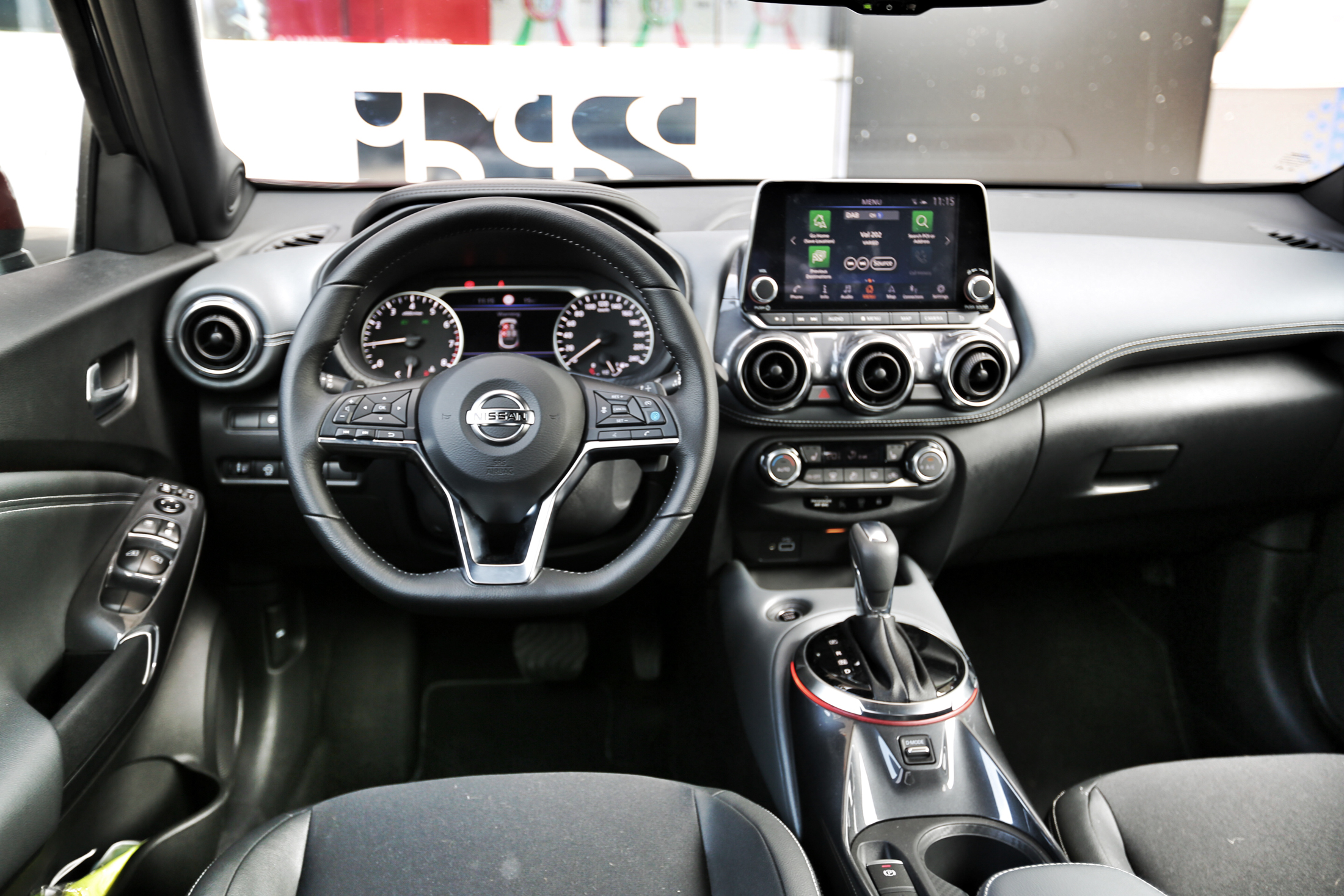 V potniški kabini je novi juke je zadržal izrazito visok in širok sredinski greben med prednjima sedežema (in značilno okroglo ohišje prestavne ročice), a pridobil bolj ergonomsko voznikovo okolje in udobnejši položaj za volanom. Z velikim zaslonom multimedijske naprave in sodobno komunikacijsko opremo je juke ujel priključek s tekmeci tudi na tem področju.