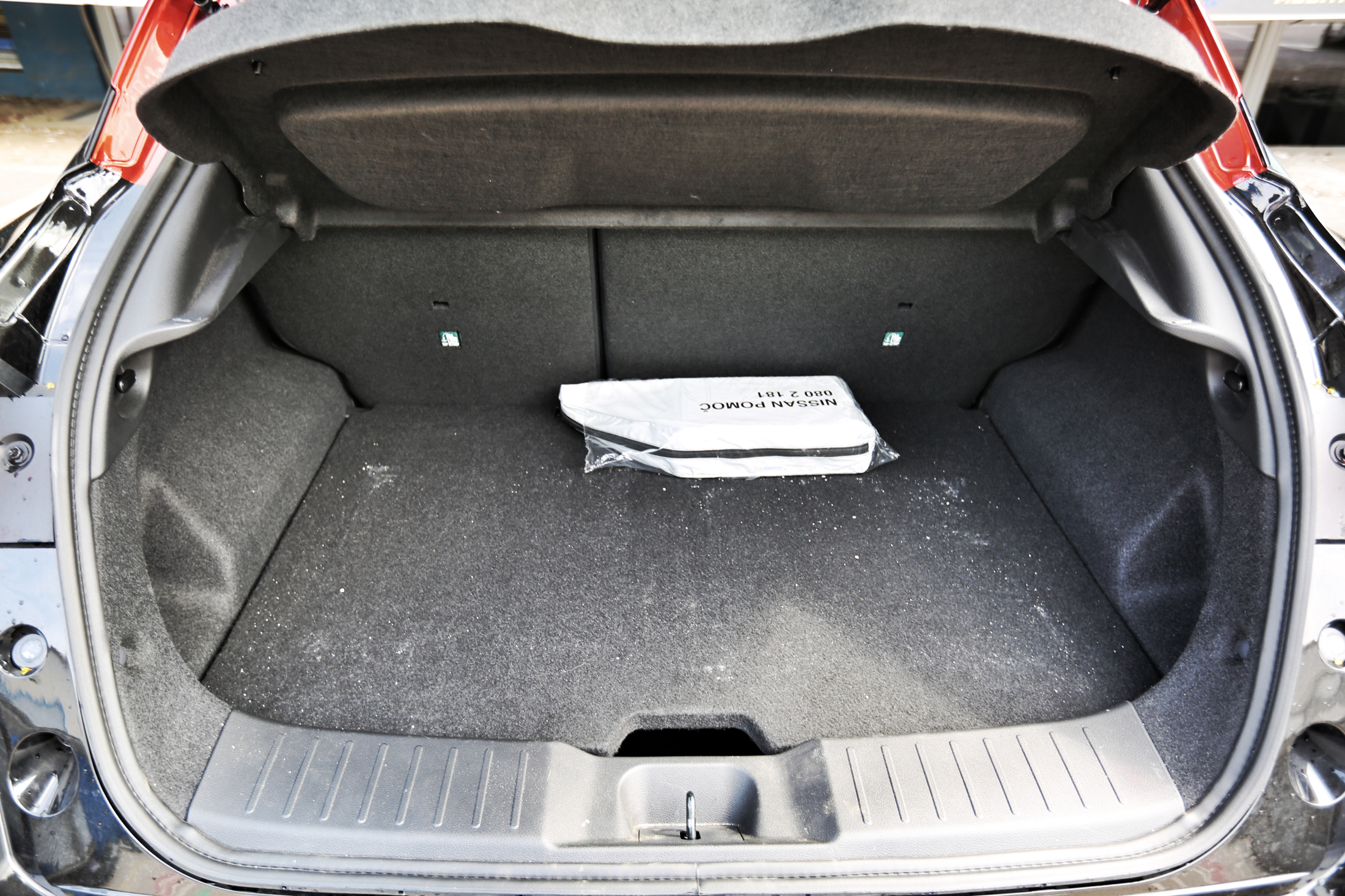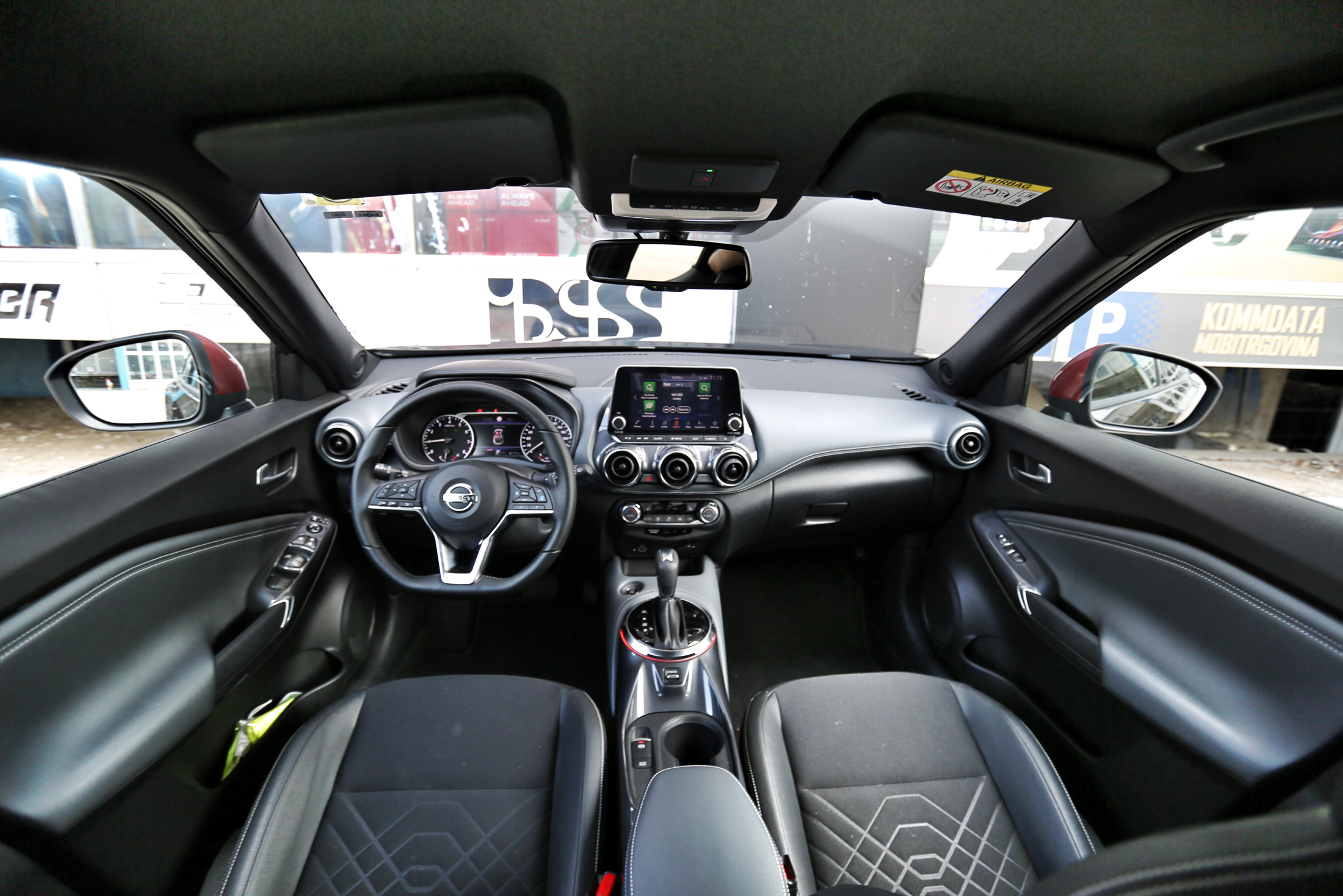 Ker je novi juke postavljen na Renaultovo modularno platformo, ki si jo deli z novim cliom in capturjem (pa tudi z nissanom micro), je avto seveda večji, širši in zato prostornejši kot predhodnik; v novem jukeu se zdaj tudi na zadnji klopi sedi dovolj udobno, prtljažnik pa je s 422 litri dovolj prostoren tudi za večje družinske zahteve (enako prostornino ima tudi prtljažnik v novem capturju). Še vedno nas motita visoko postavljeni in v okvir skriti kljuki zadnjih vrat, pa tudi dokaj visok nakladalni rob prtljažnika, a to je cena športnega, kupejevskega oblikovnega značaja.